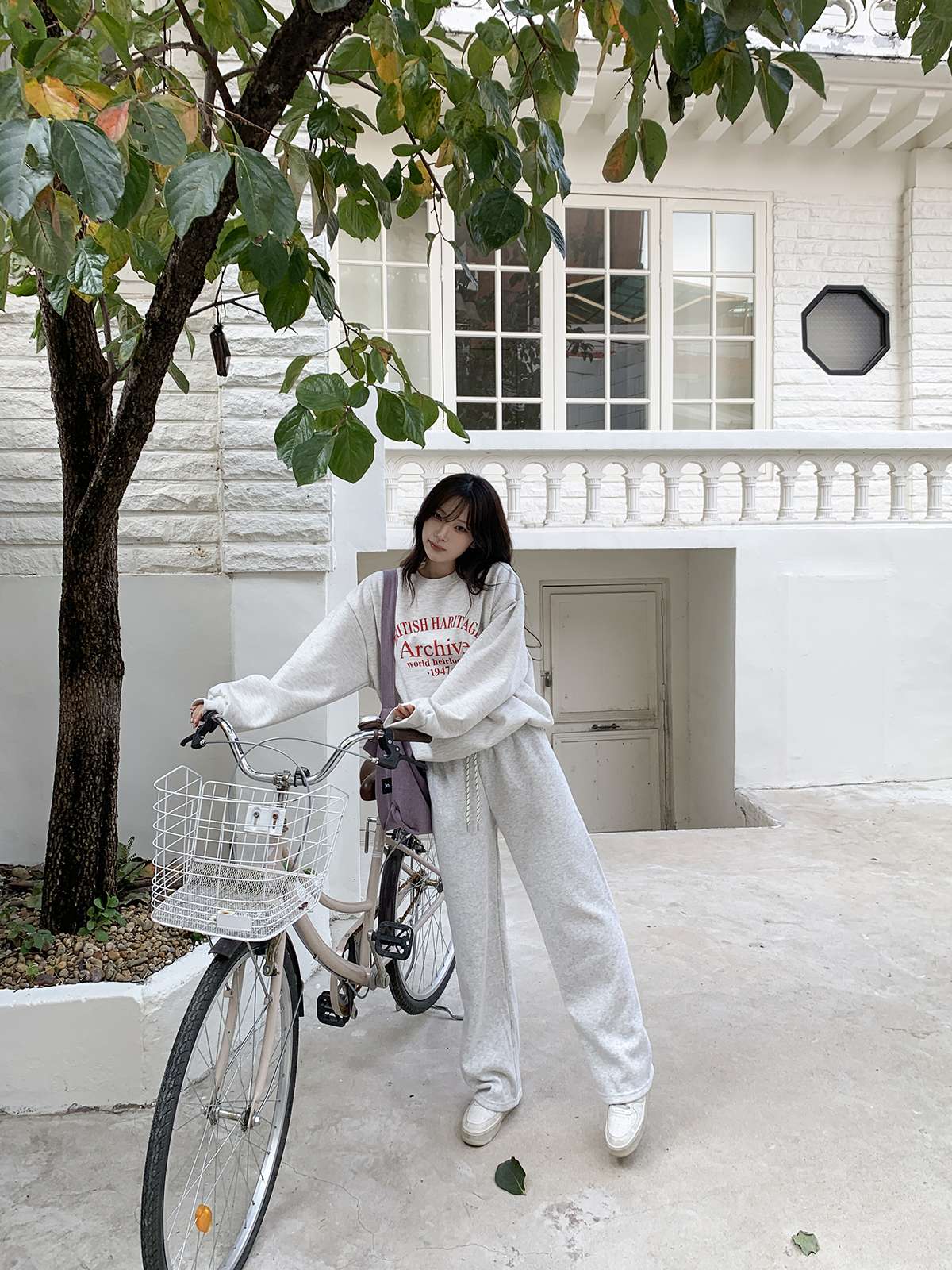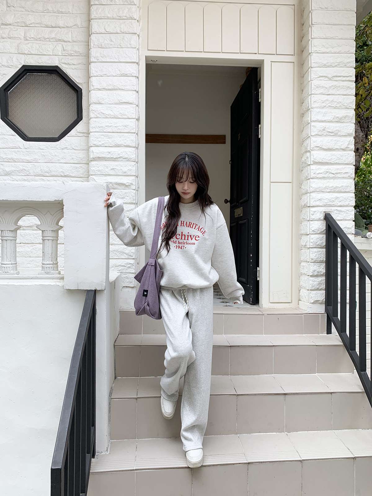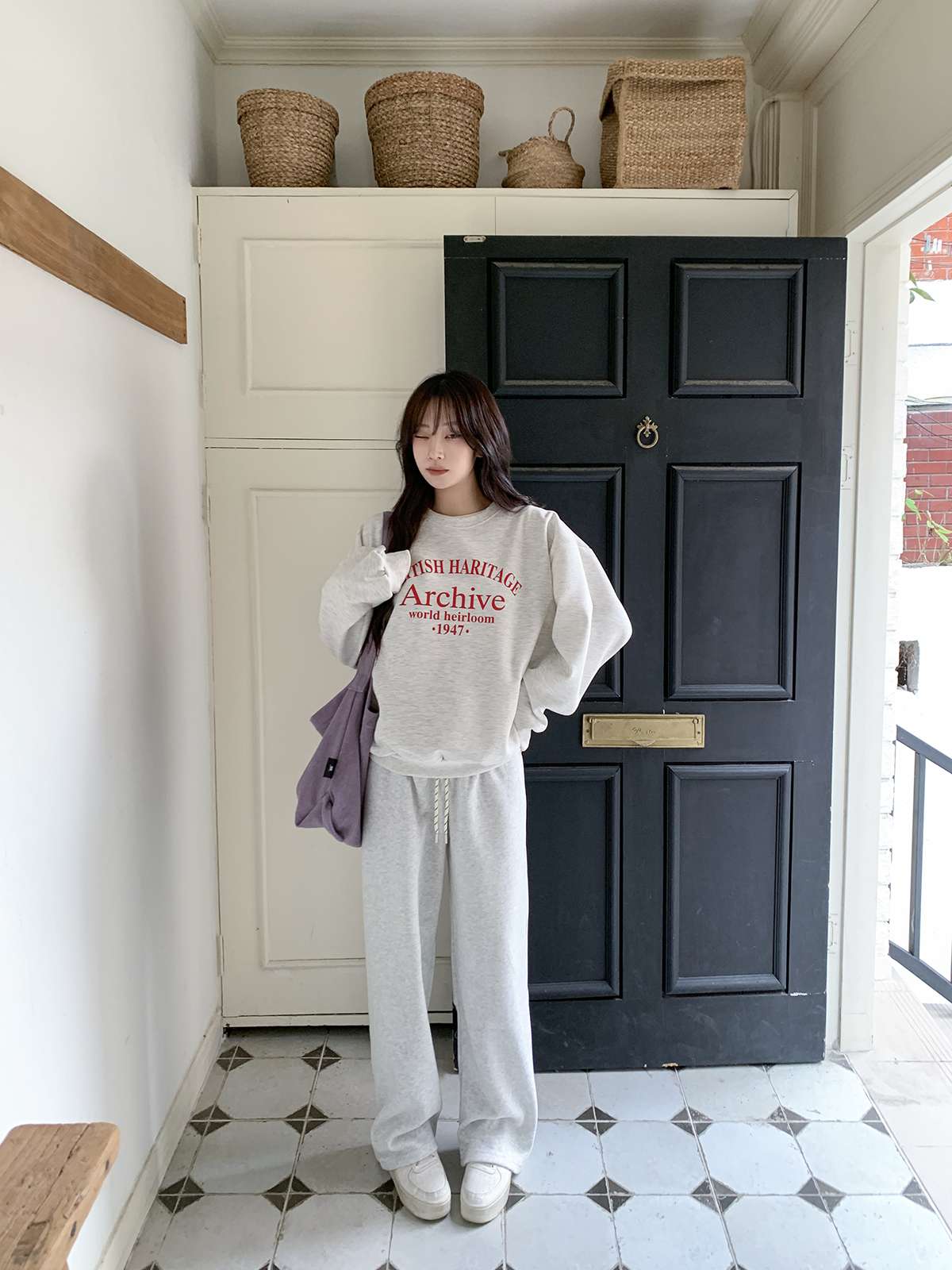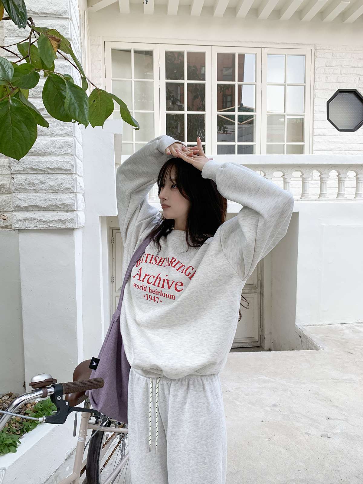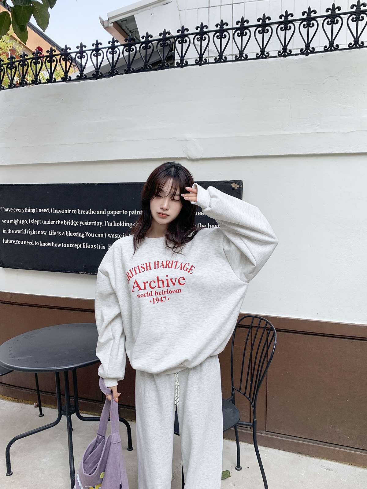 데일리룩의 제격인 라운드넥의 루즈핏 기모 맨투맨