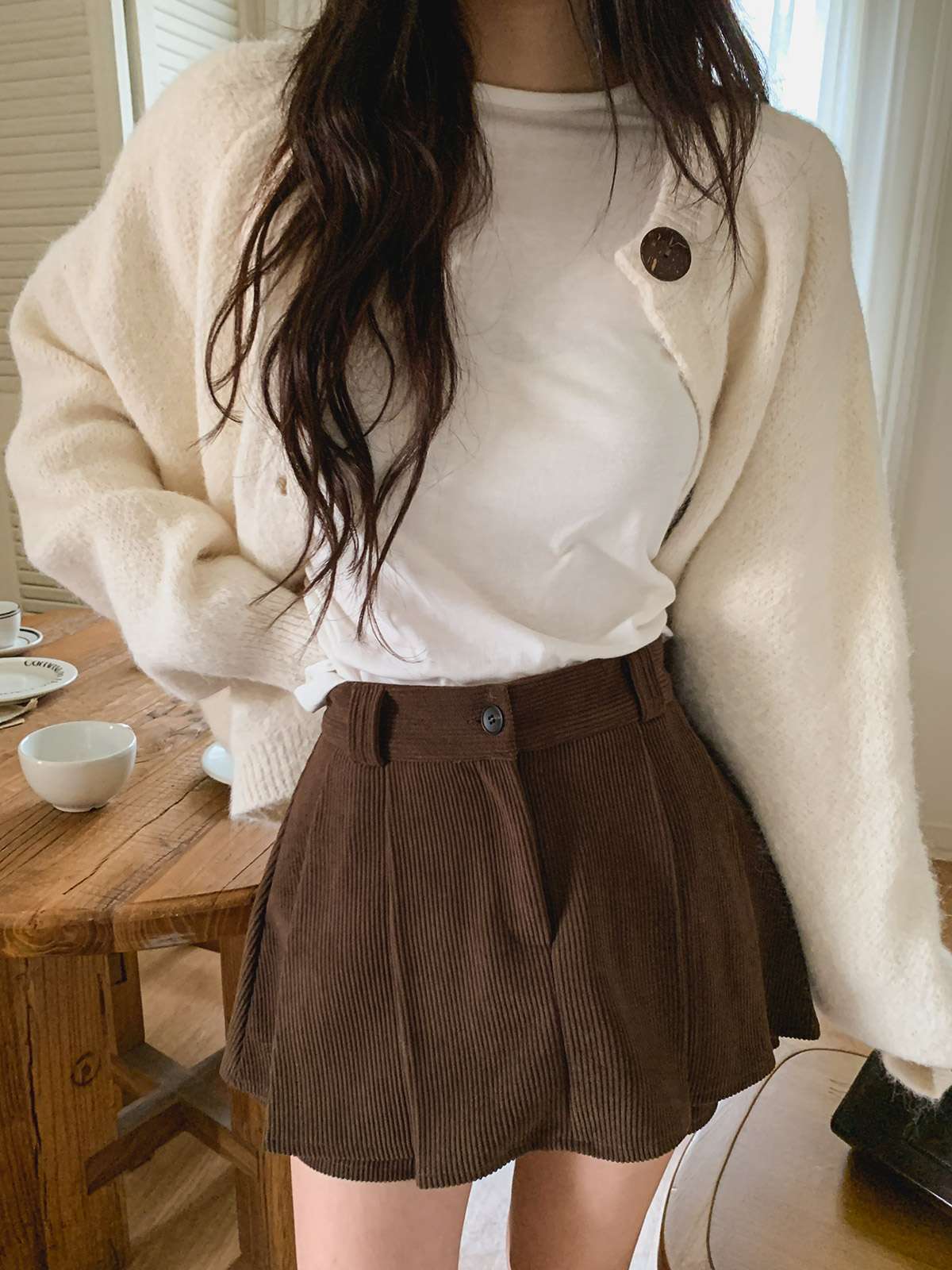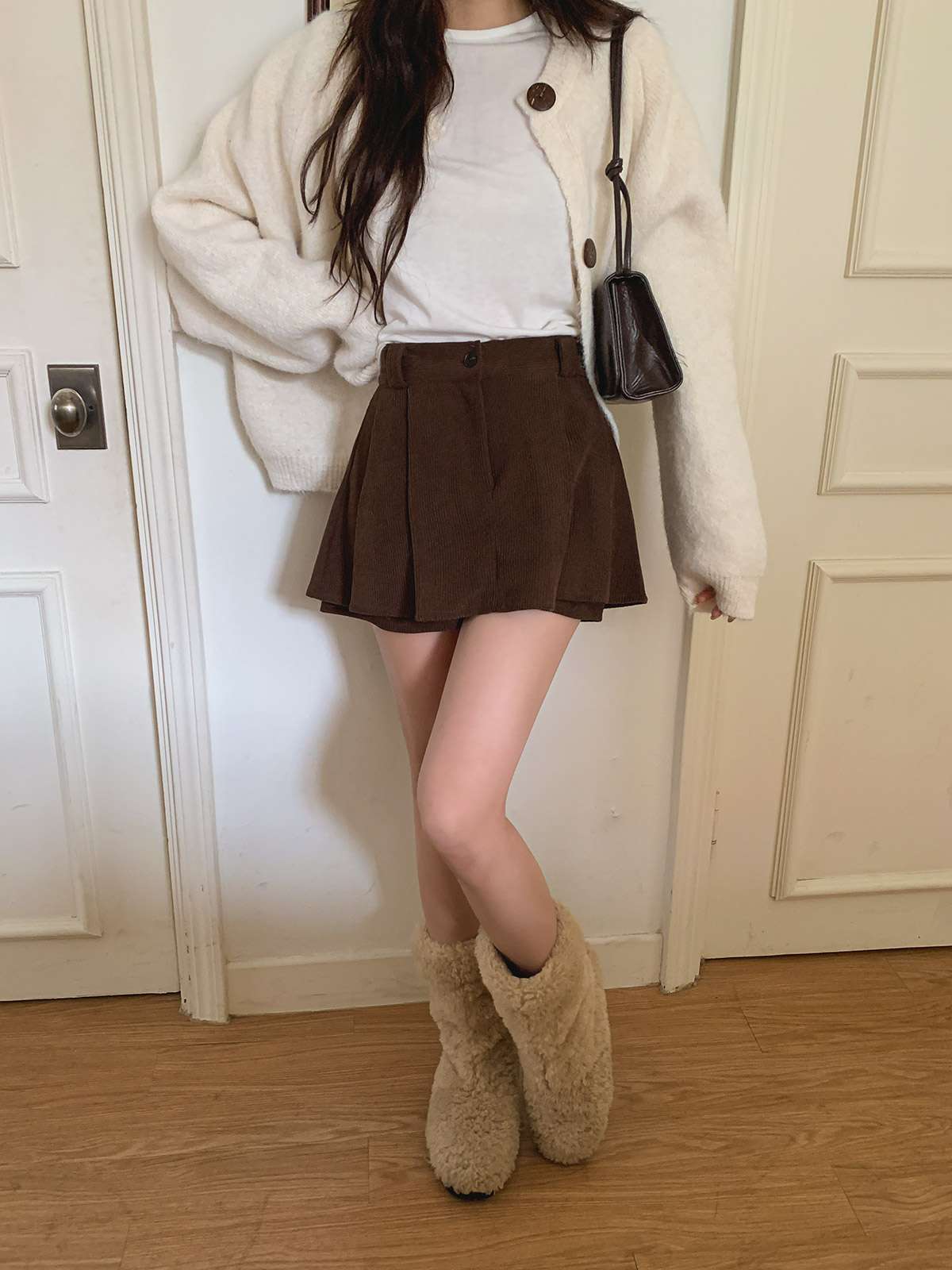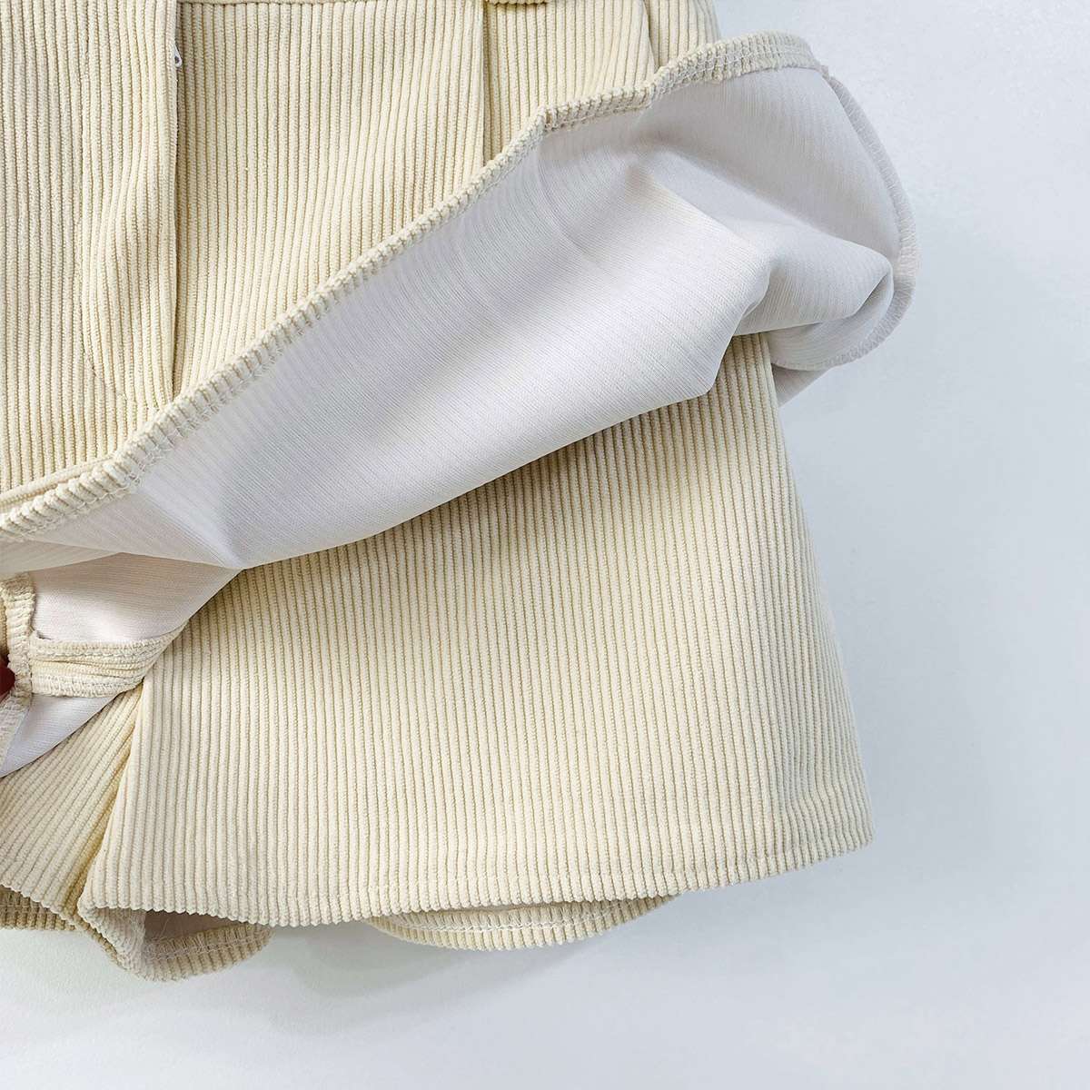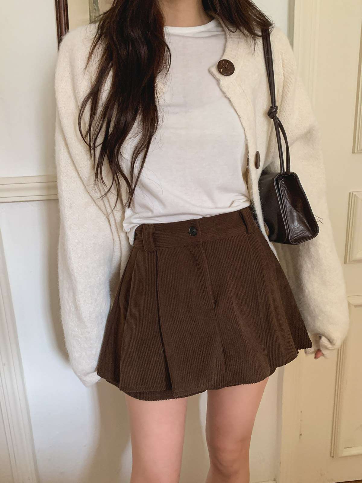 따뜻한 감촉의 코듀로이 소재로 제작된 미니 스커트 팬츠