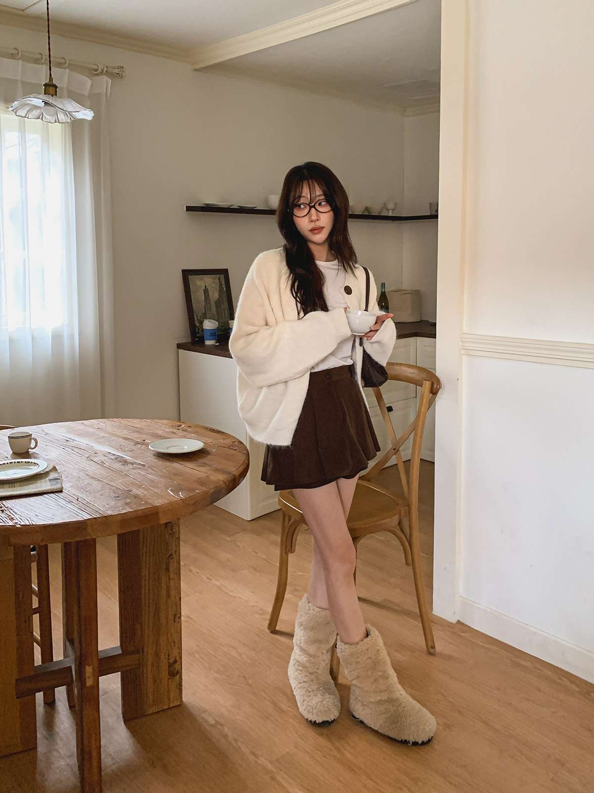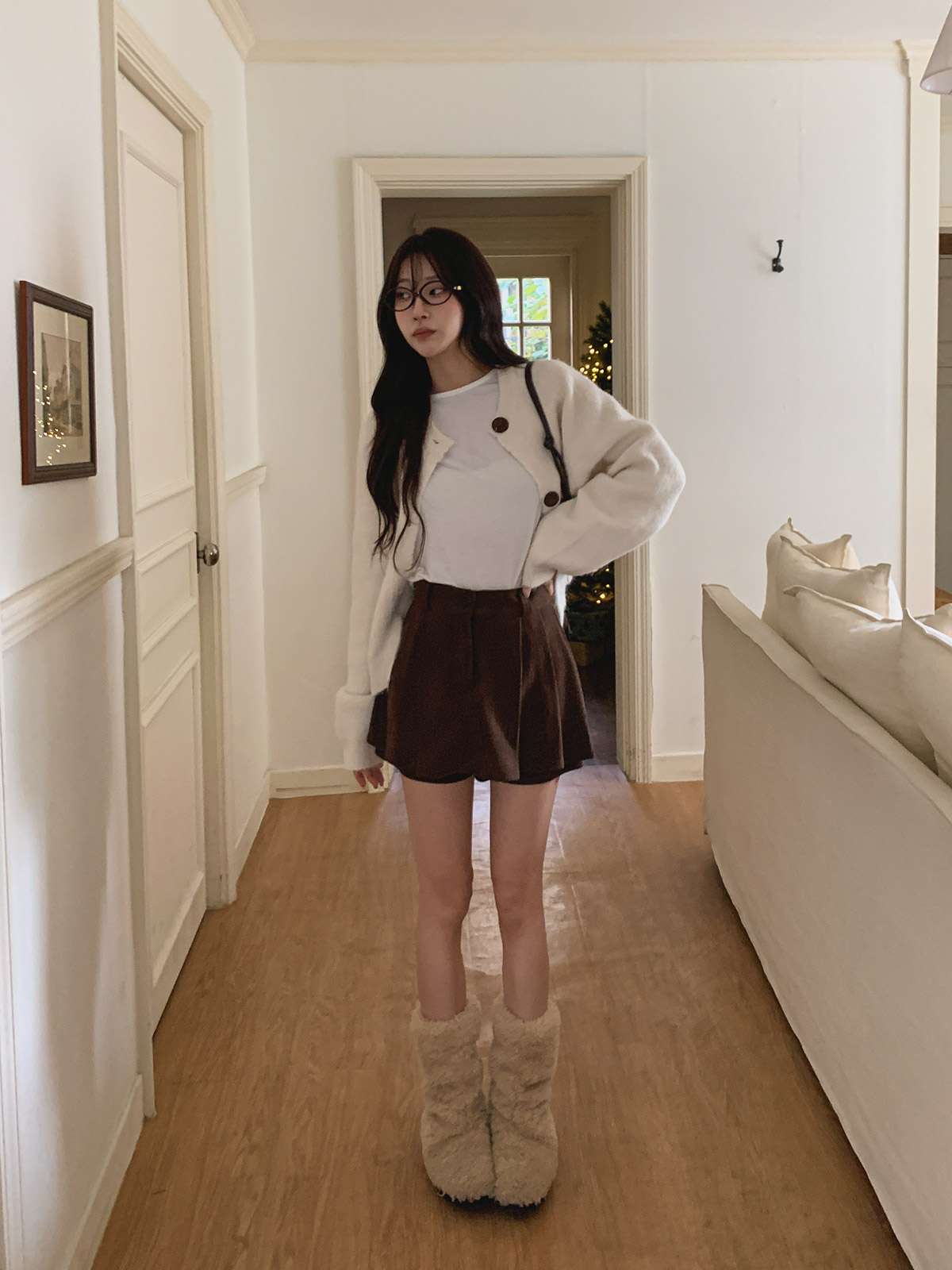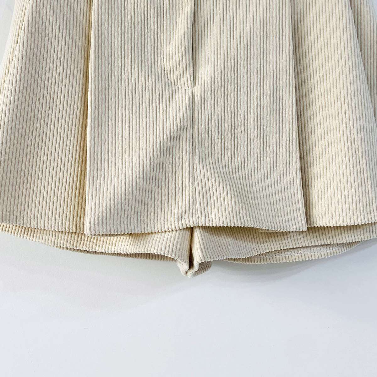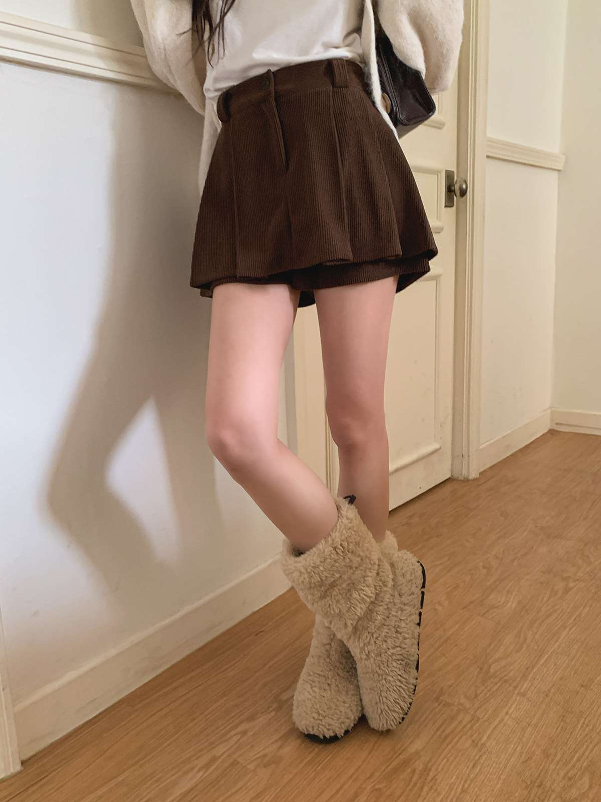 따뜻한 감촉의 코듀로이 소재로 제작된 미니 스커트 팬츠