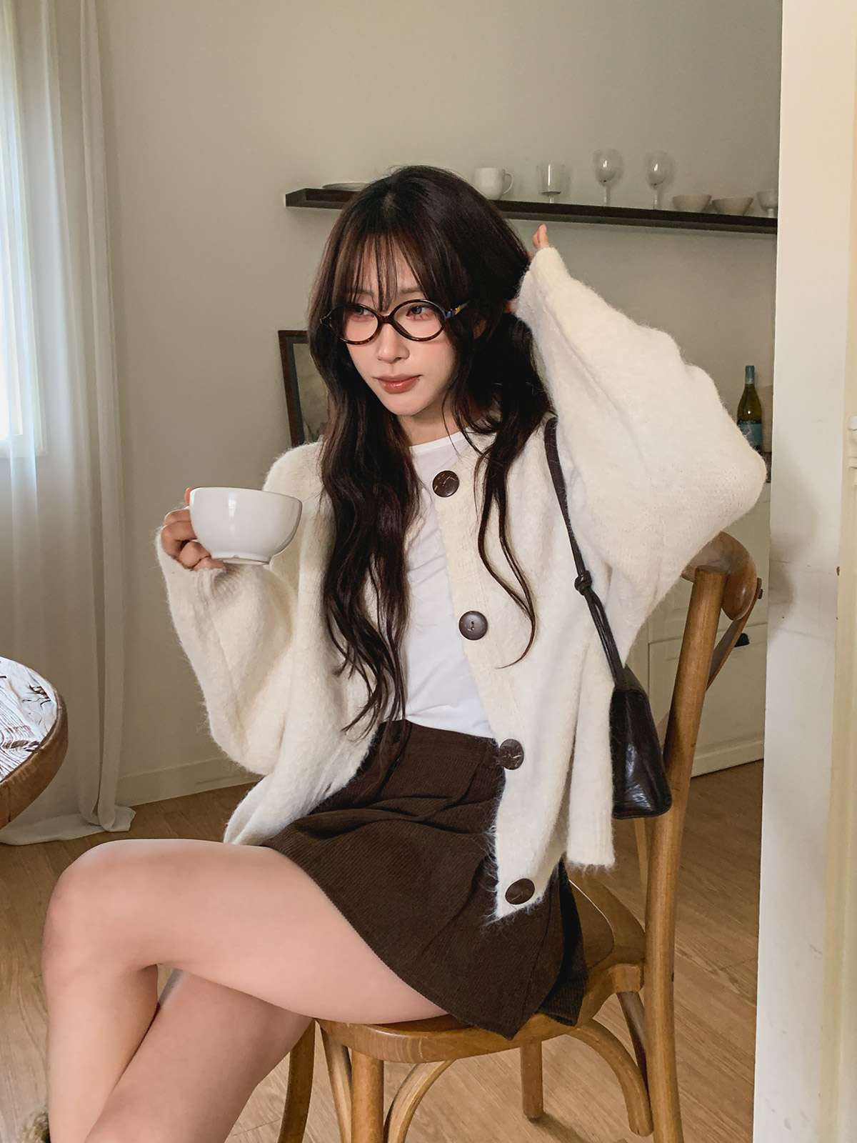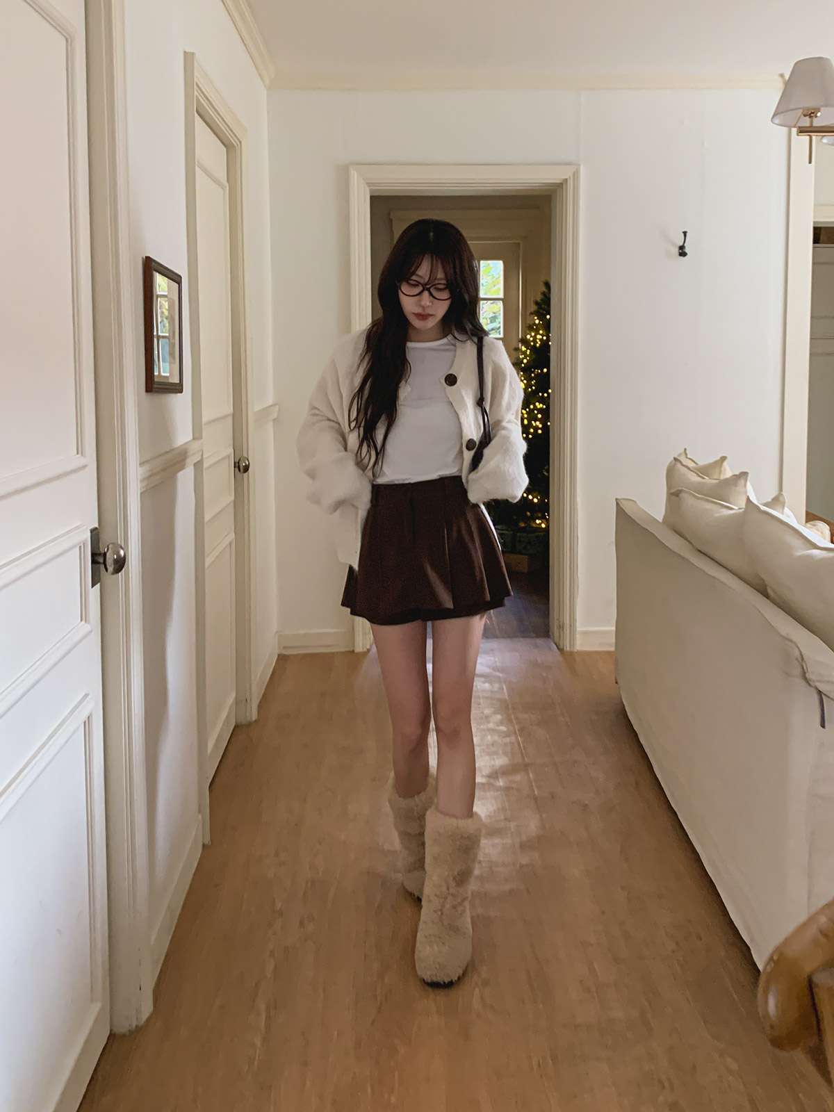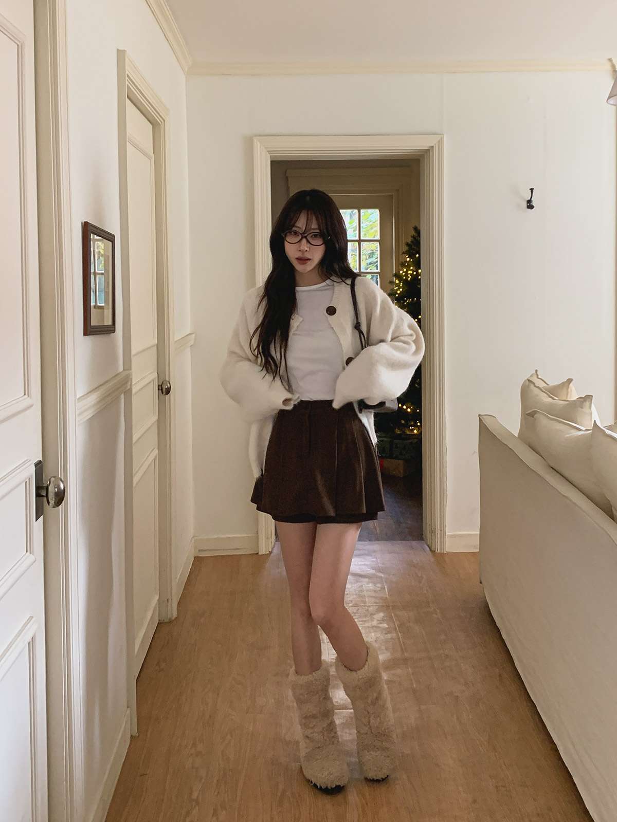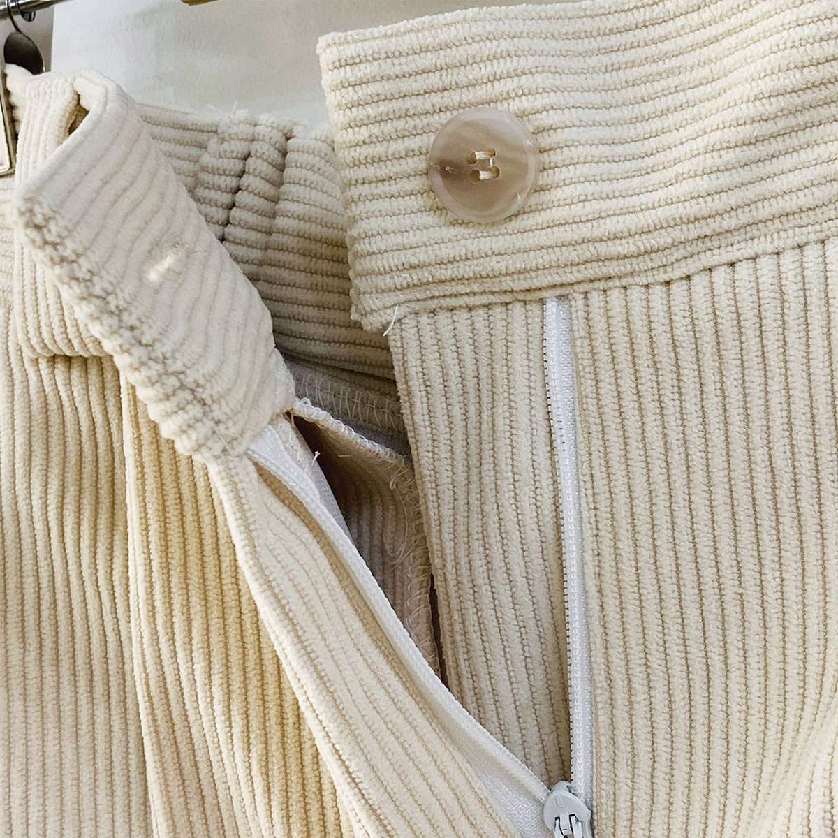 따뜻한 감촉의 코듀로이 소재로 제작된 미니 스커트 팬츠