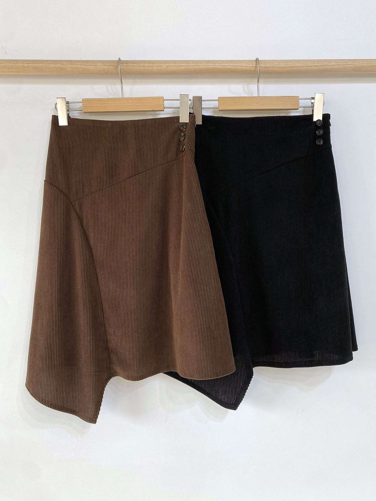 SK7526K5A-라비크 코듀로이 언발 버튼 미디스커트