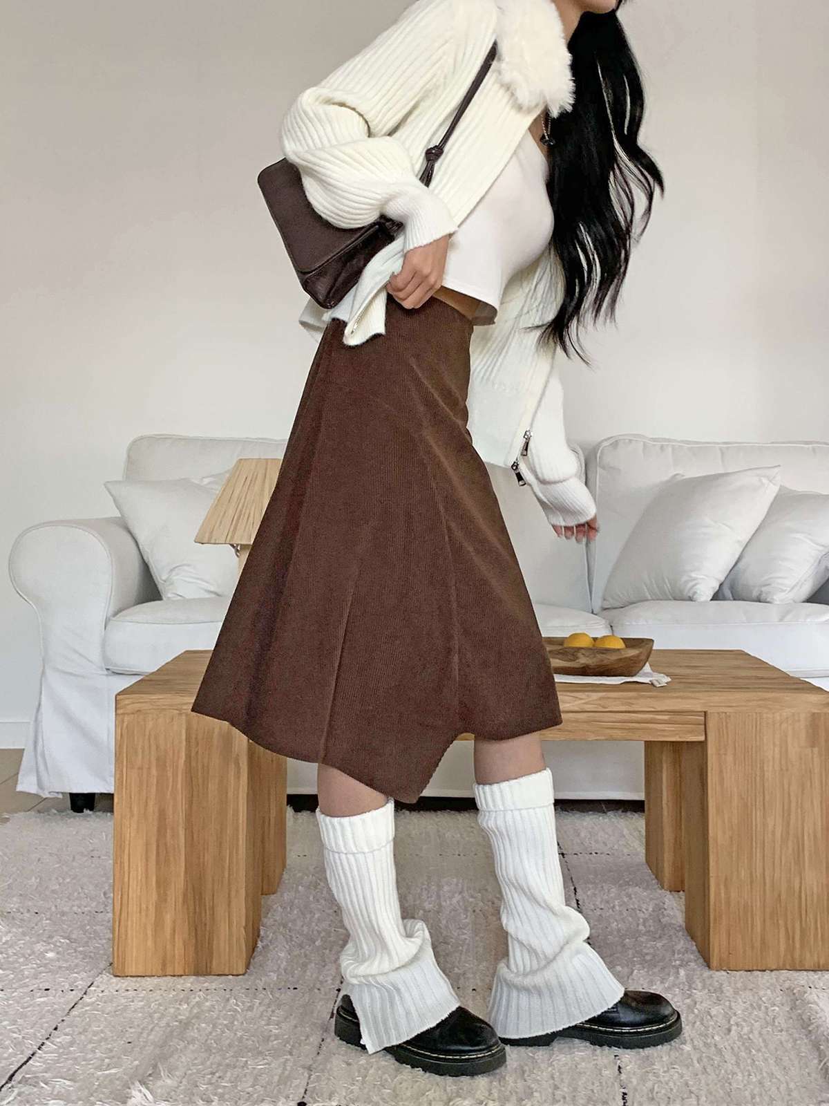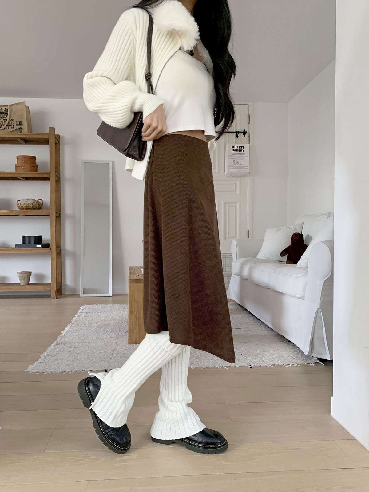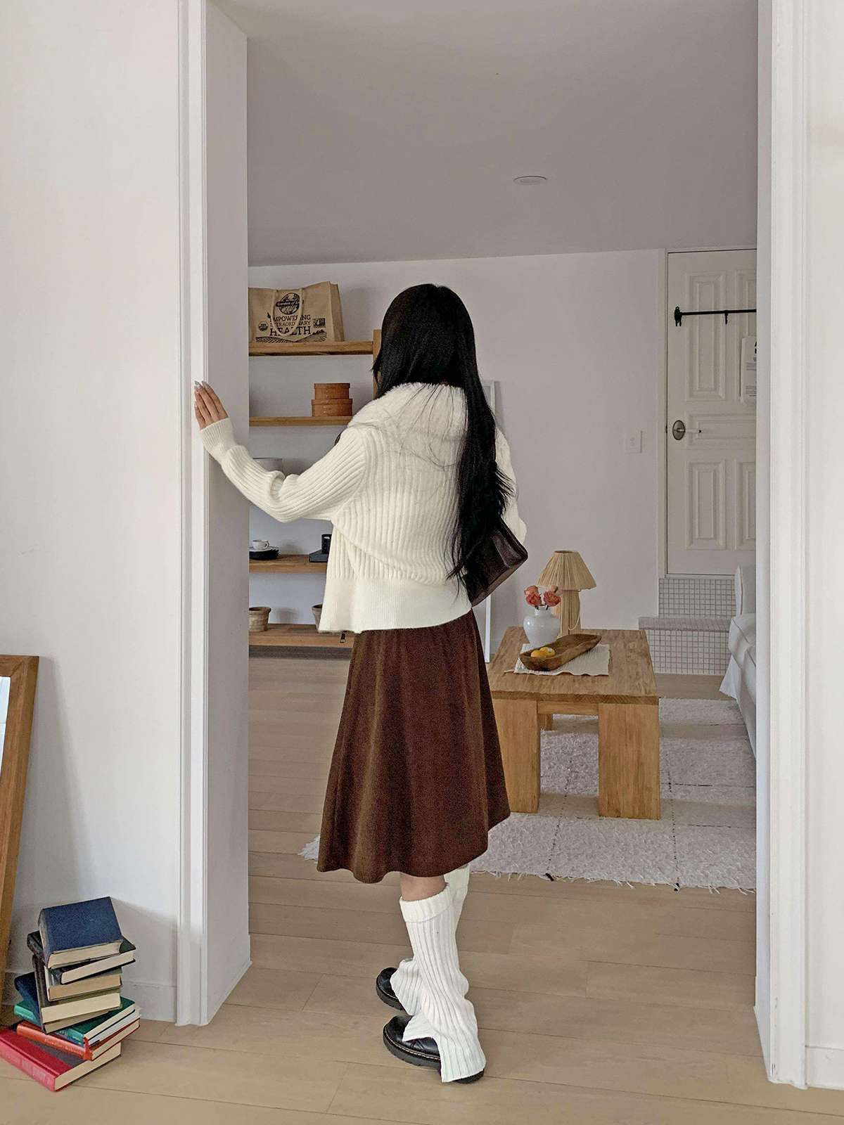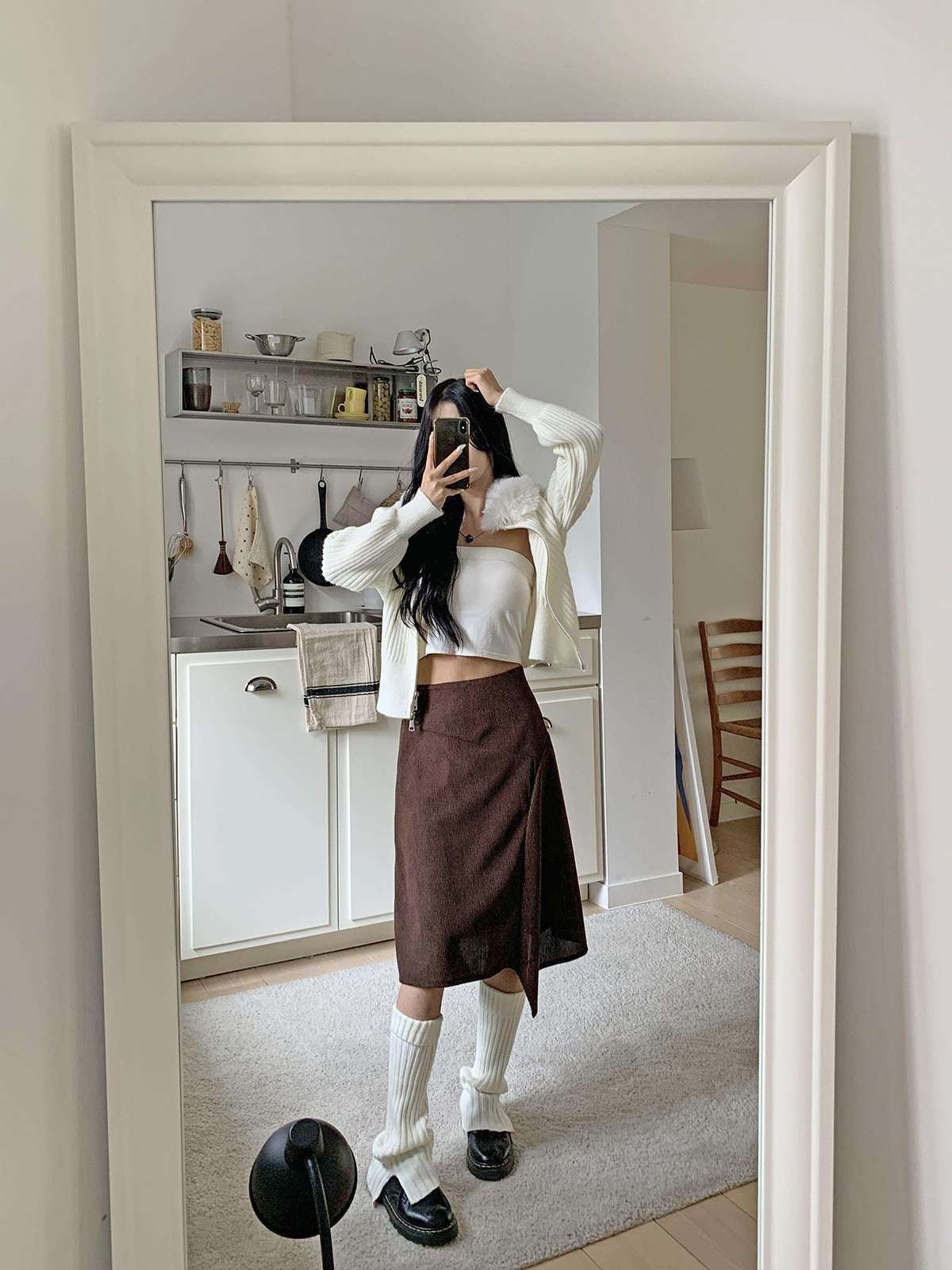 따뜻한 무드를 동시에 느낄 수 있는 미디 스커트로