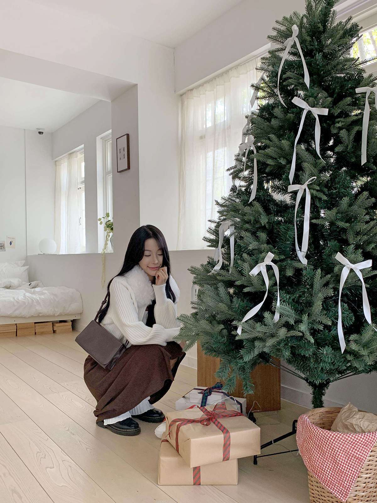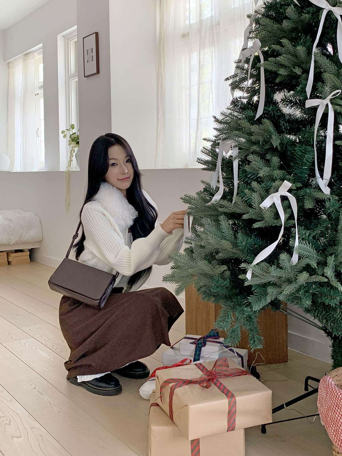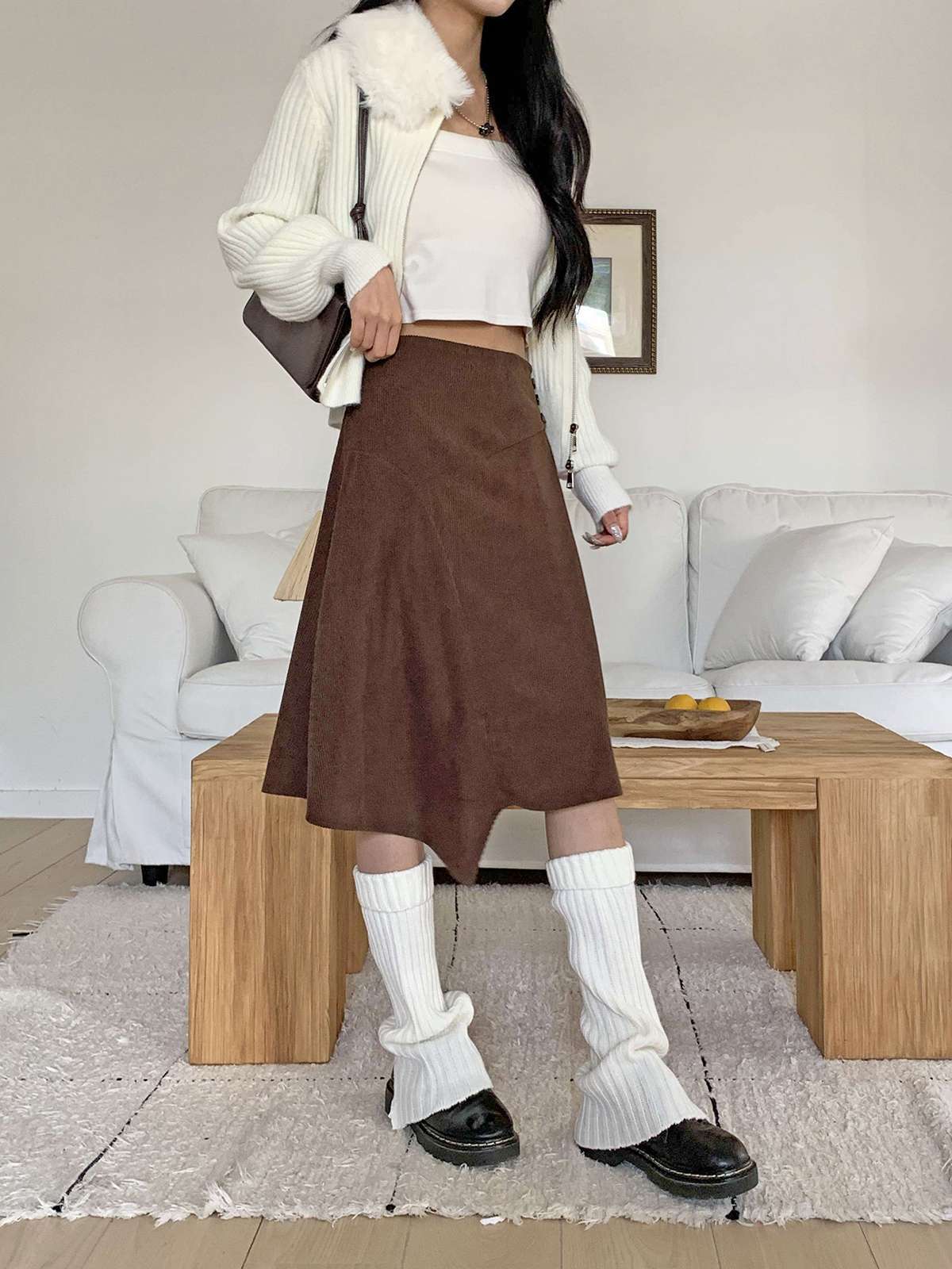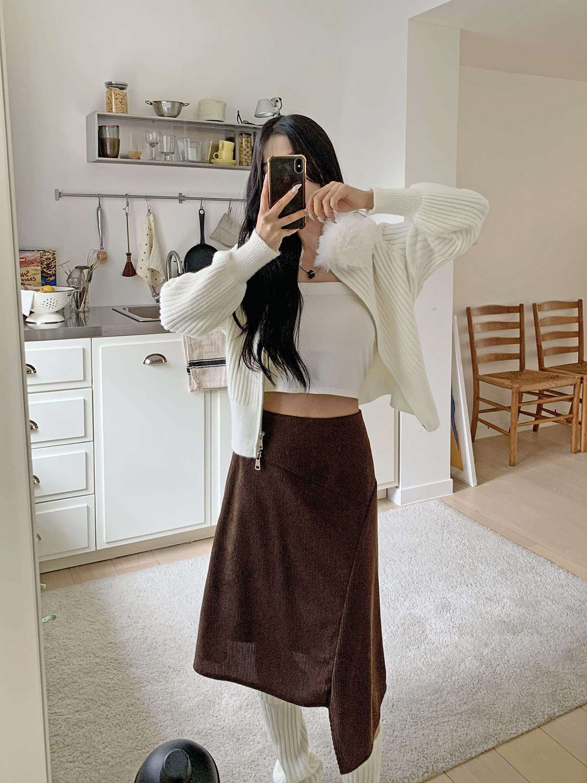 따뜻한 무드를 동시에 느낄 수 있는 미디 스커트로