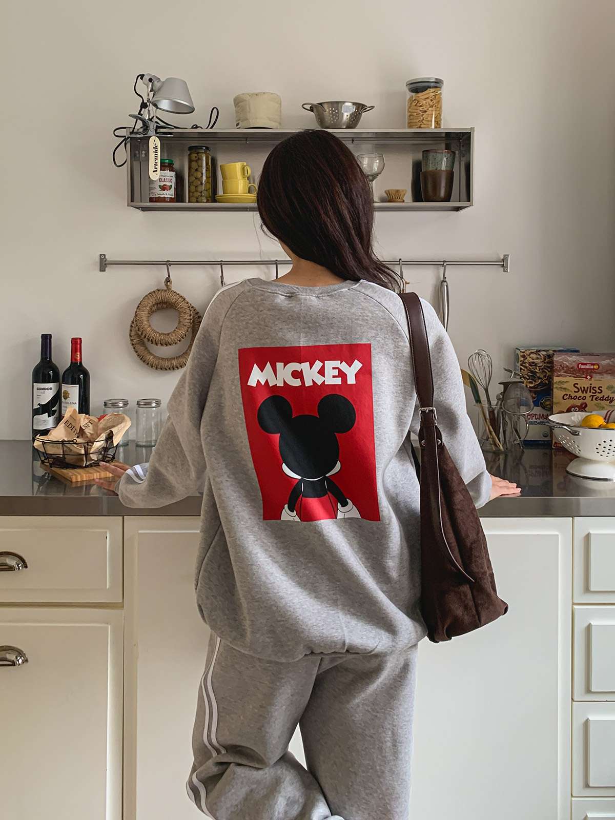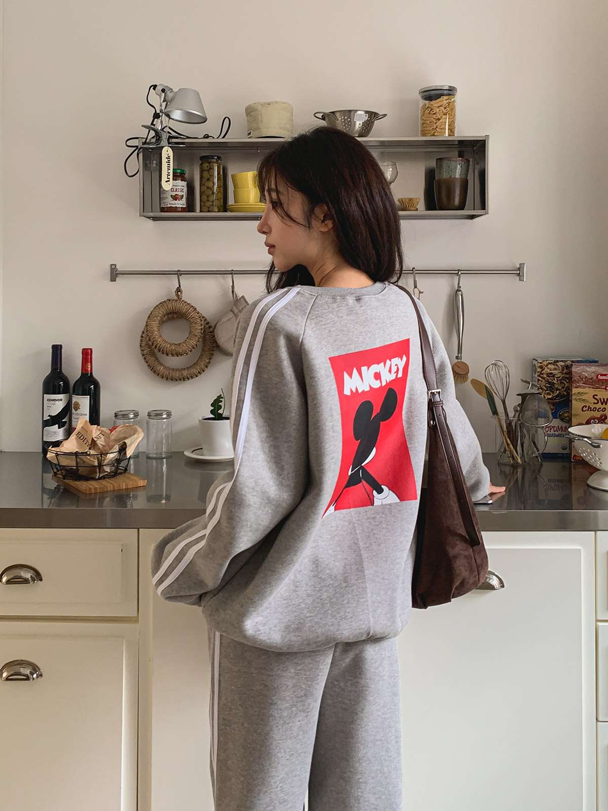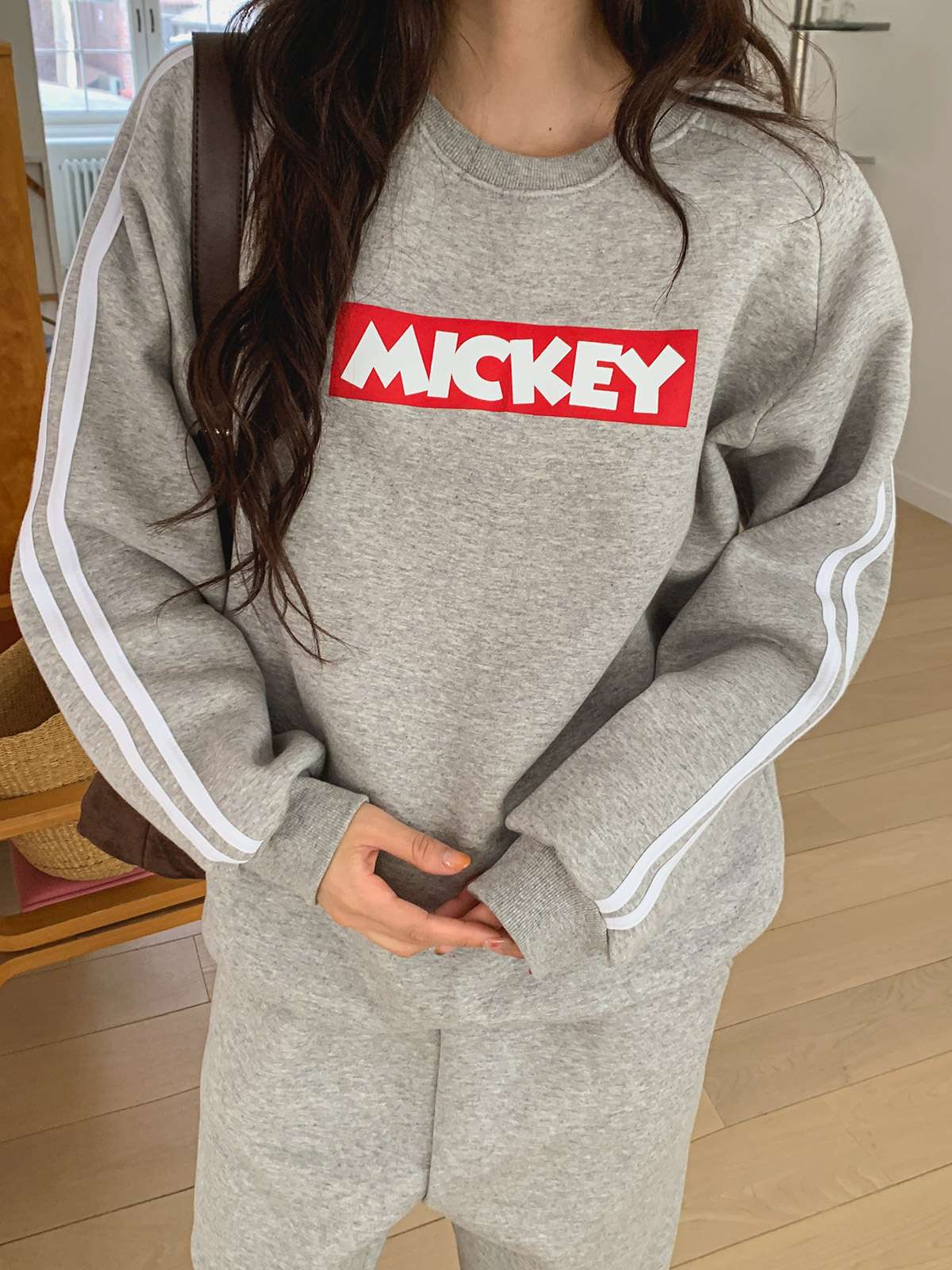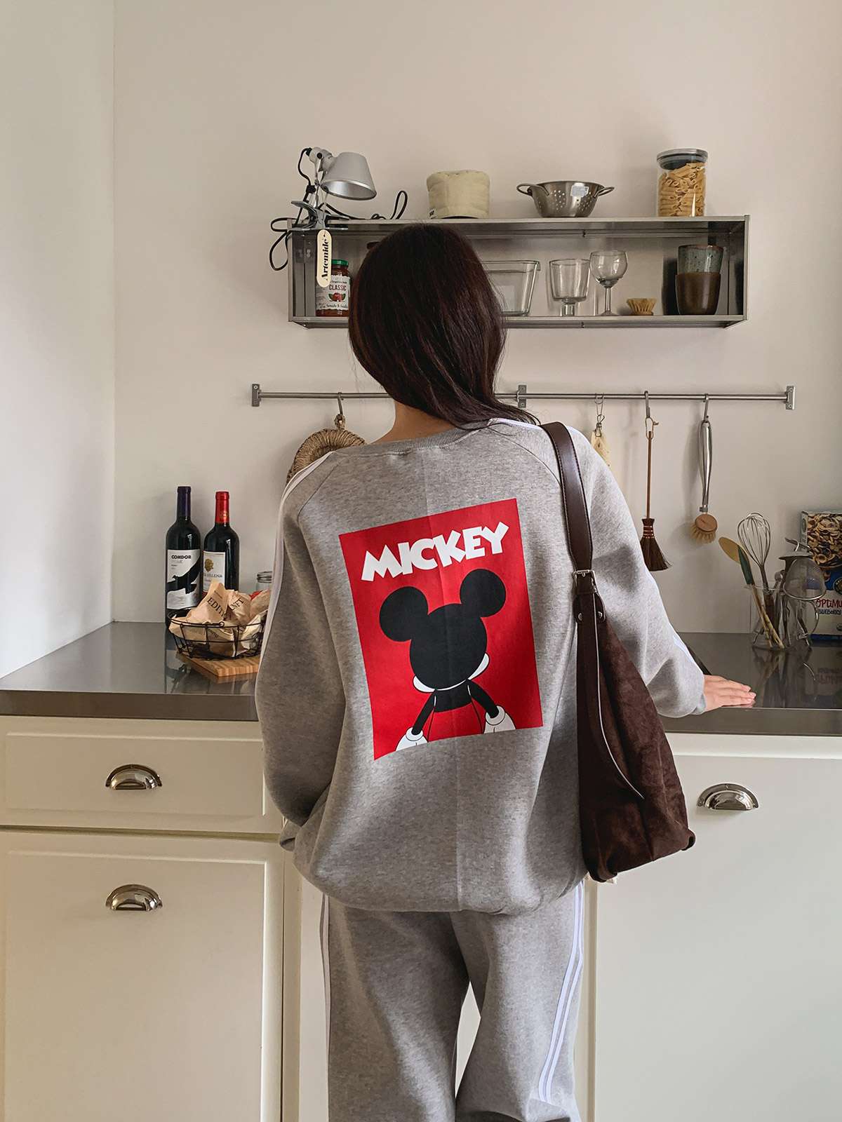 SET3879K5A-(디즈니정품)브리던 양기모 미키 프린팅 맨투맨 트레이닝 팬츠 세트
