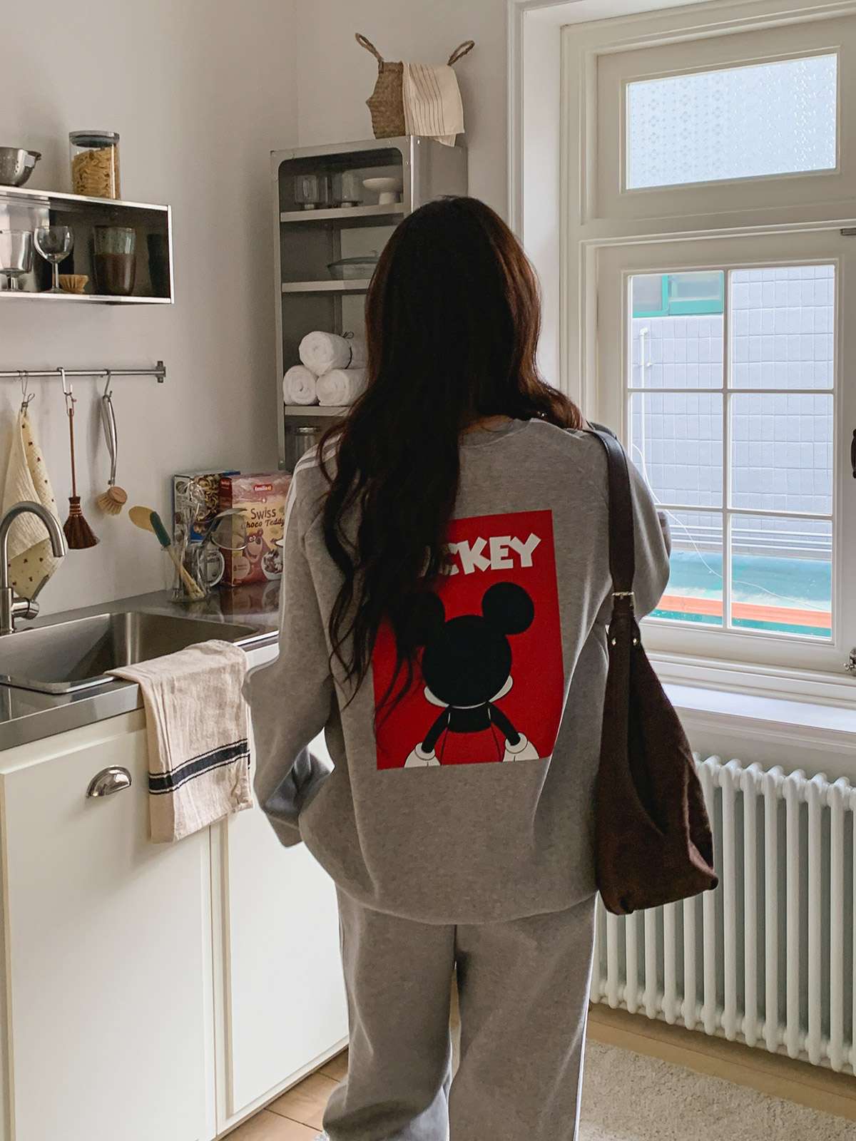 미키 프린팅 맨투맨과 트레이닝 팬츠 세트입니다.