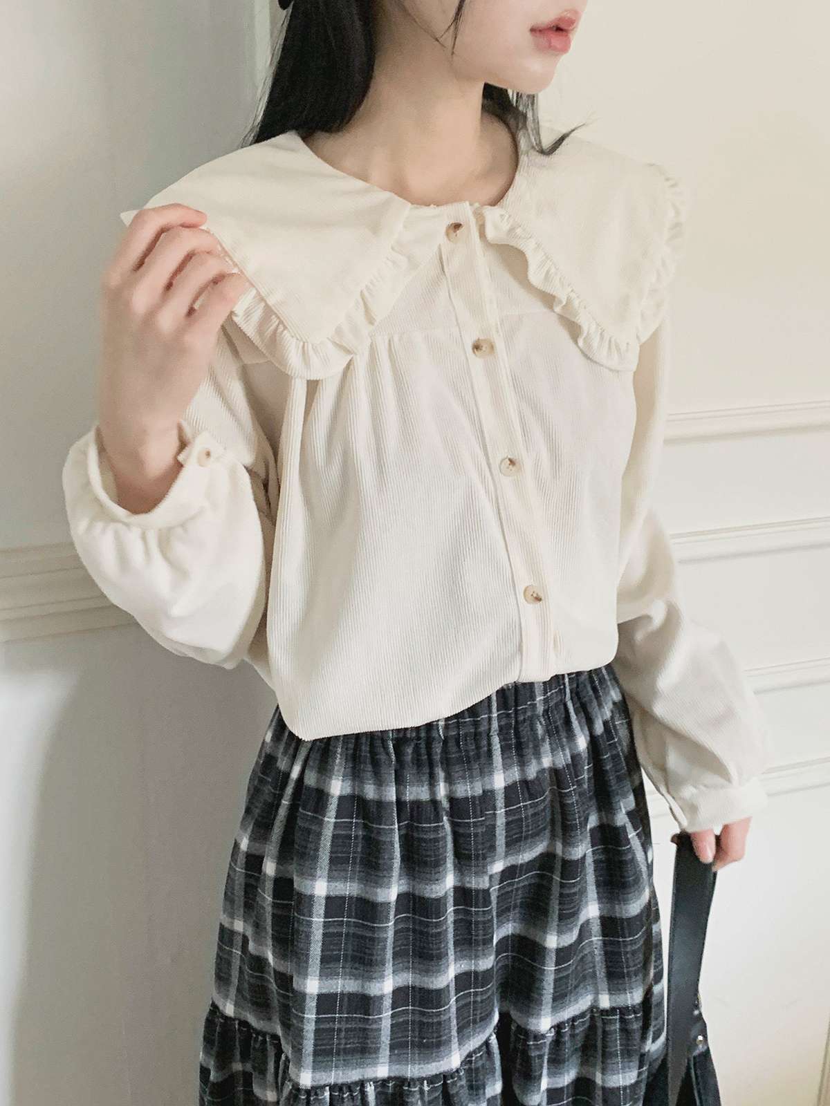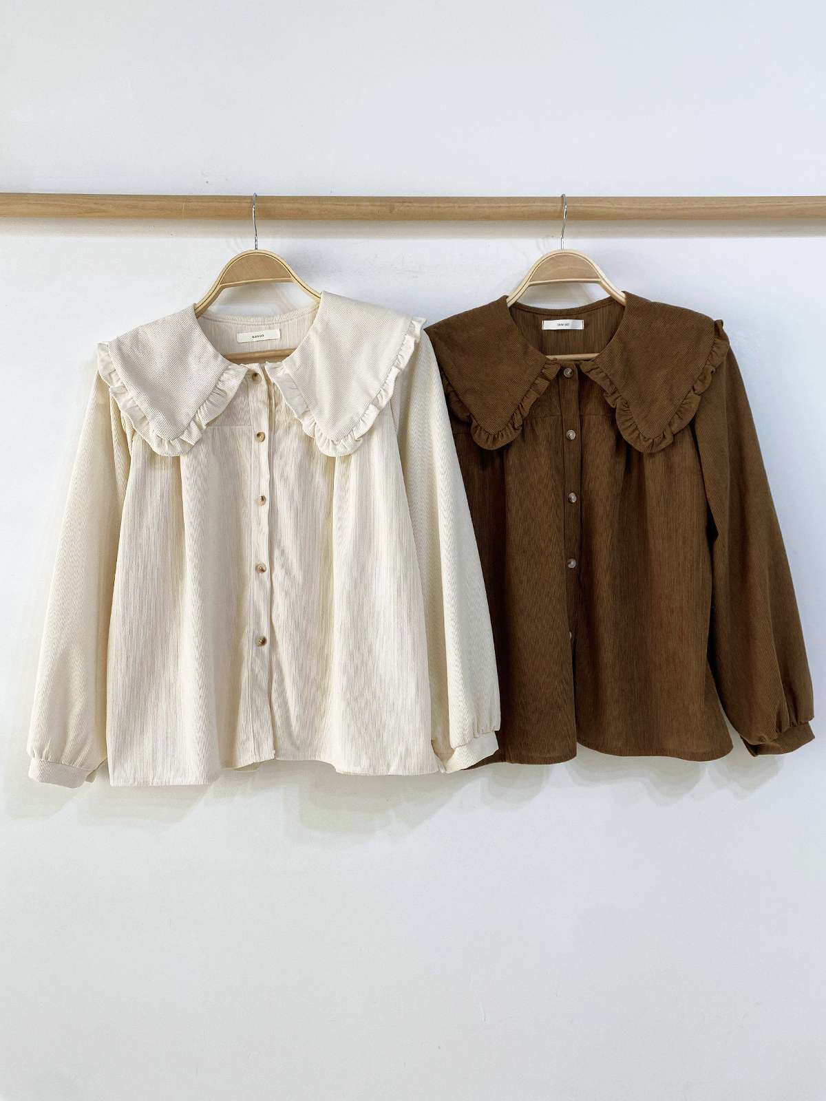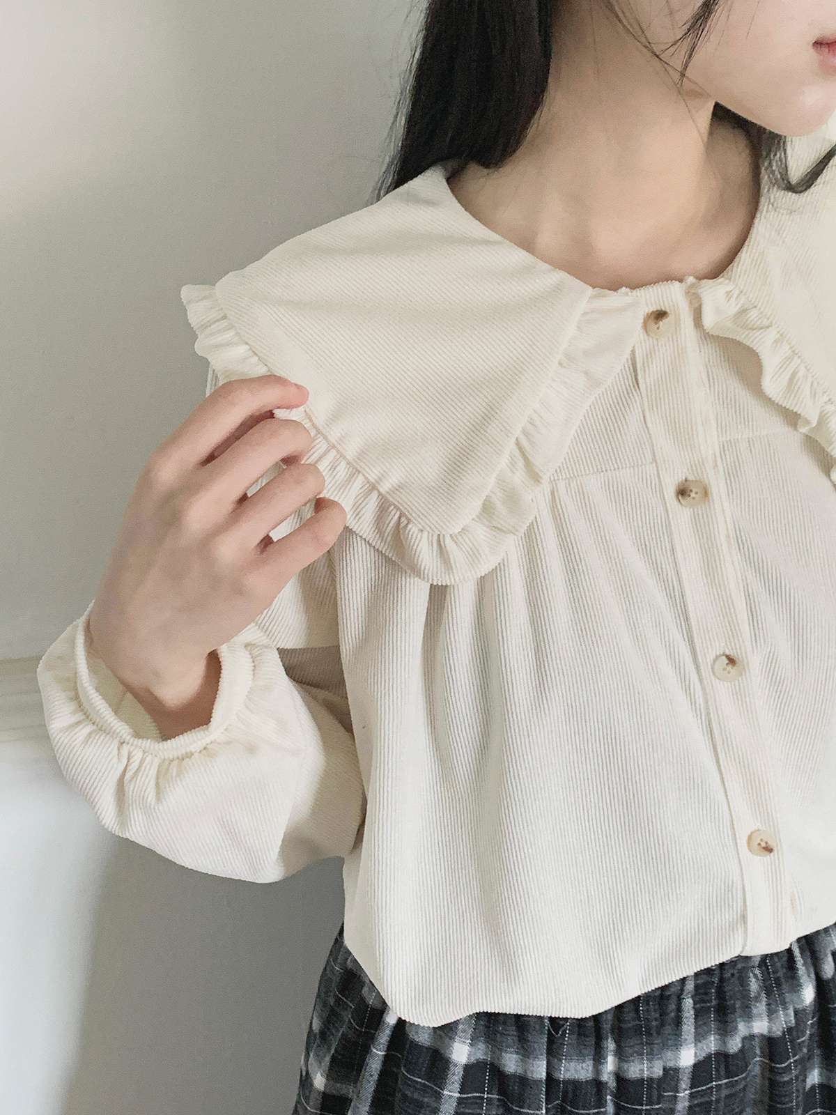 #블라우스#여성블라우스#루즈핏블라우스#블라우스코디#블라우스룩#데일리블라우스#코듀로이블라우스#코듀로이#프릴#카라#상의#긴팔#가을#겨울#빅카라#프릴블라우스#루즈핏#긴팔블라우스#겨울상의#프릴빅카라블라우스#루즈핏코듀로이블라우스#여성빅카라블라우스#긴팔루즈핏상의#코듀로이프릴블라우스#유니크#포인트#여성스러운#러블리한#캐주얼#클래식한#데일리룩#데이트룩#러블리룩#페미닌룩#캐주얼룩#캠퍼스룩