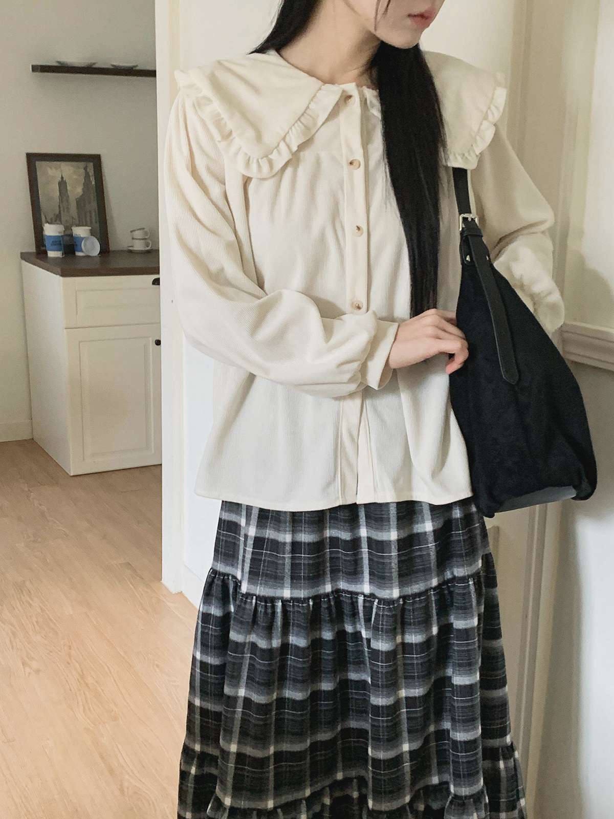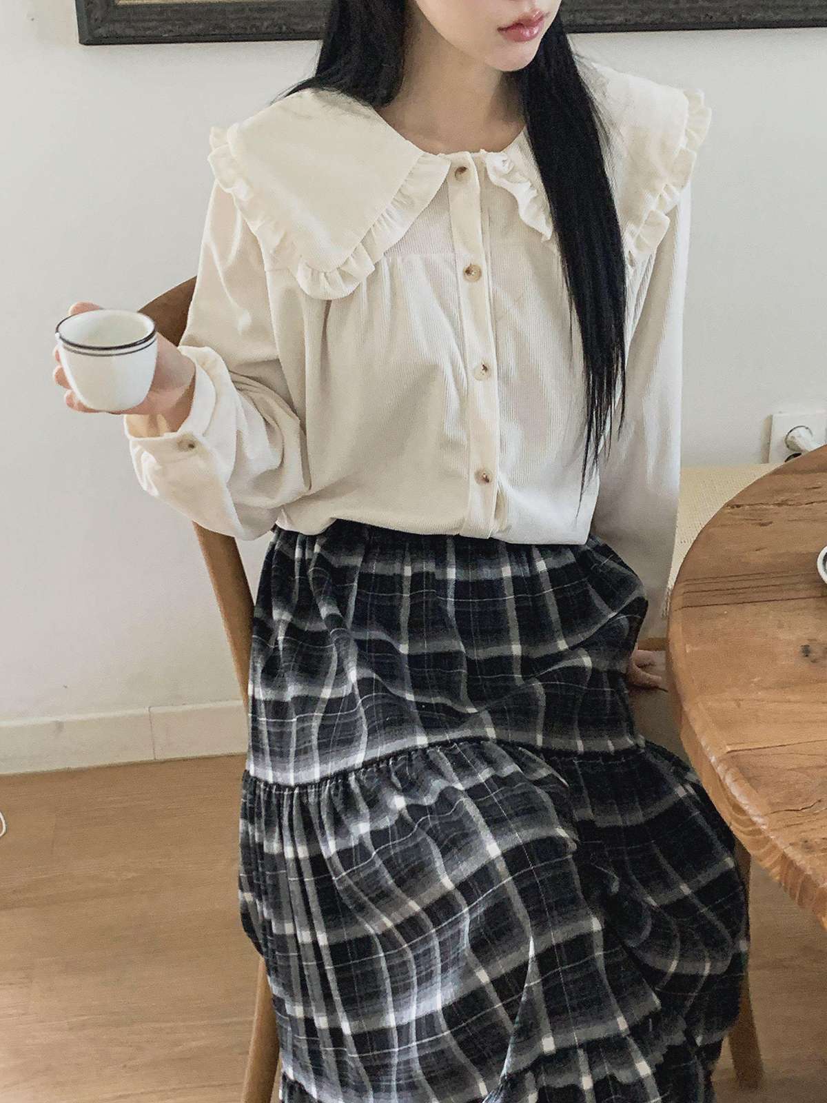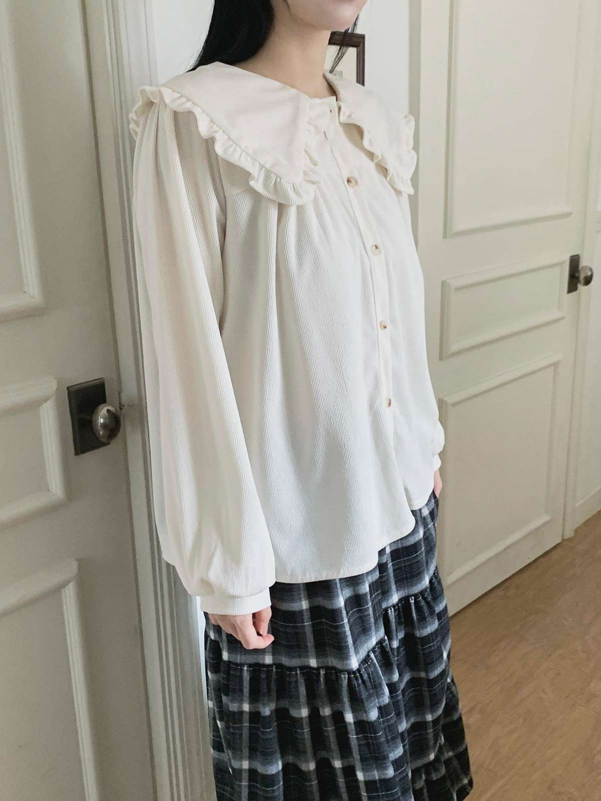 #블라우스#여성블라우스#루즈핏블라우스#블라우스코디#블라우스룩#데일리블라우스#코듀로이블라우스#코듀로이#프릴#카라#상의#긴팔#가을#겨울#빅카라#프릴블라우스#루즈핏#긴팔블라우스#겨울상의#프릴빅카라블라우스#루즈핏코듀로이블라우스#여성빅카라블라우스#긴팔루즈핏상의#코듀로이프릴블라우스#유니크#포인트#여성스러운#러블리한#캐주얼#클래식한#데일리룩#데이트룩#러블리룩#페미닌룩#캐주얼룩#캠퍼스룩