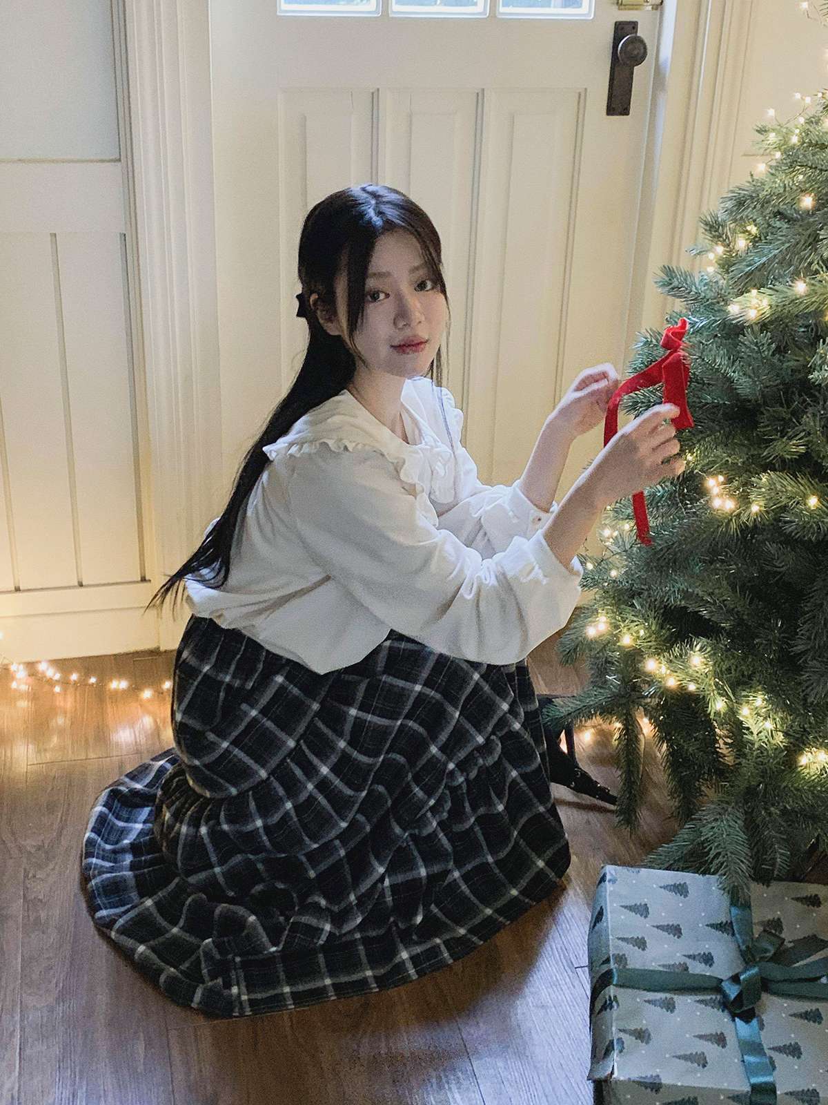 귀여운 빅 카라 디자인으로 여리여리한 무드를 연출해주고