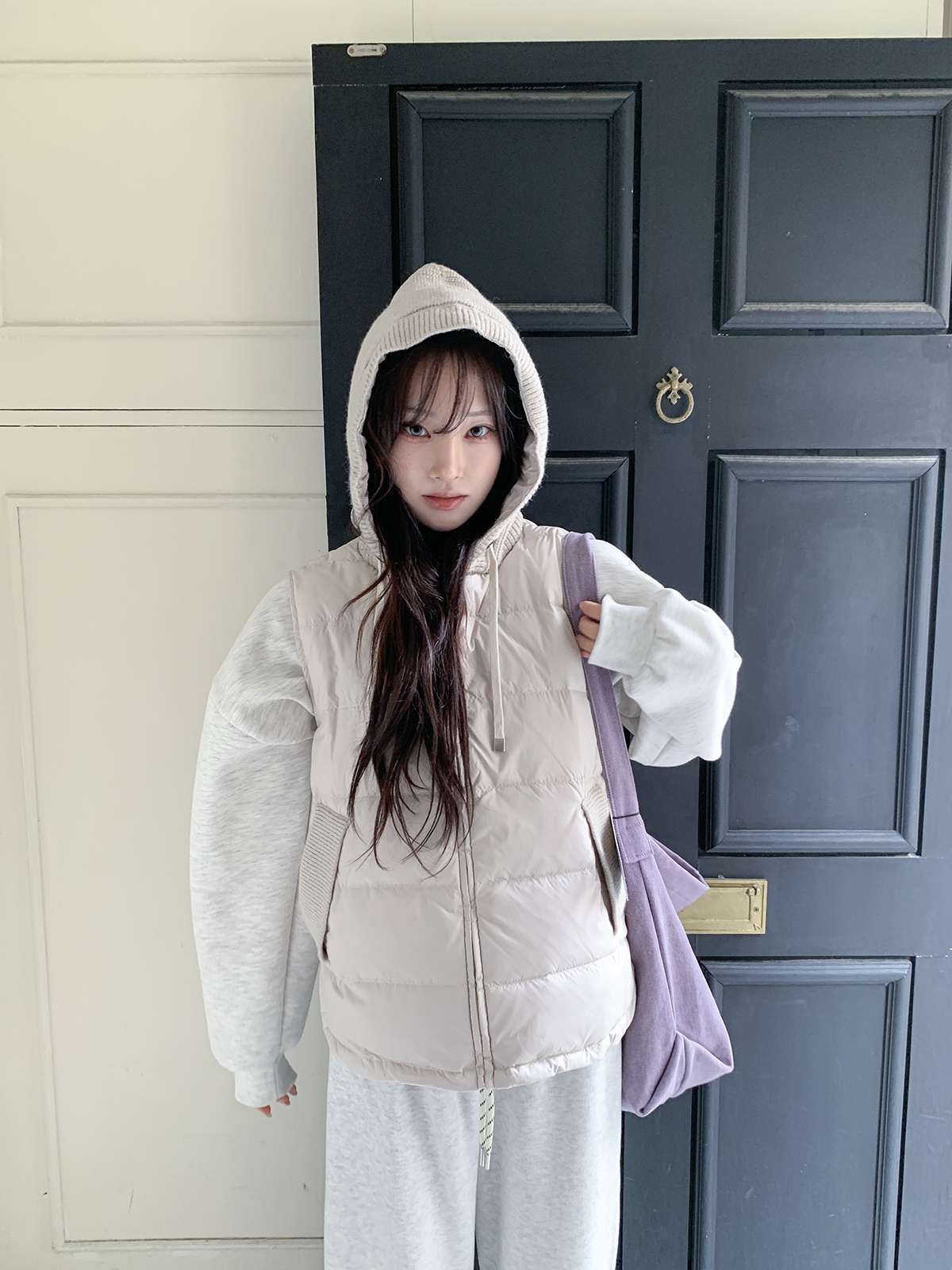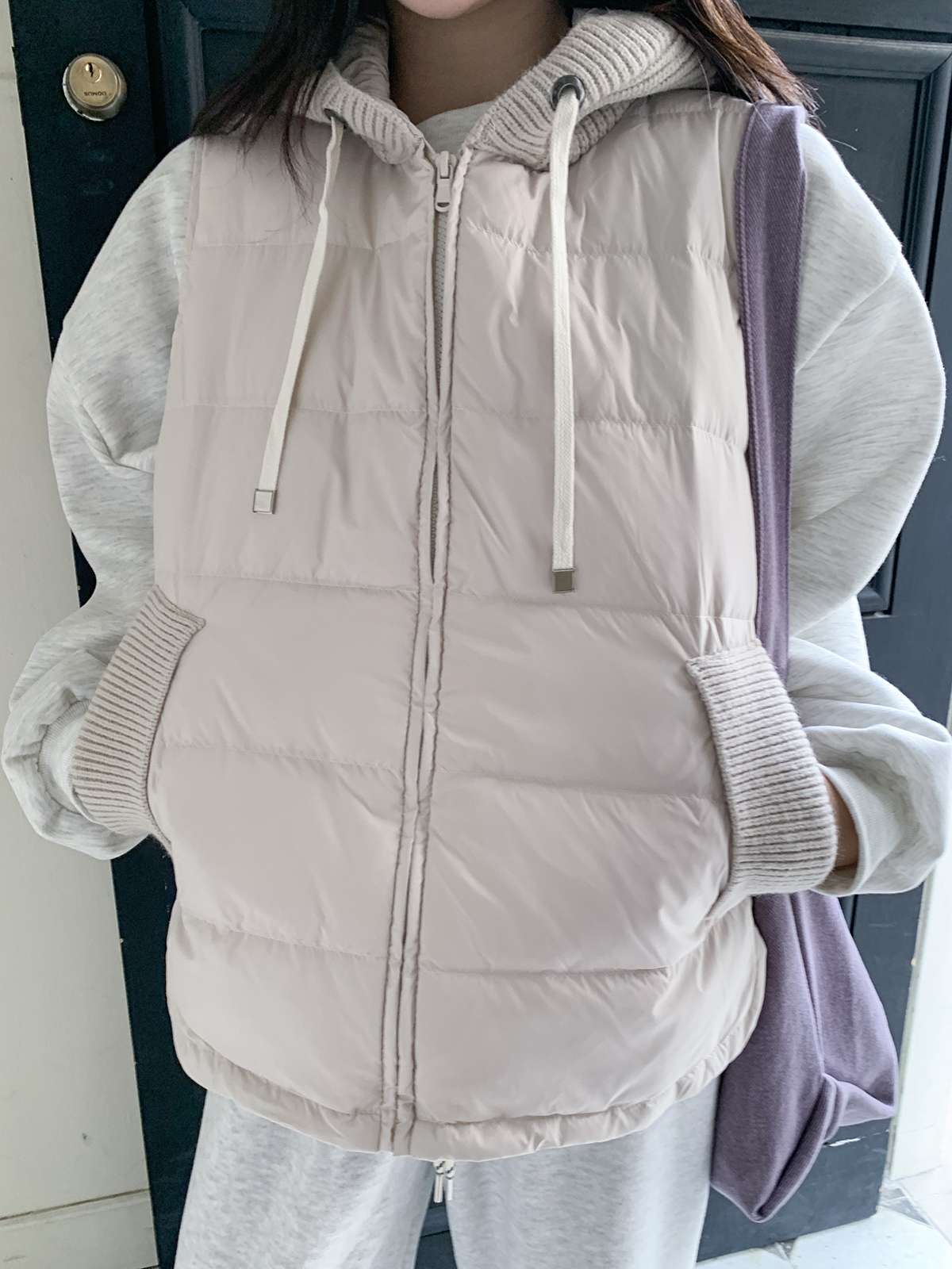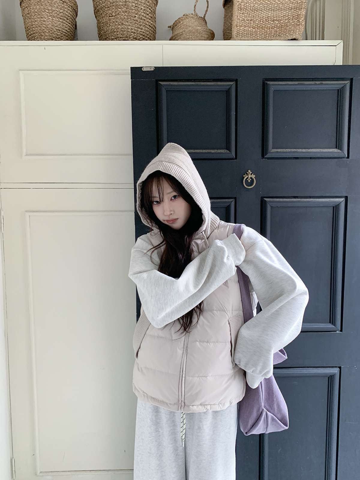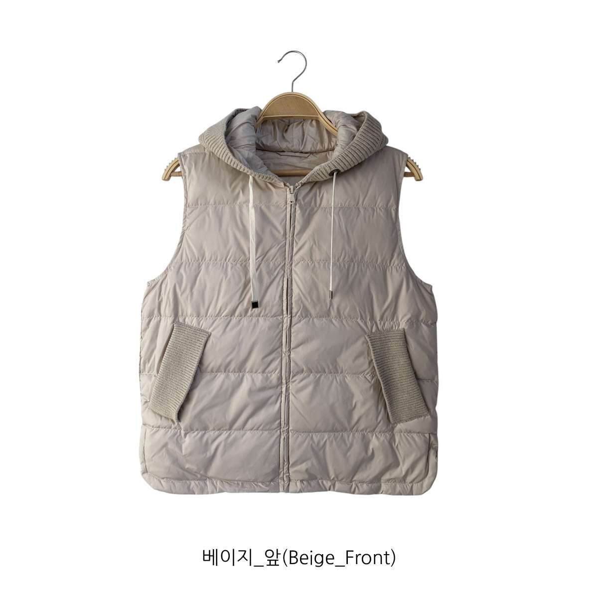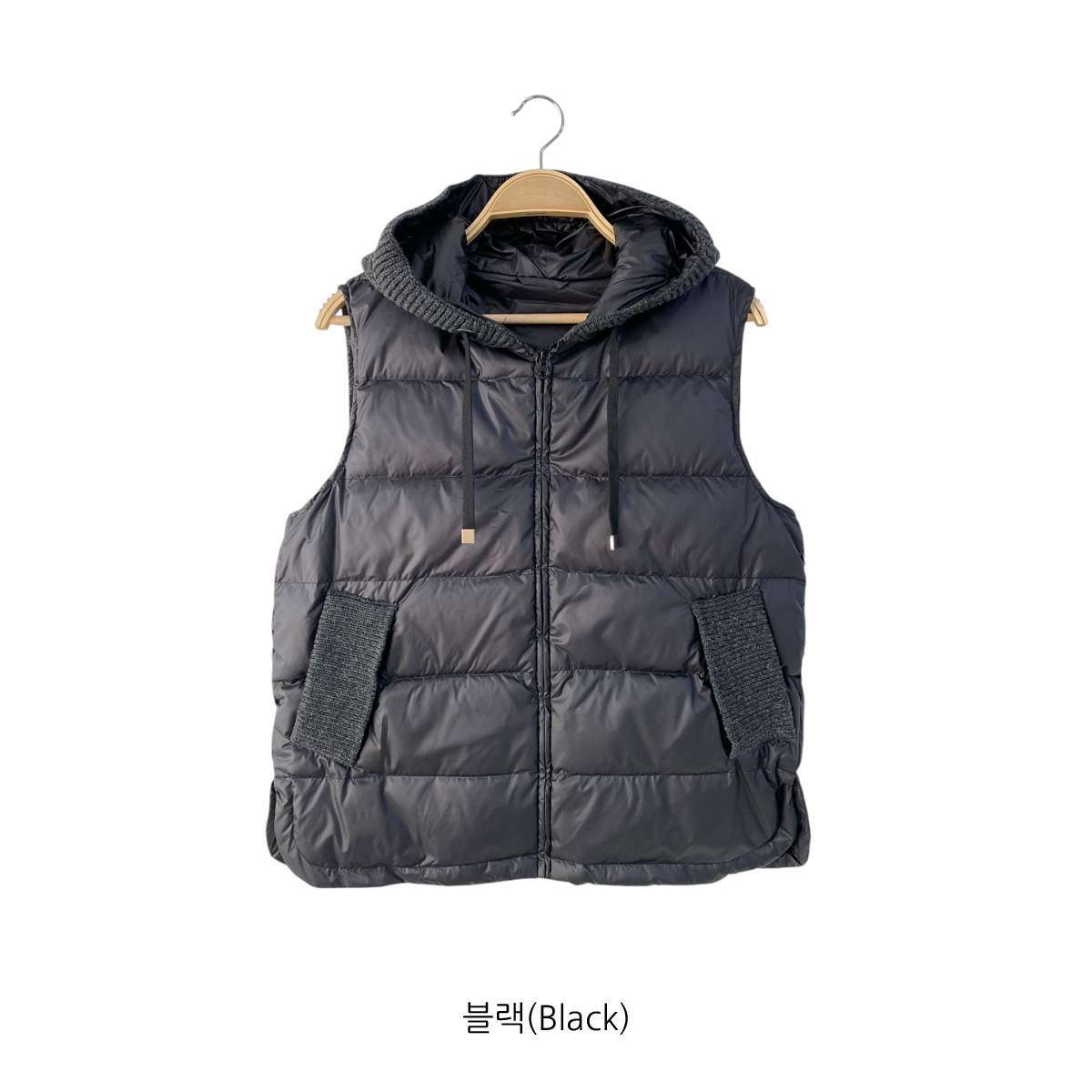 [ VT1406K5A-루아벨 니트 후드 오리털 패딩 조끼 ]
