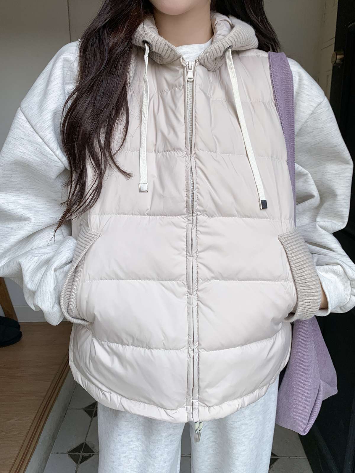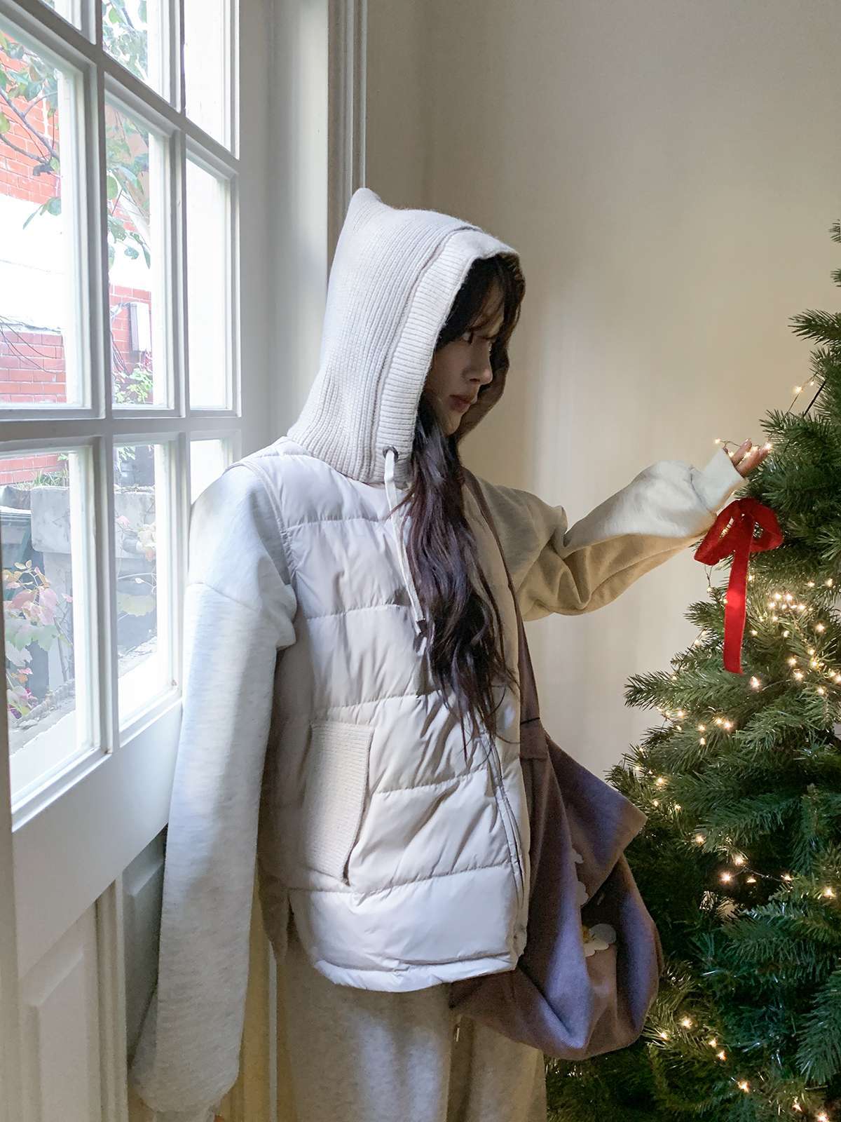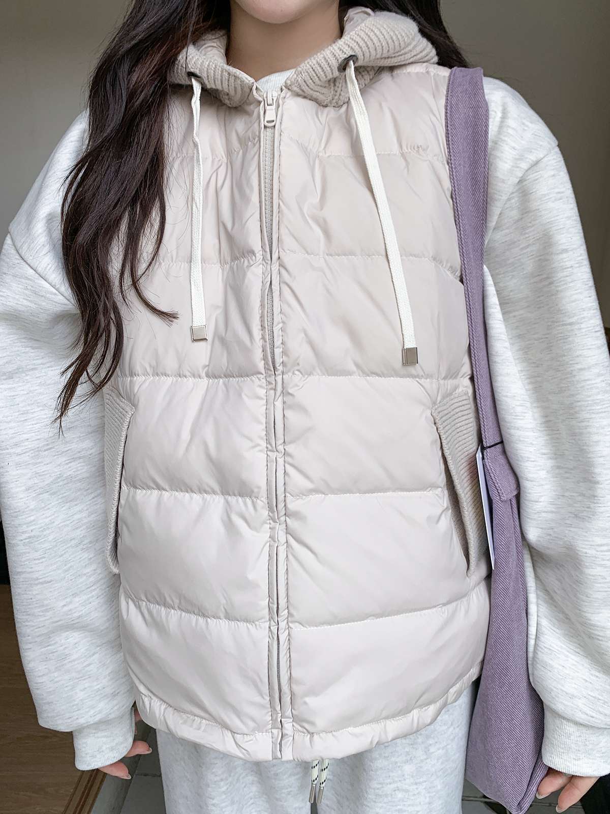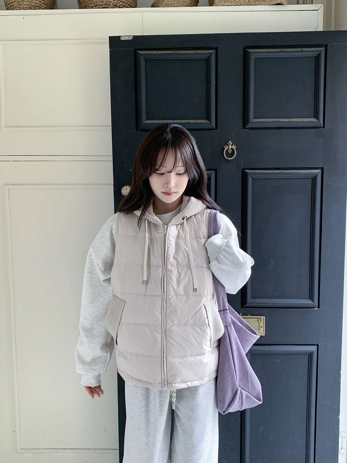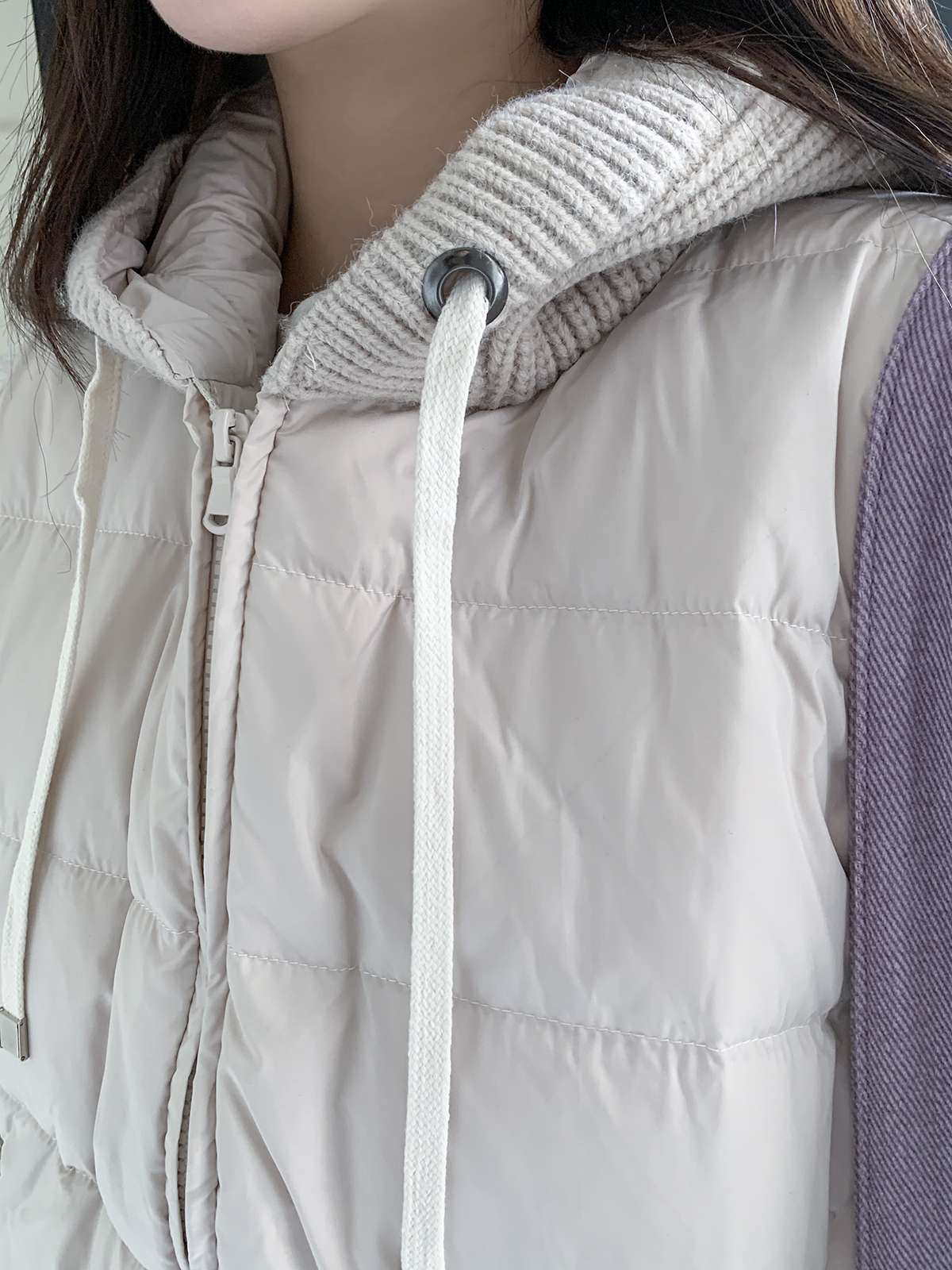 [ VT1406K5A-루아벨 니트 후드 오리털 패딩 조끼 ]