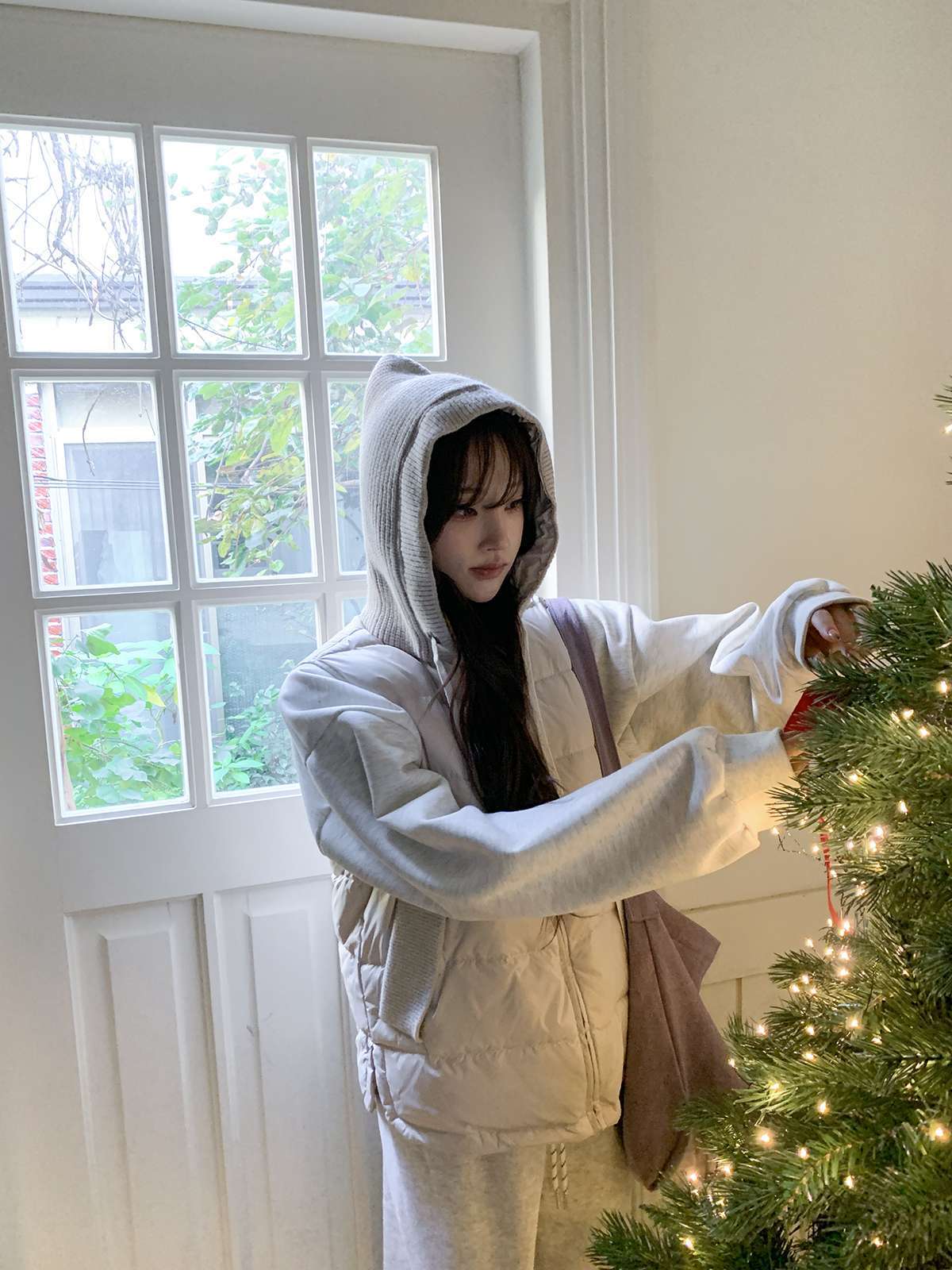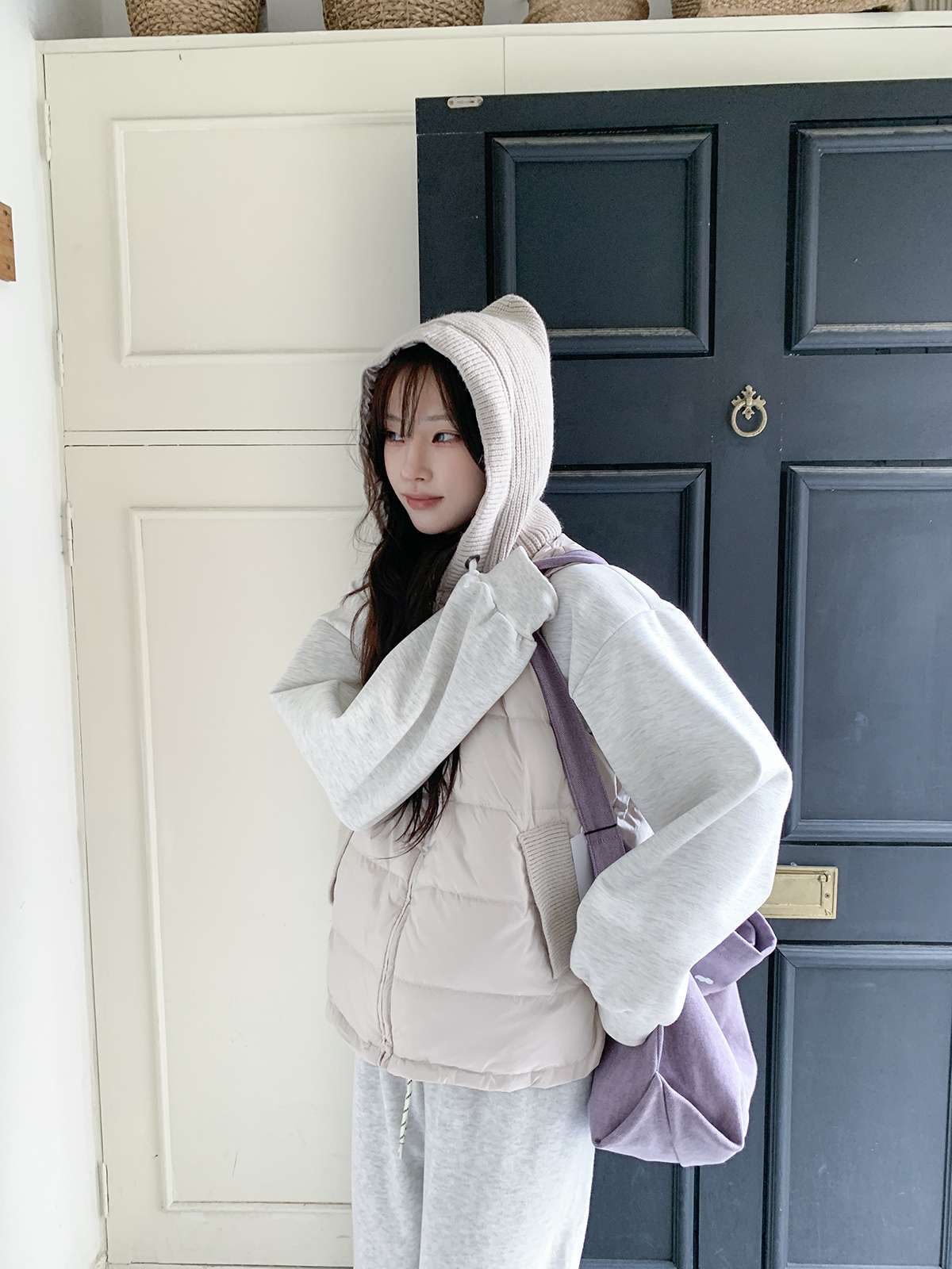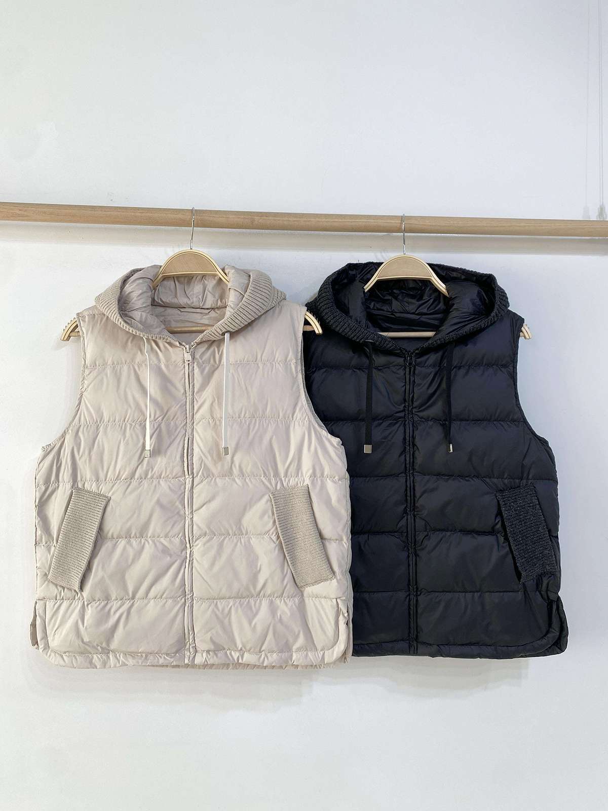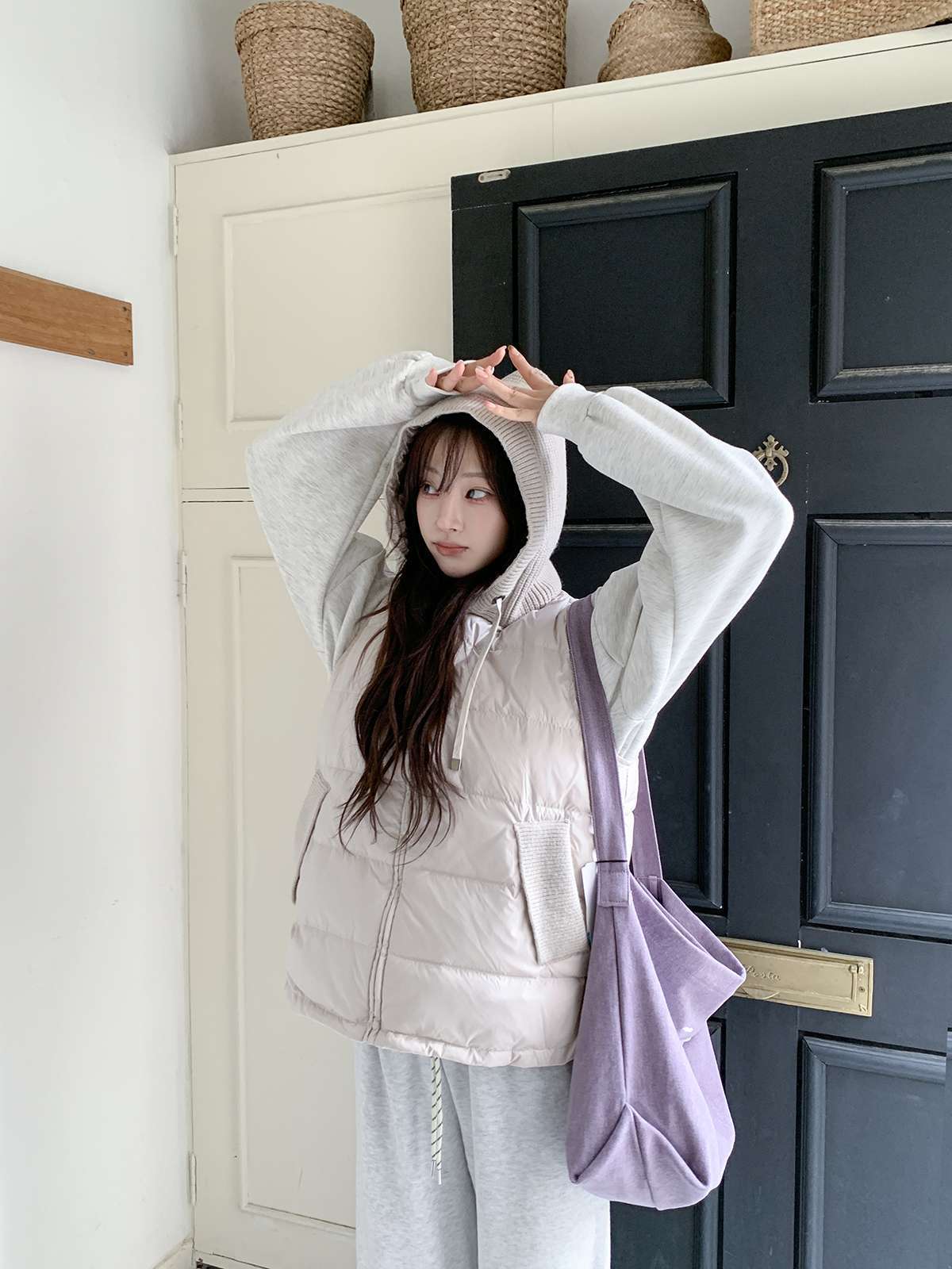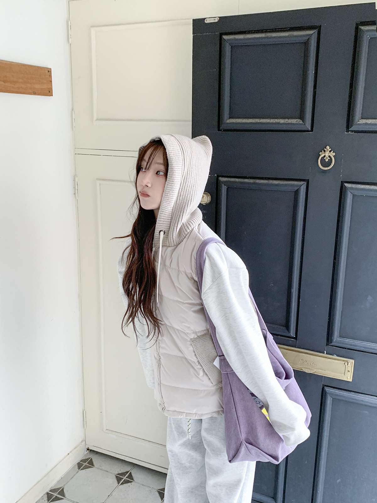 [ VT1406K5A-루아벨 니트 후드 오리털 패딩 조끼 ]