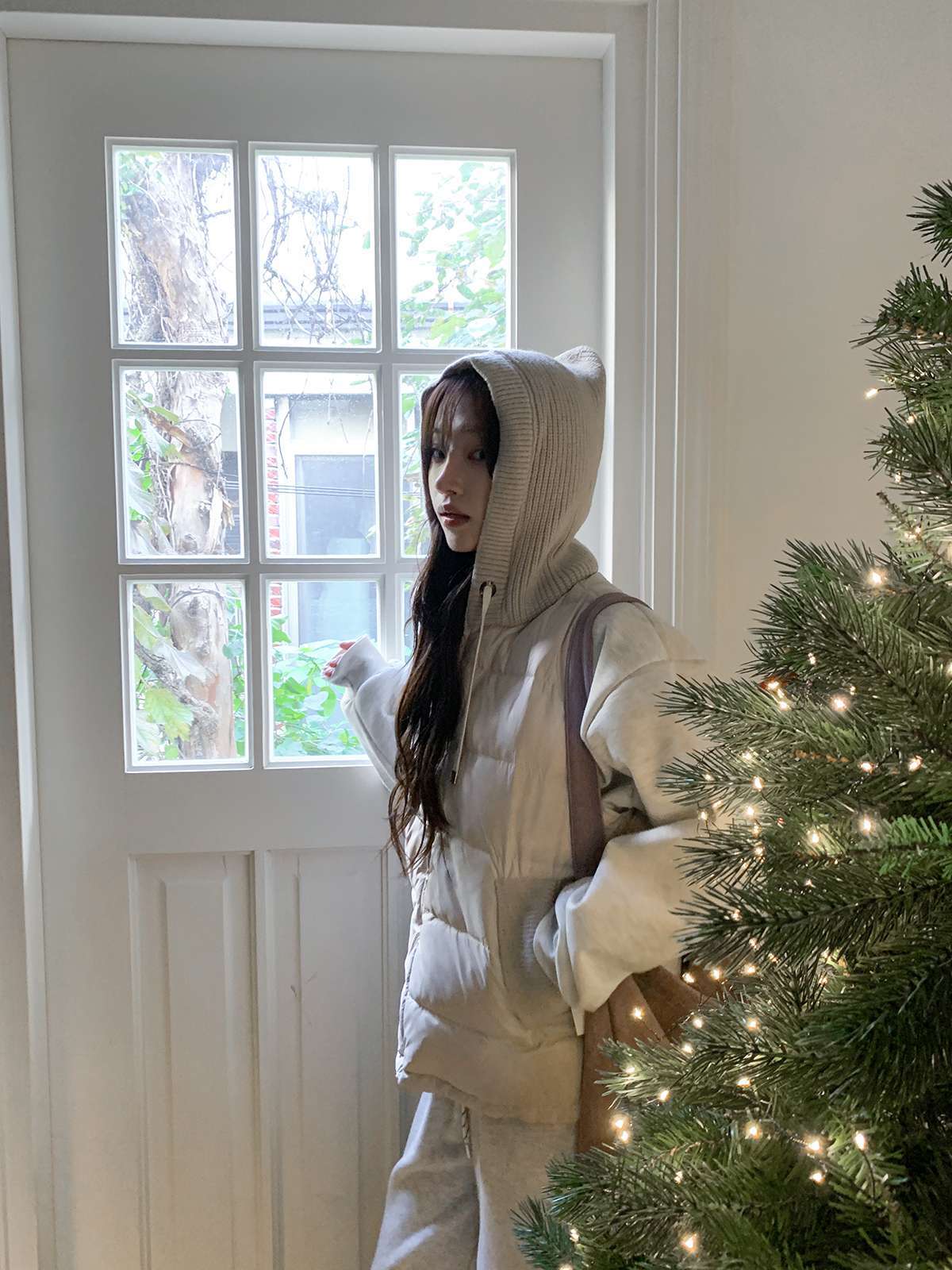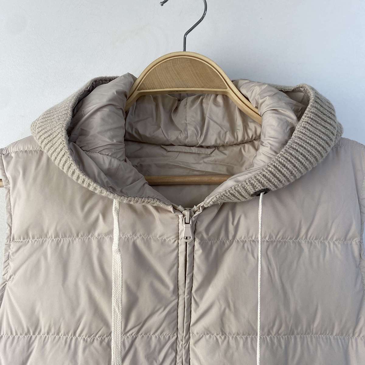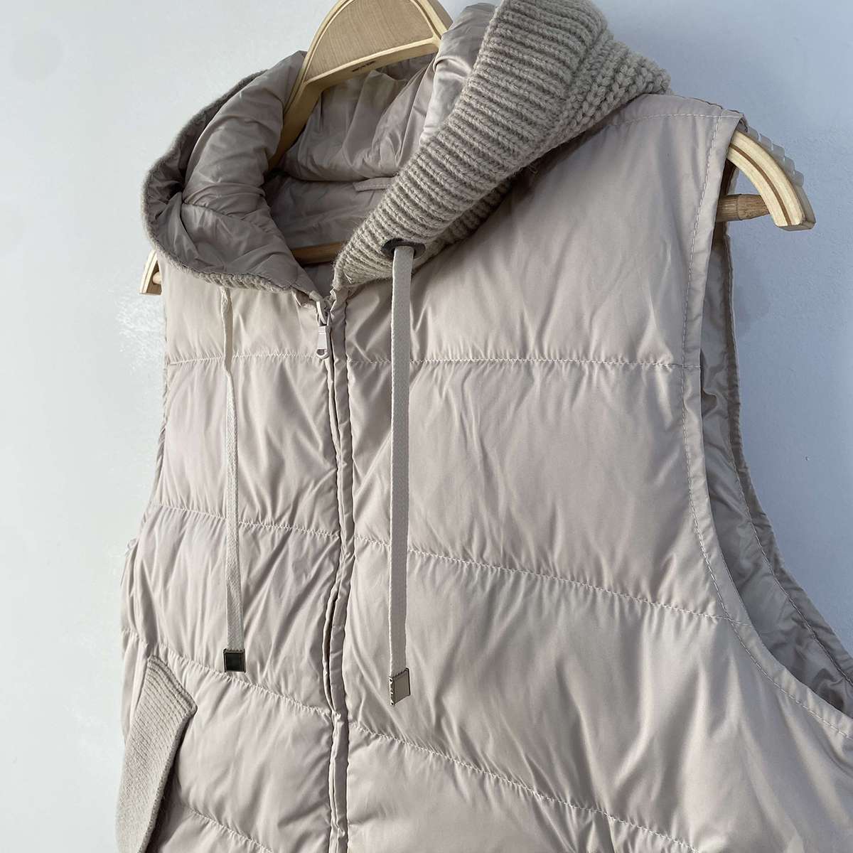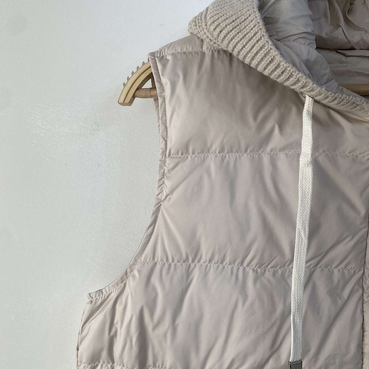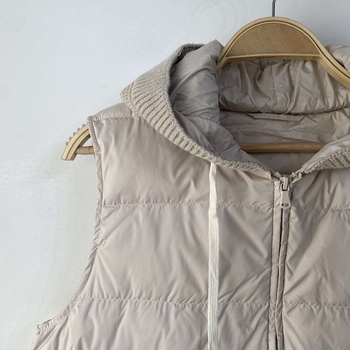 [ VT1406K5A-루아벨 니트 후드 오리털 패딩 조끼 ]
