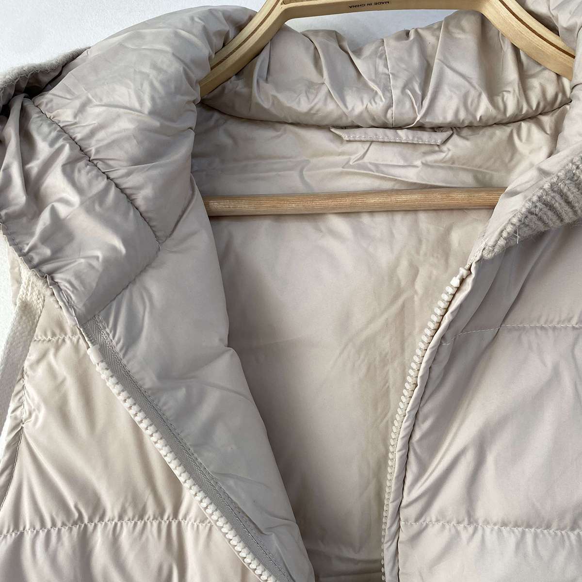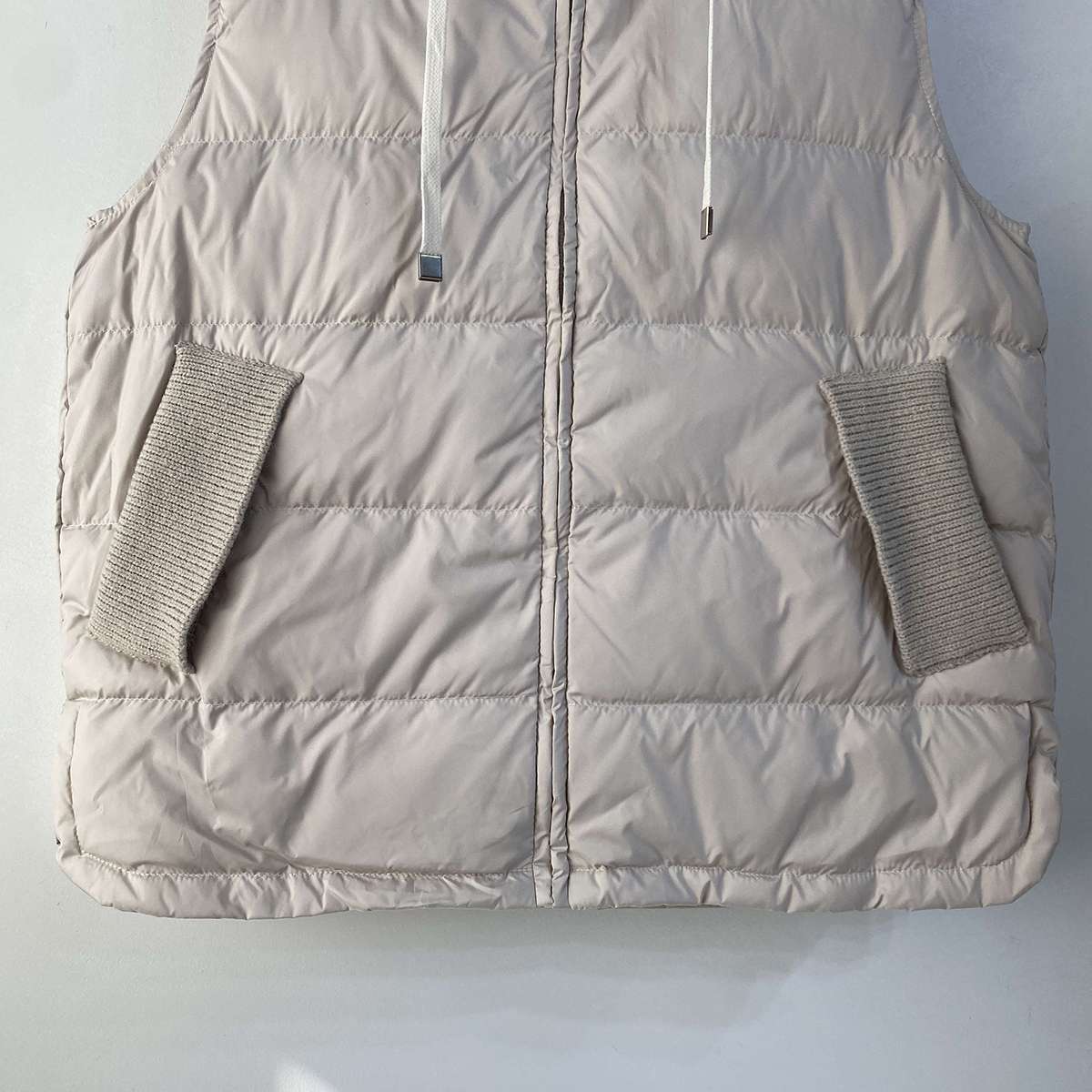 따뜻한 오리털 충전재를 사용하여 가볍고 보온성이 뛰어난 숏 패딩 조끼