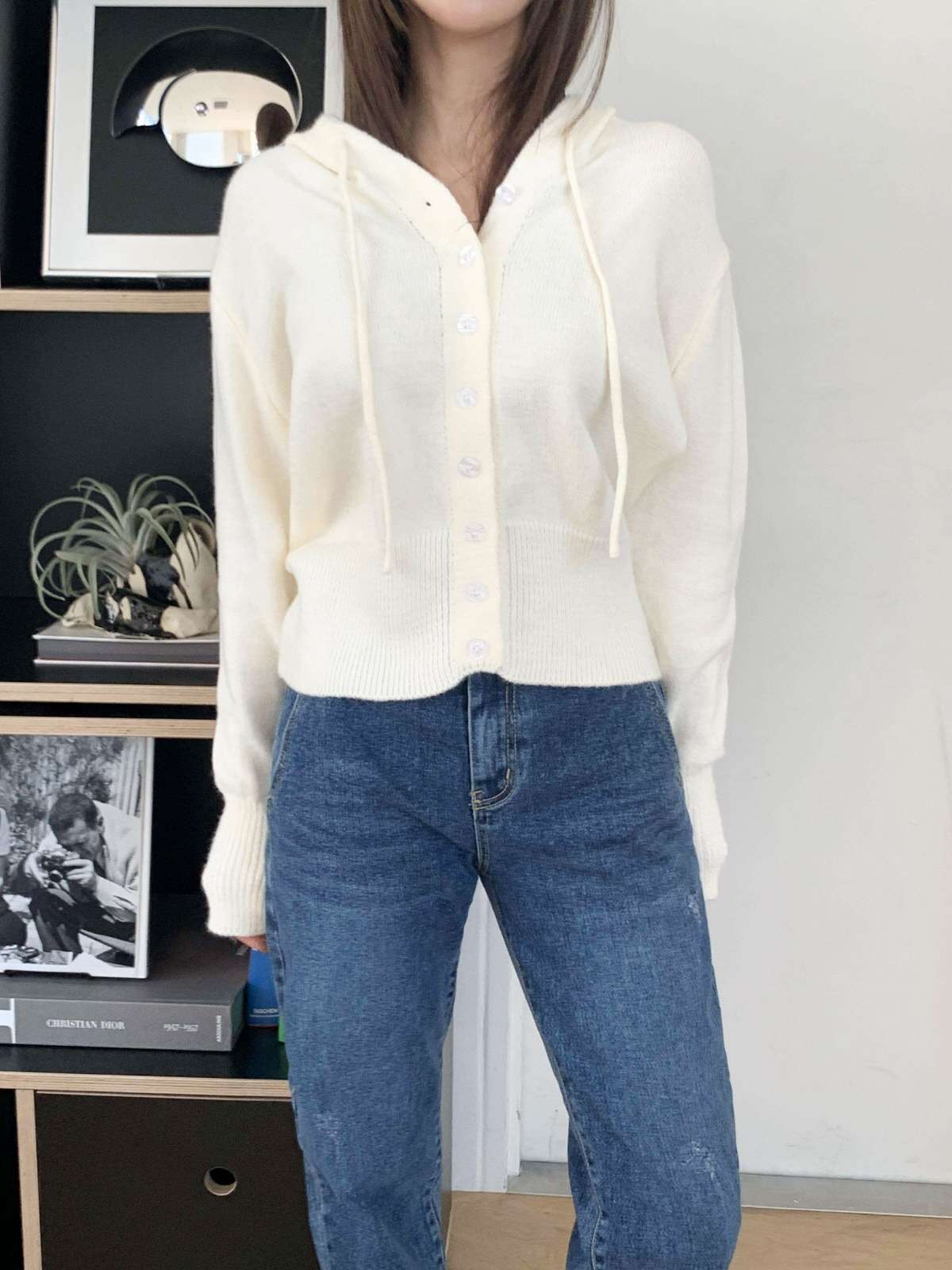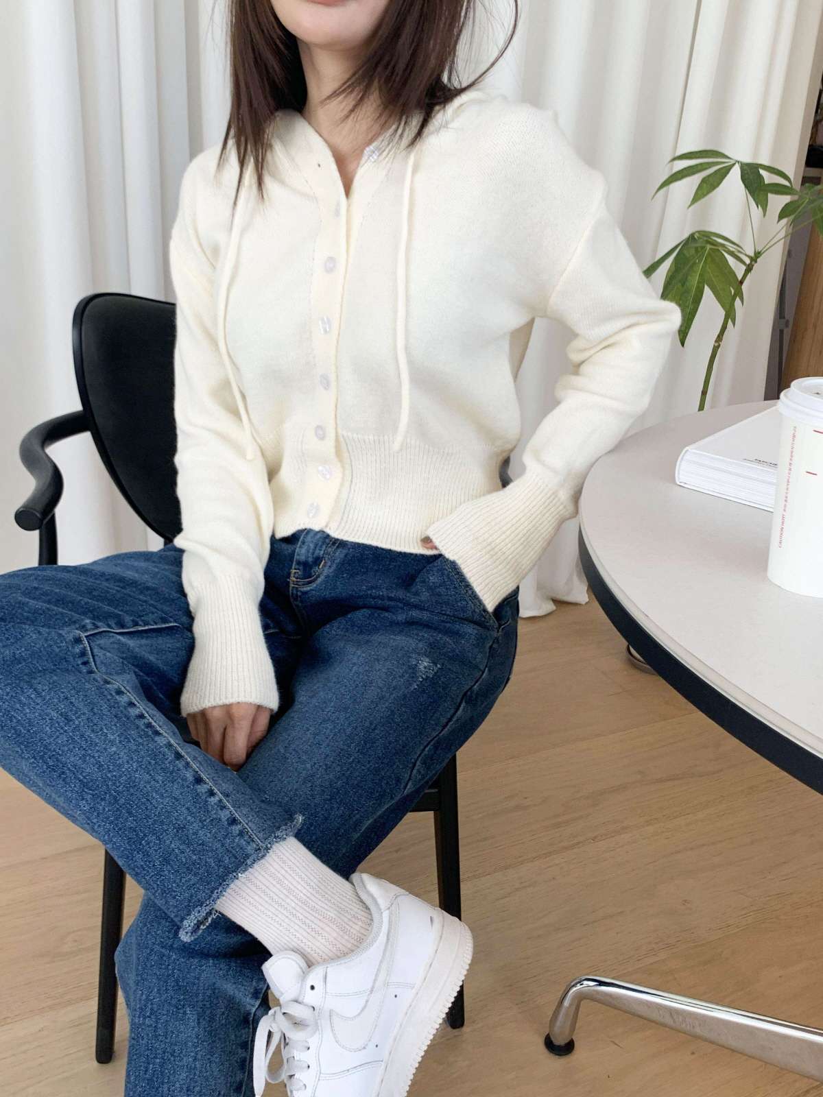 이너로도 아우터로도 활용하기 좋은 크롭 후드 니트 가디건
