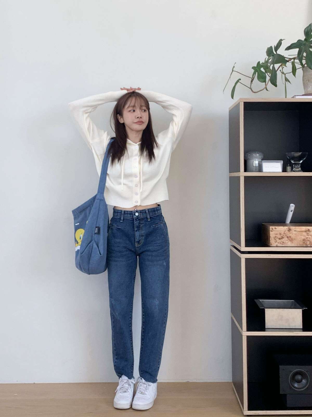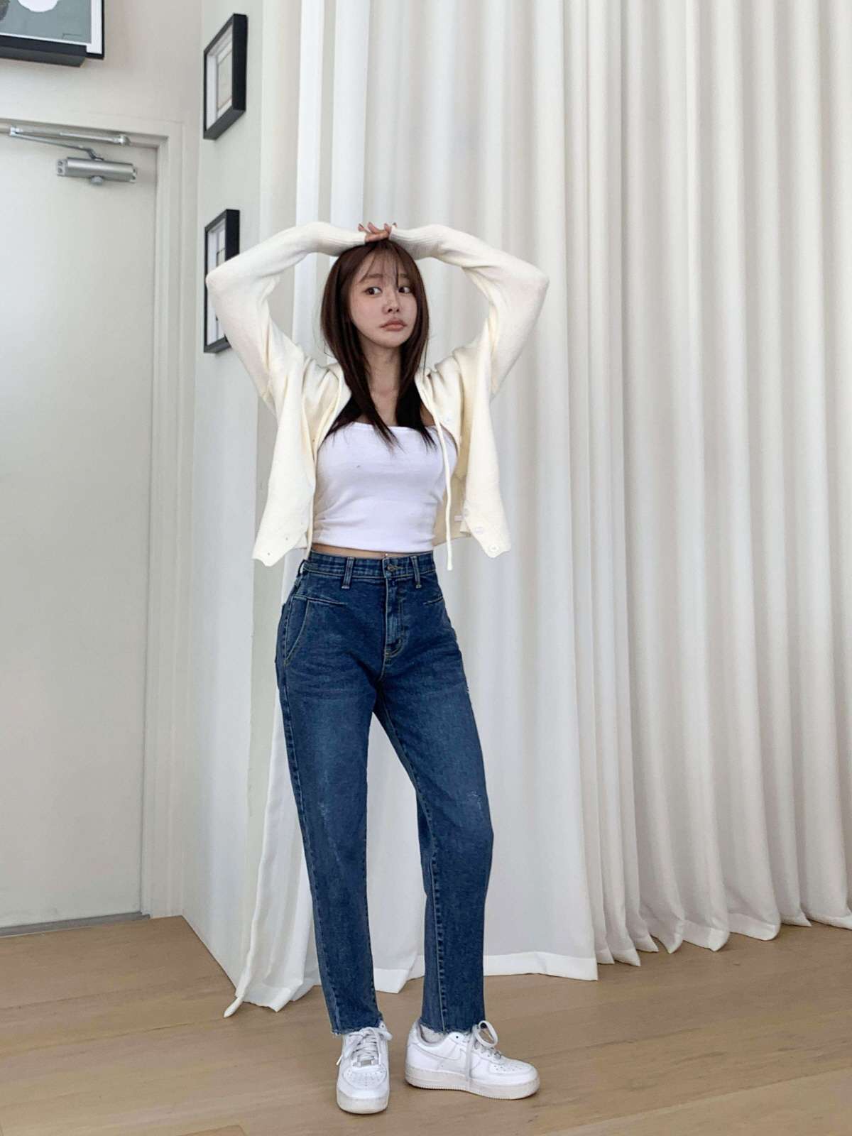 짧은 크롭 기장으로 다양한 하이웨스트 하의와