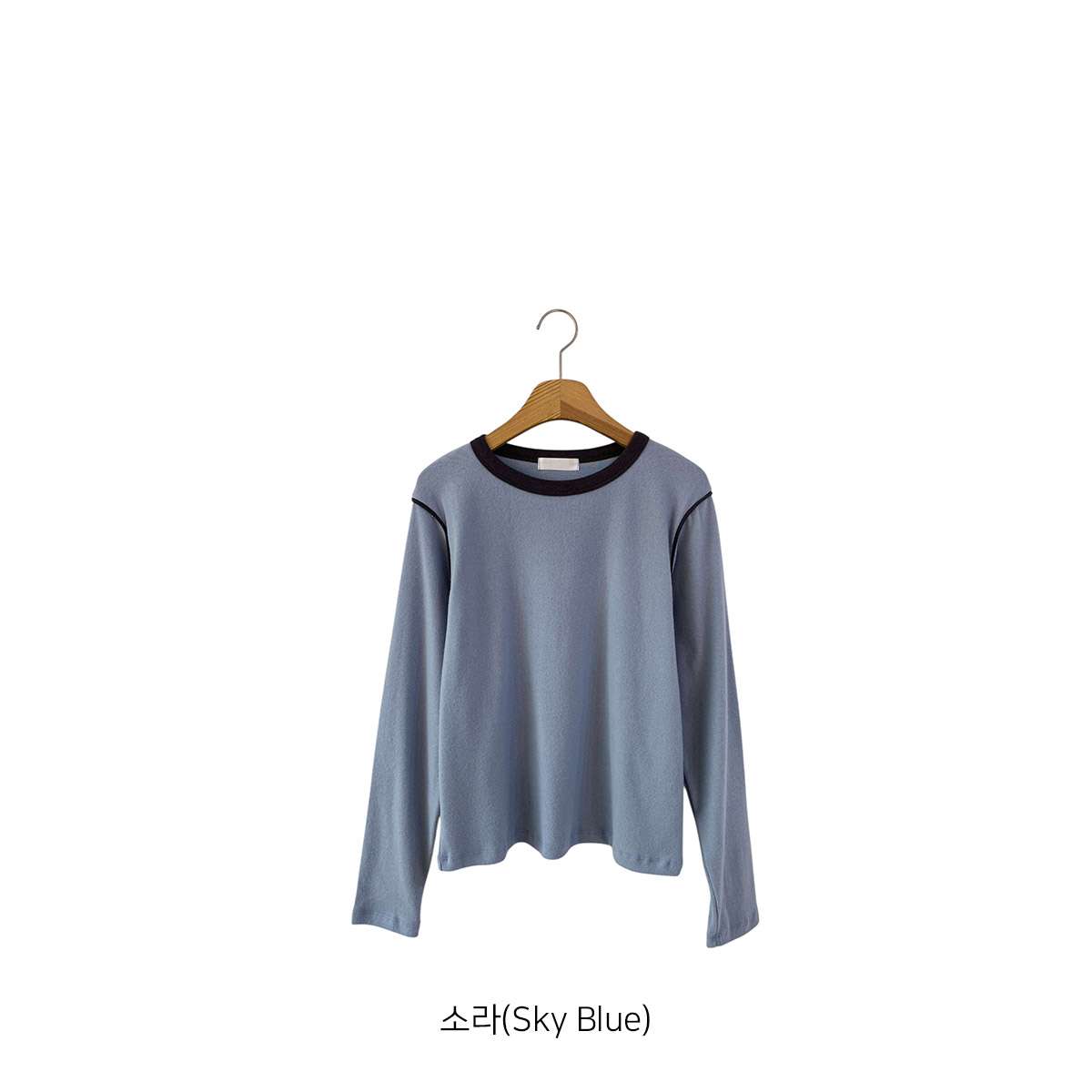 T17302K5B-하케이 모달 피치 기모 배색 기본 긴팔 티셔츠