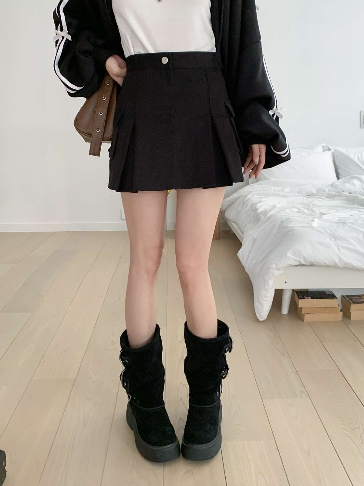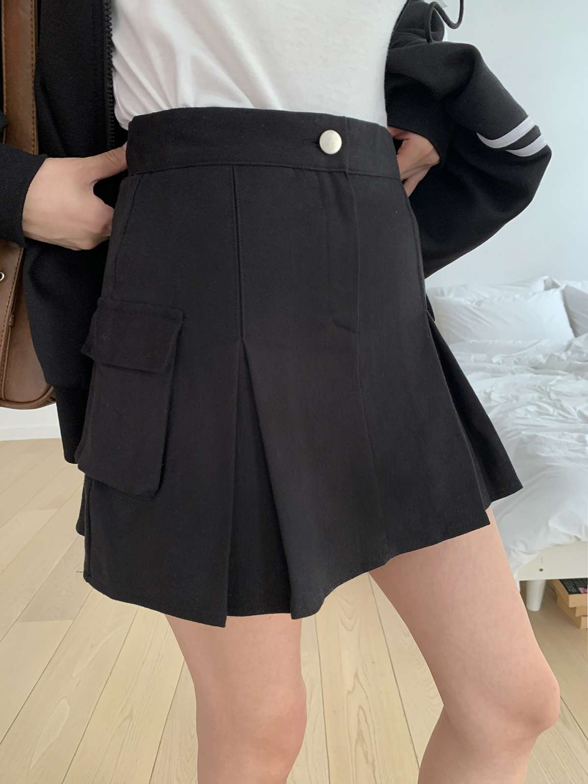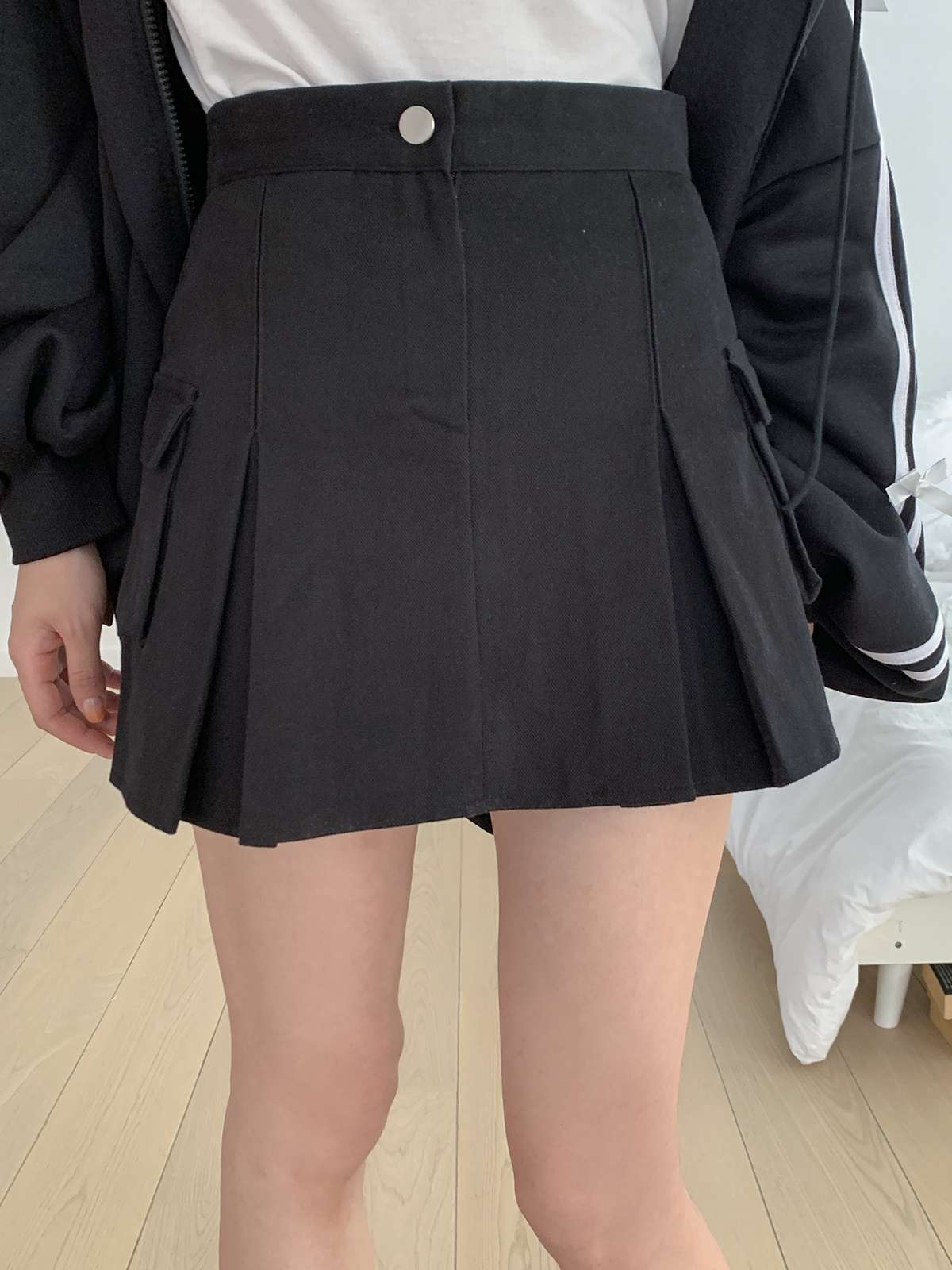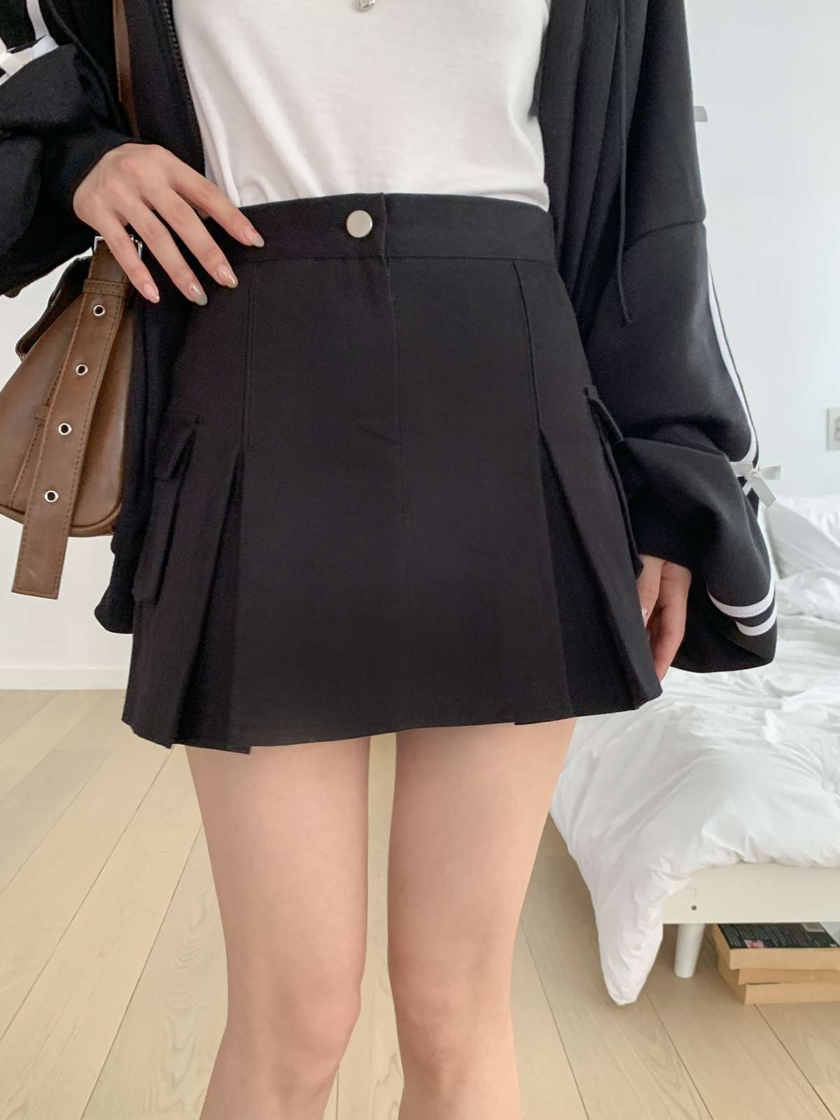 [ SK7529K5B-파케이 플리츠 카고 밴딩 미니 스커트 ]