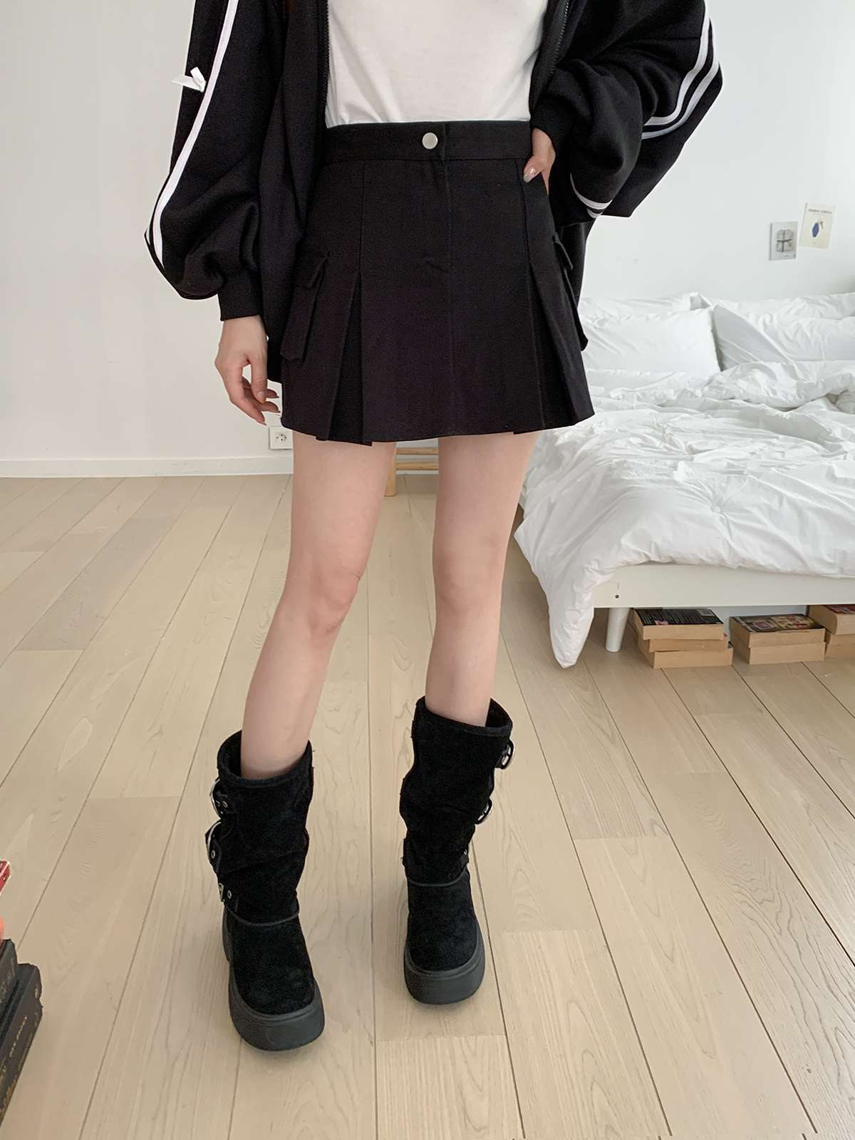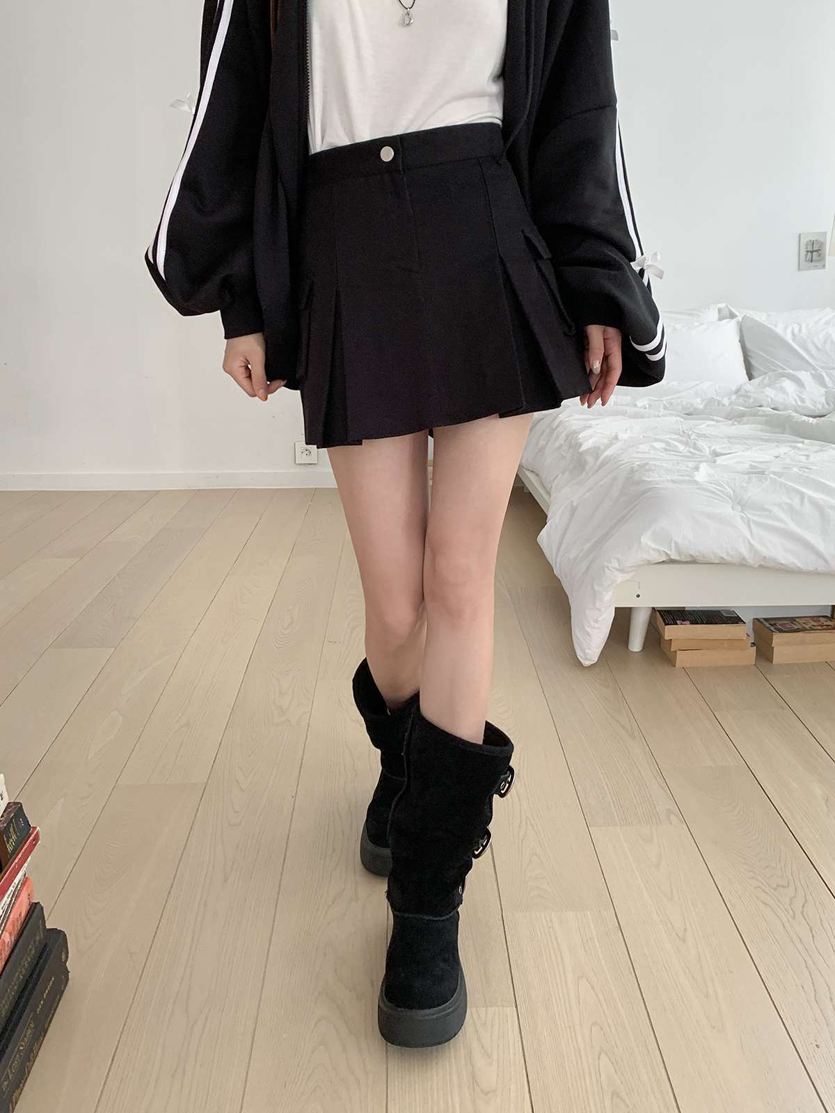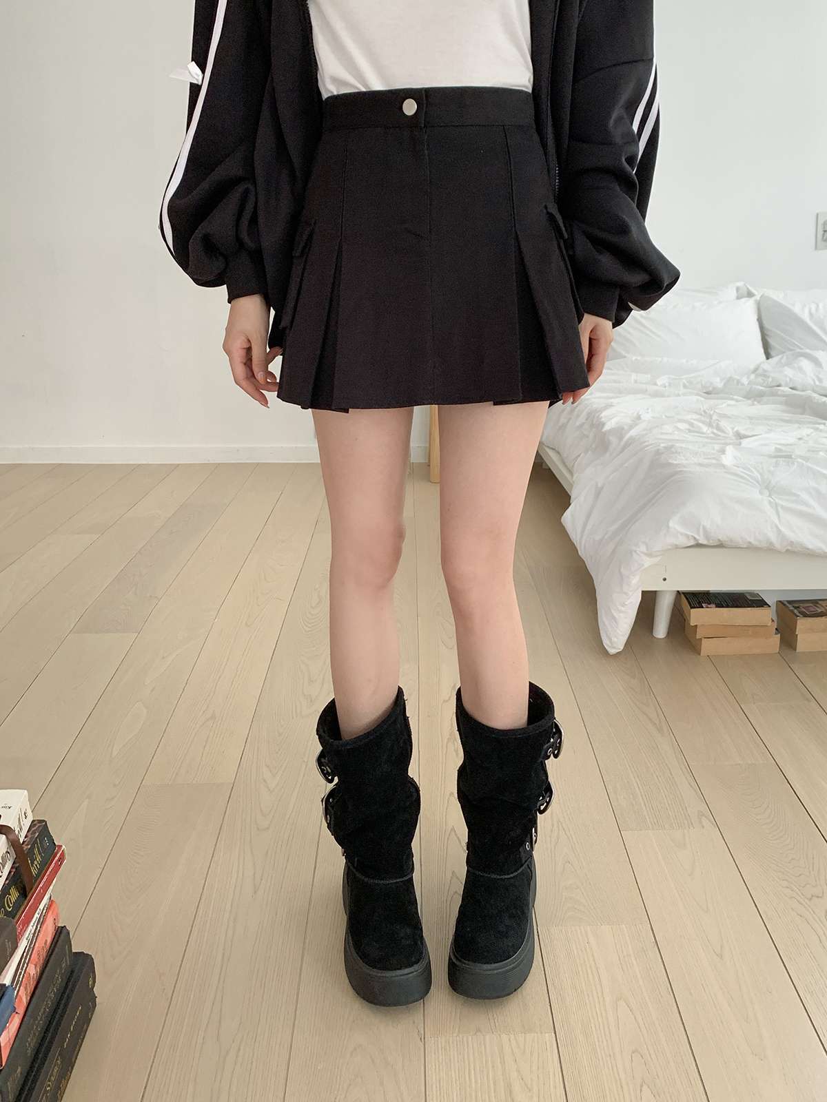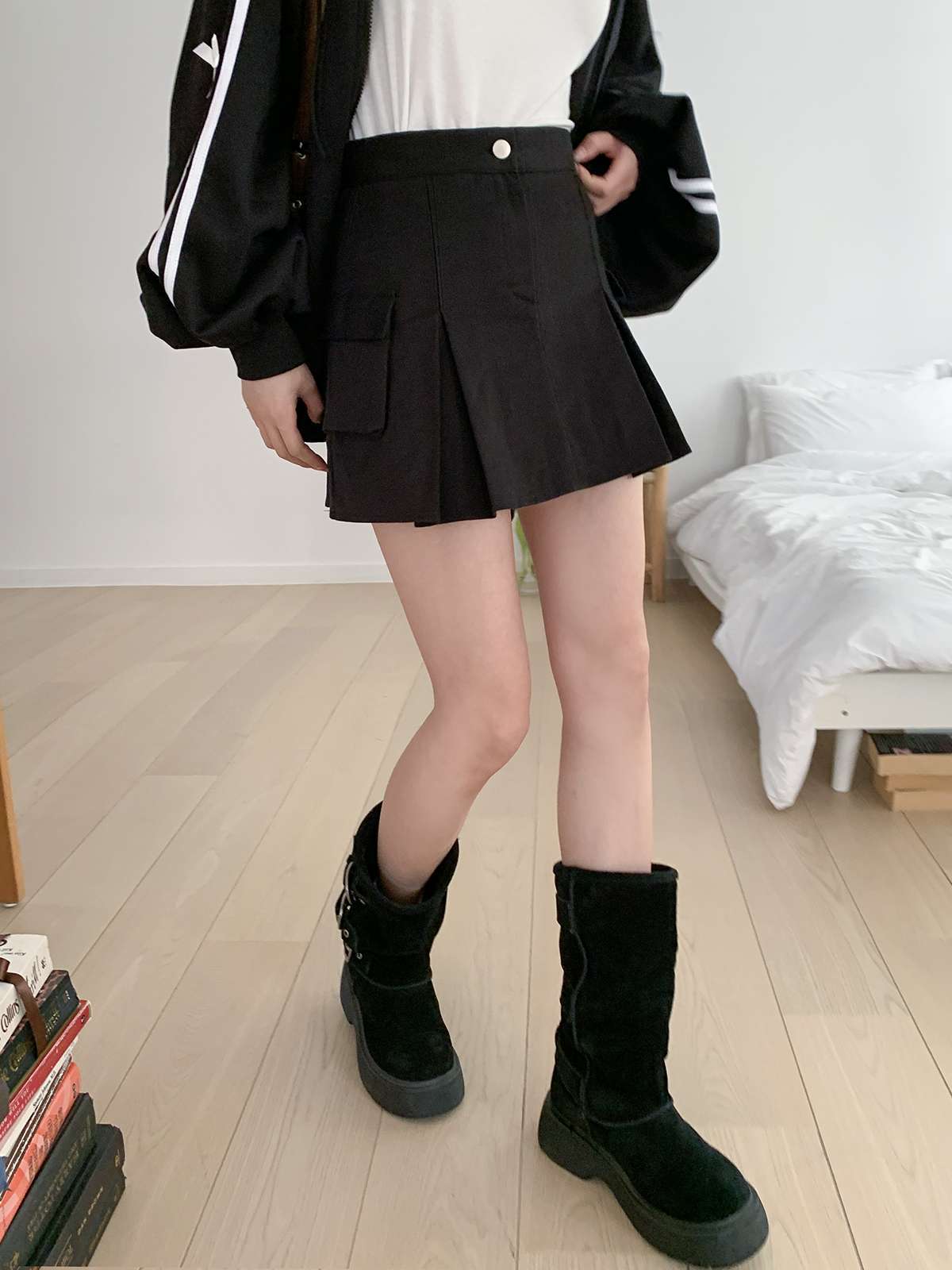 [ SK7529K5B-파케이 플리츠 카고 밴딩 미니 스커트 ]