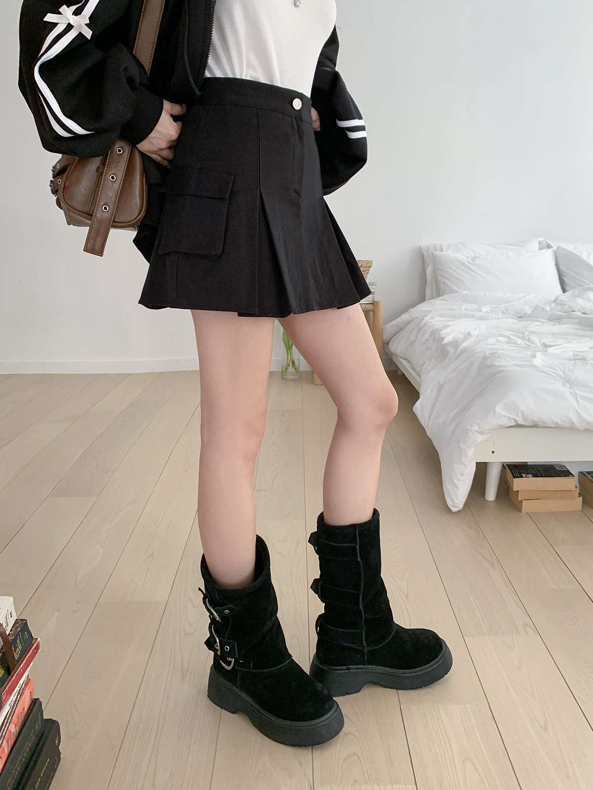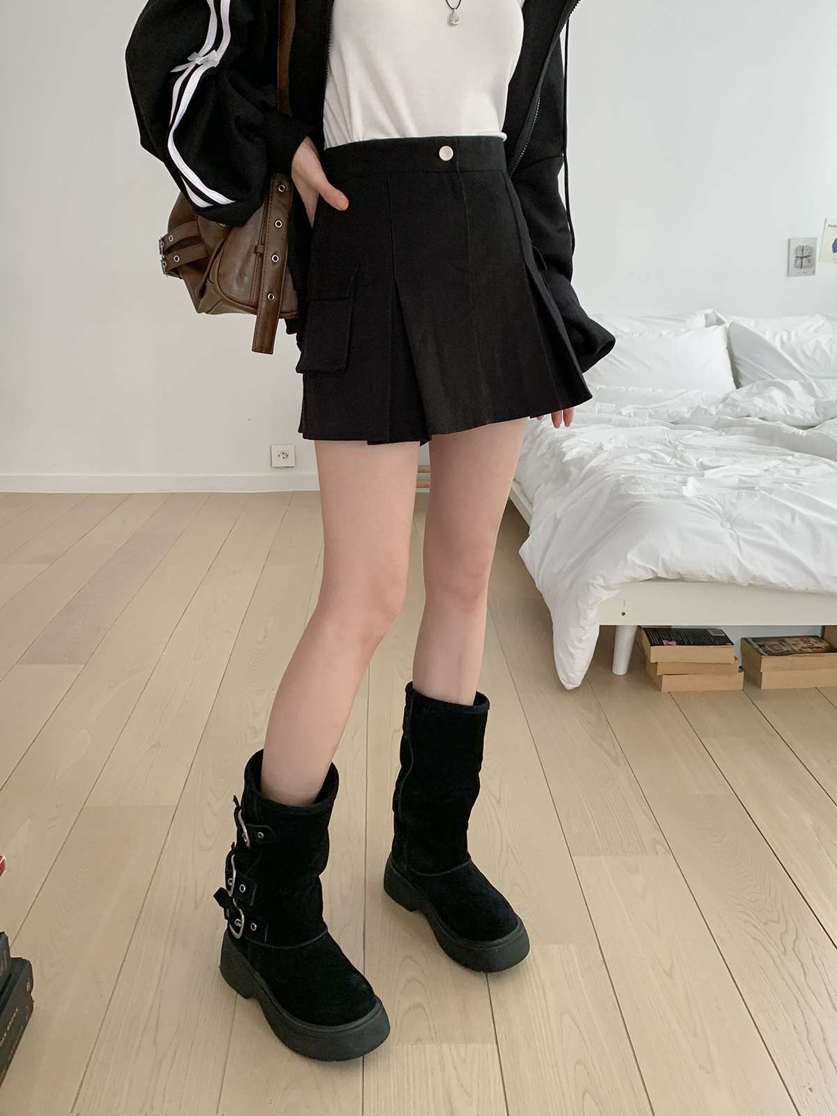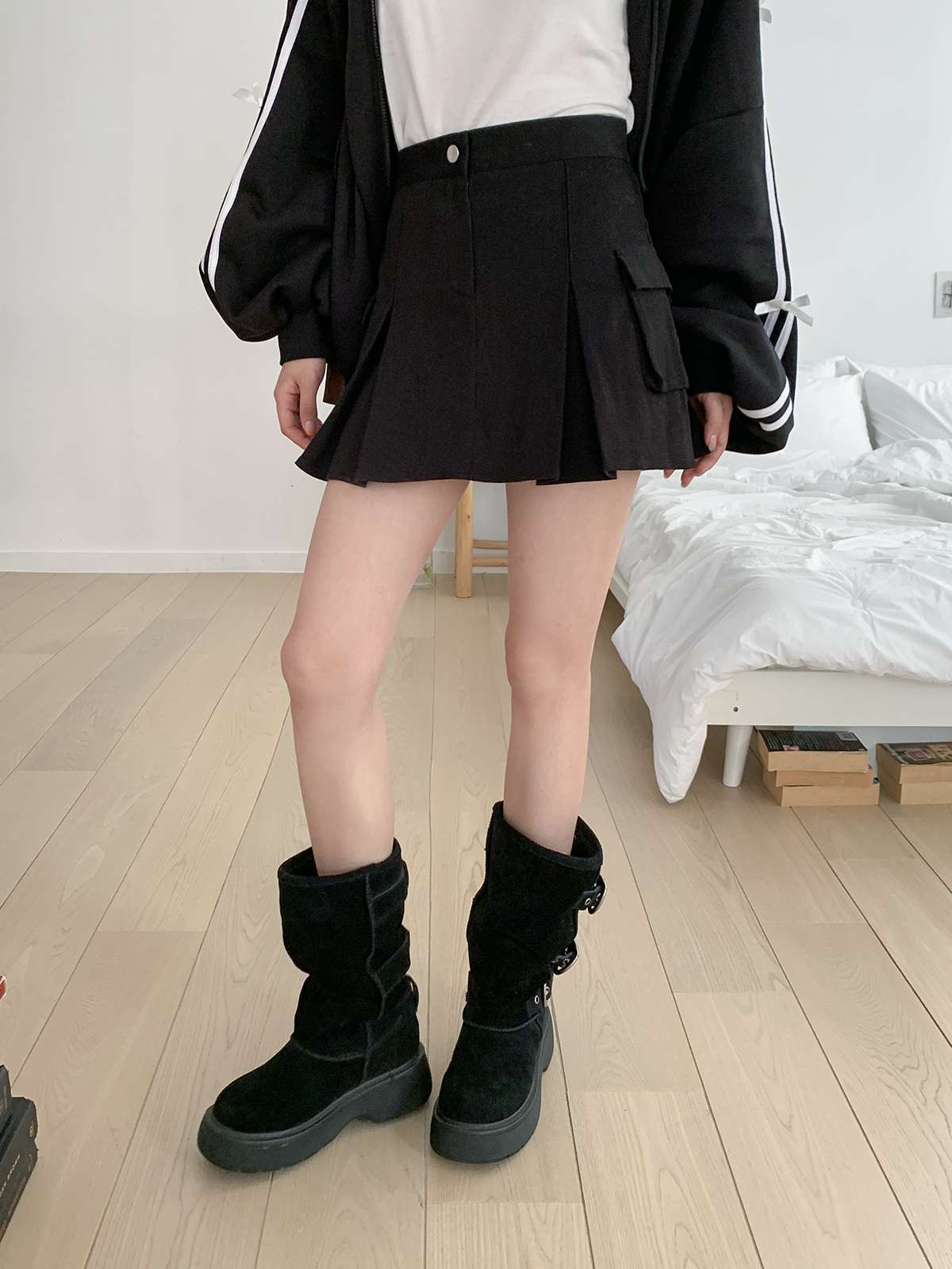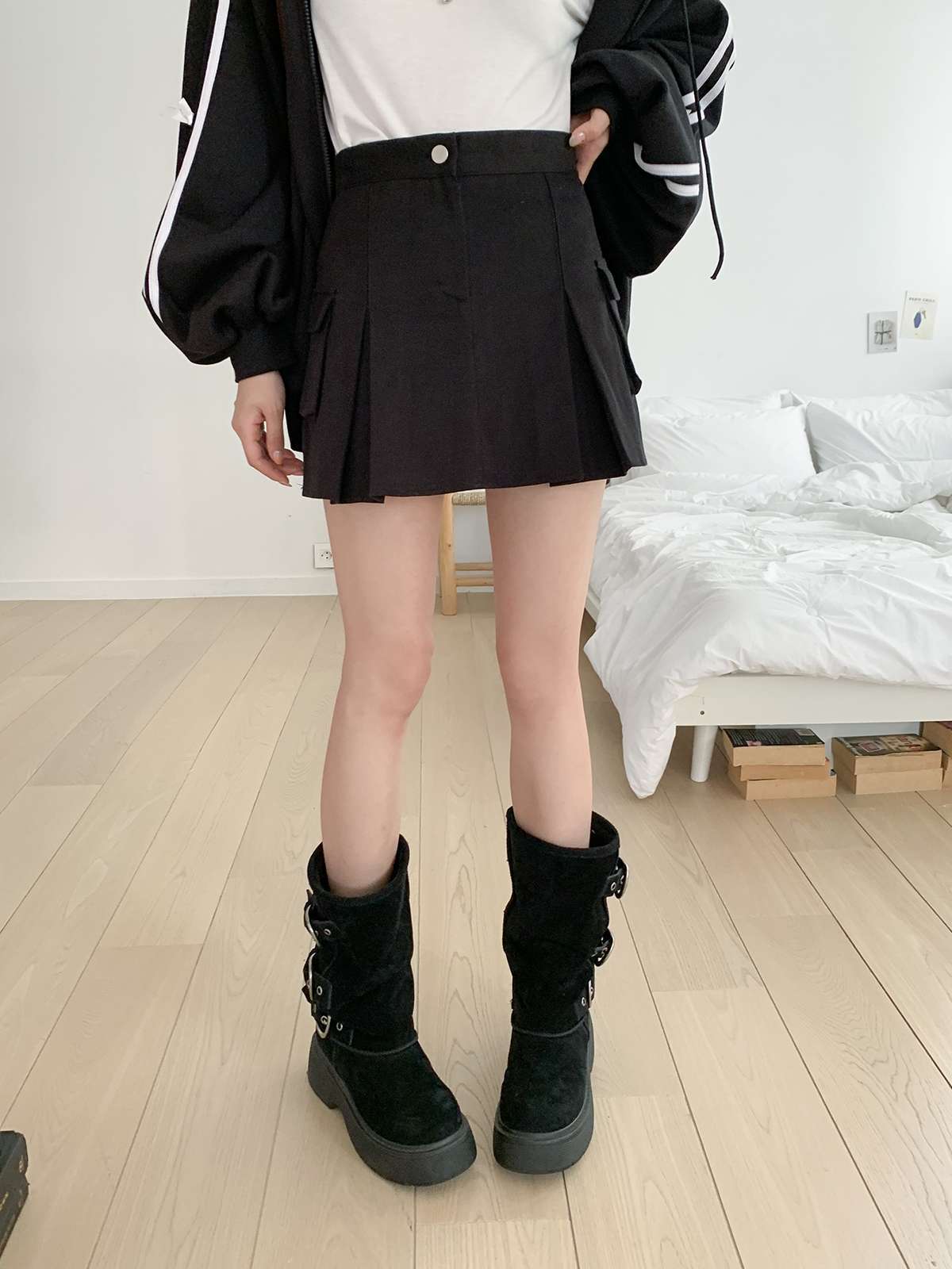[ SK7529K5B-파케이 플리츠 카고 밴딩 미니 스커트 ]