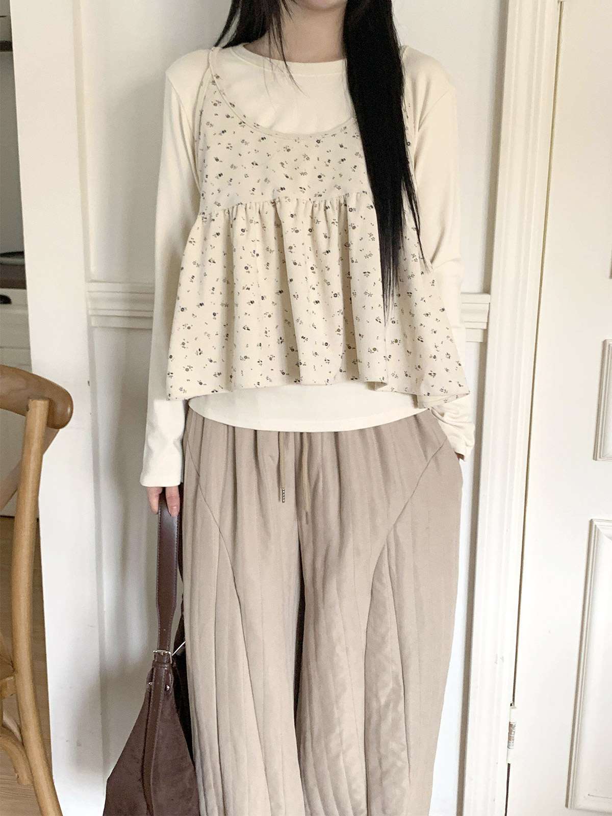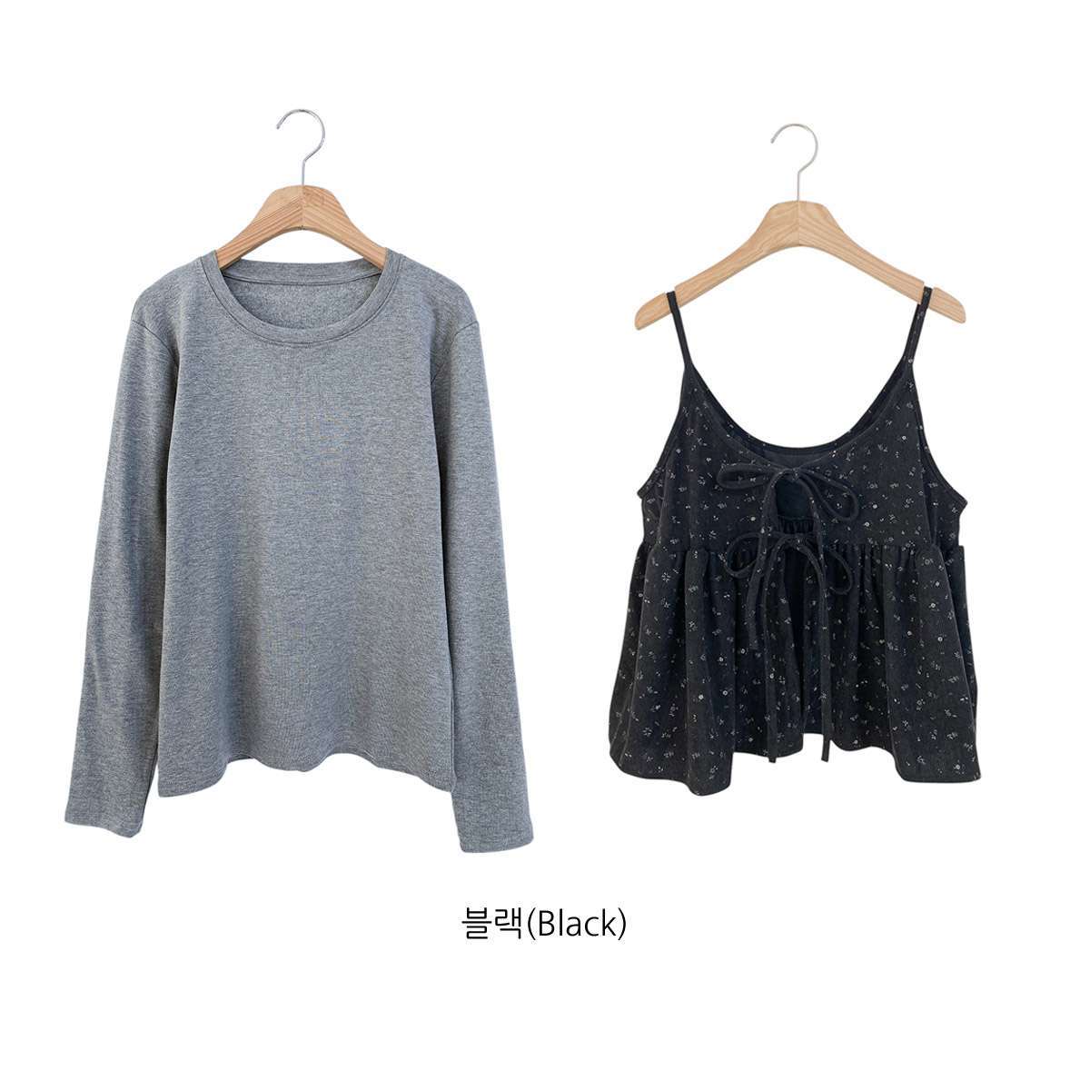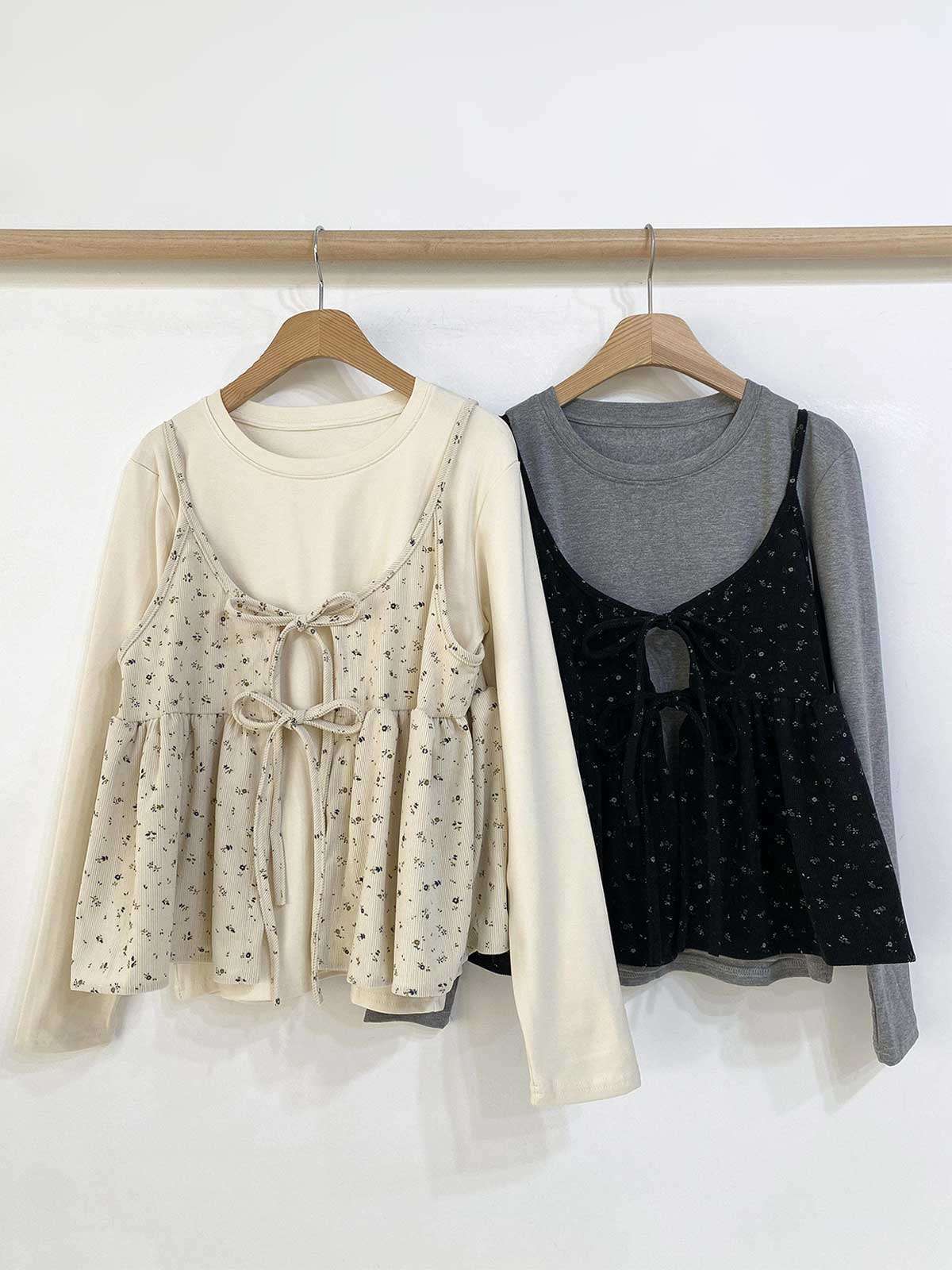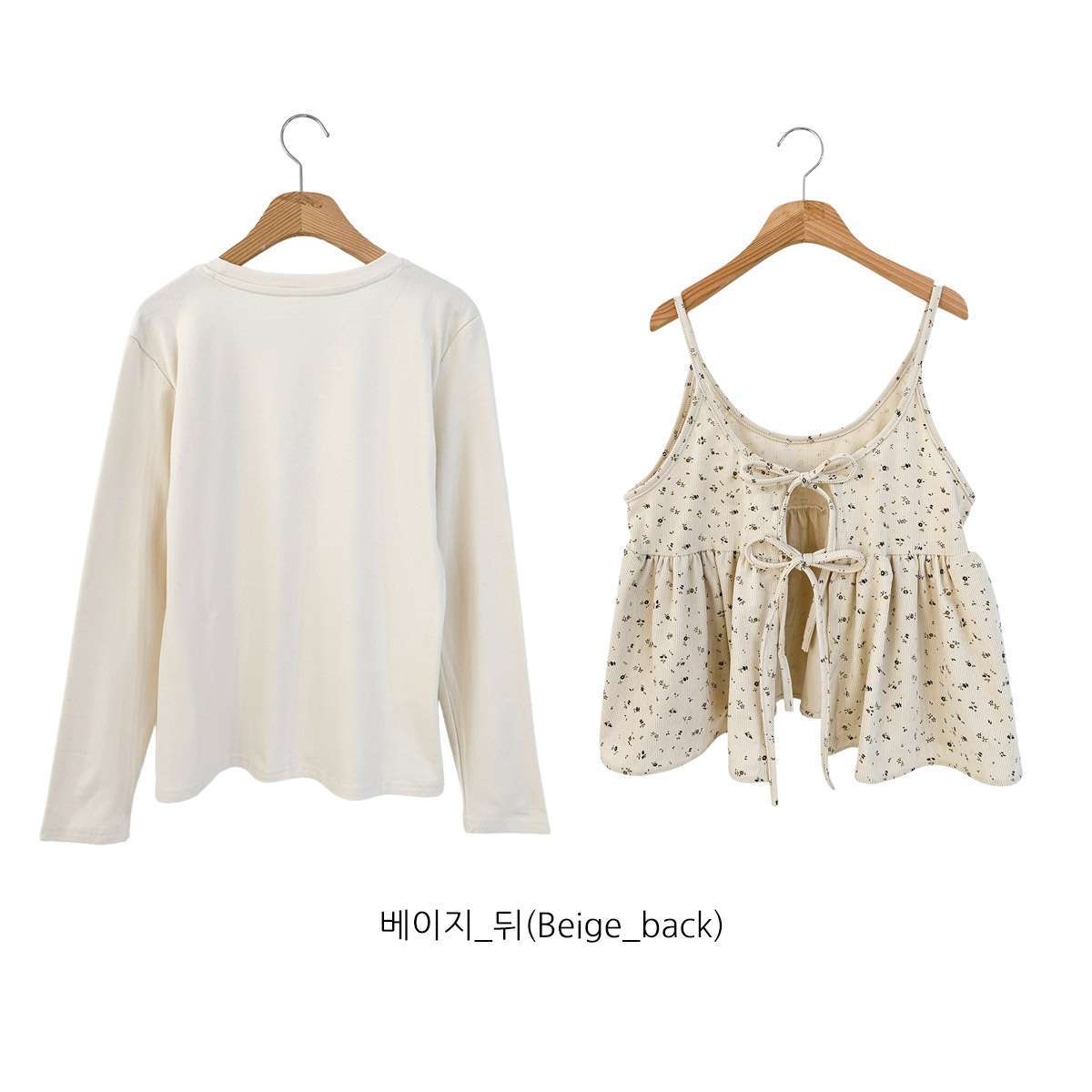 꽃무늬 패턴의 뷔스티에와 기본 긴팔 티셔츠 세트