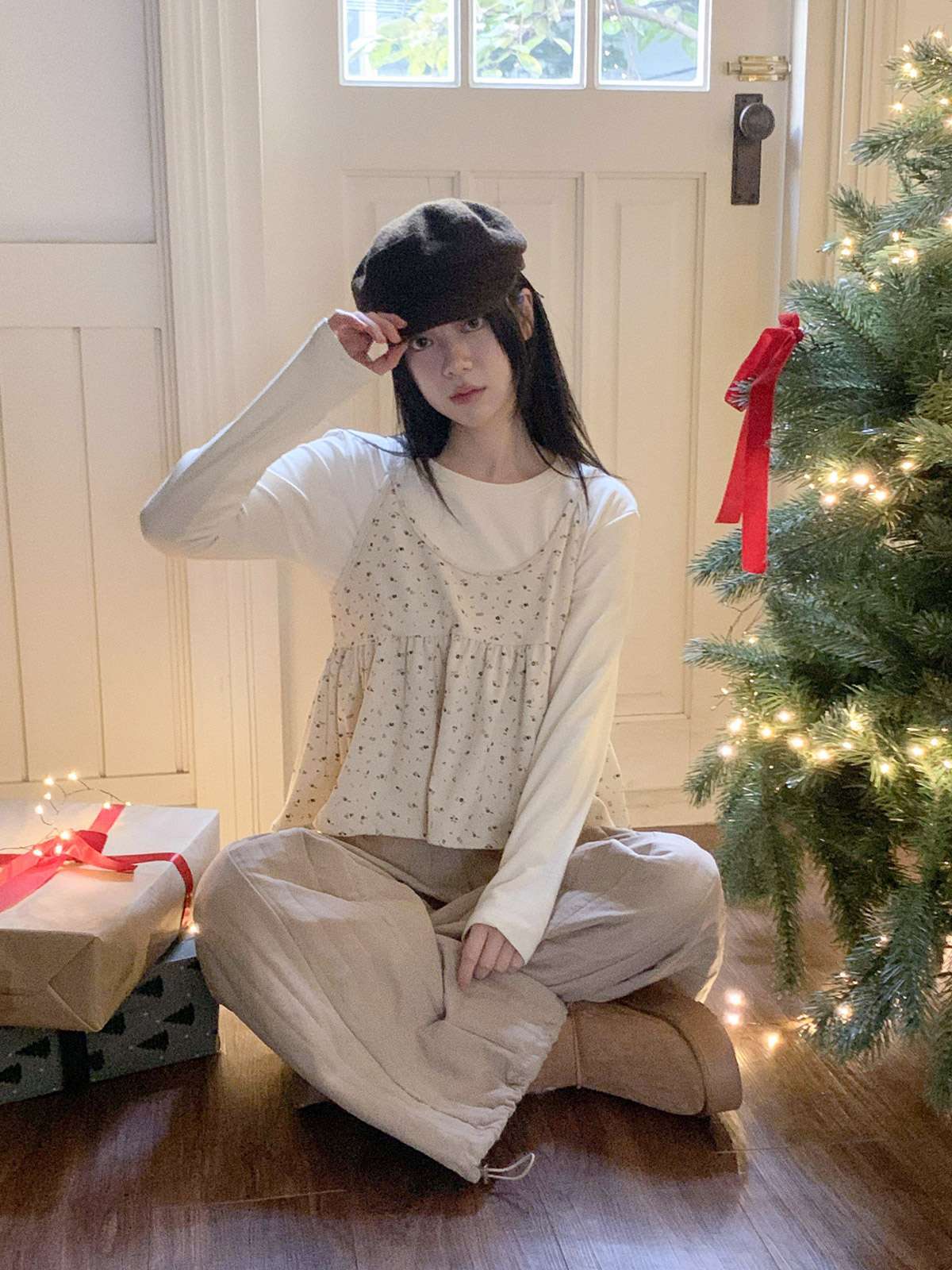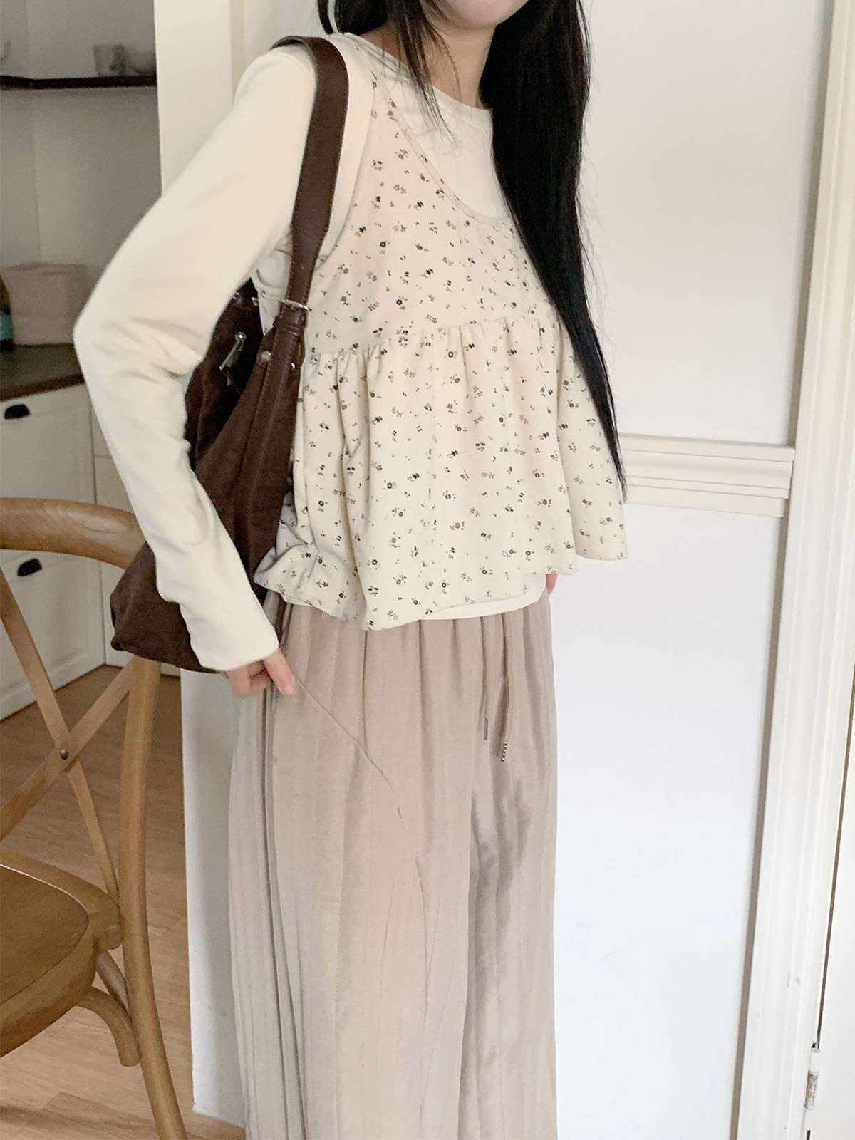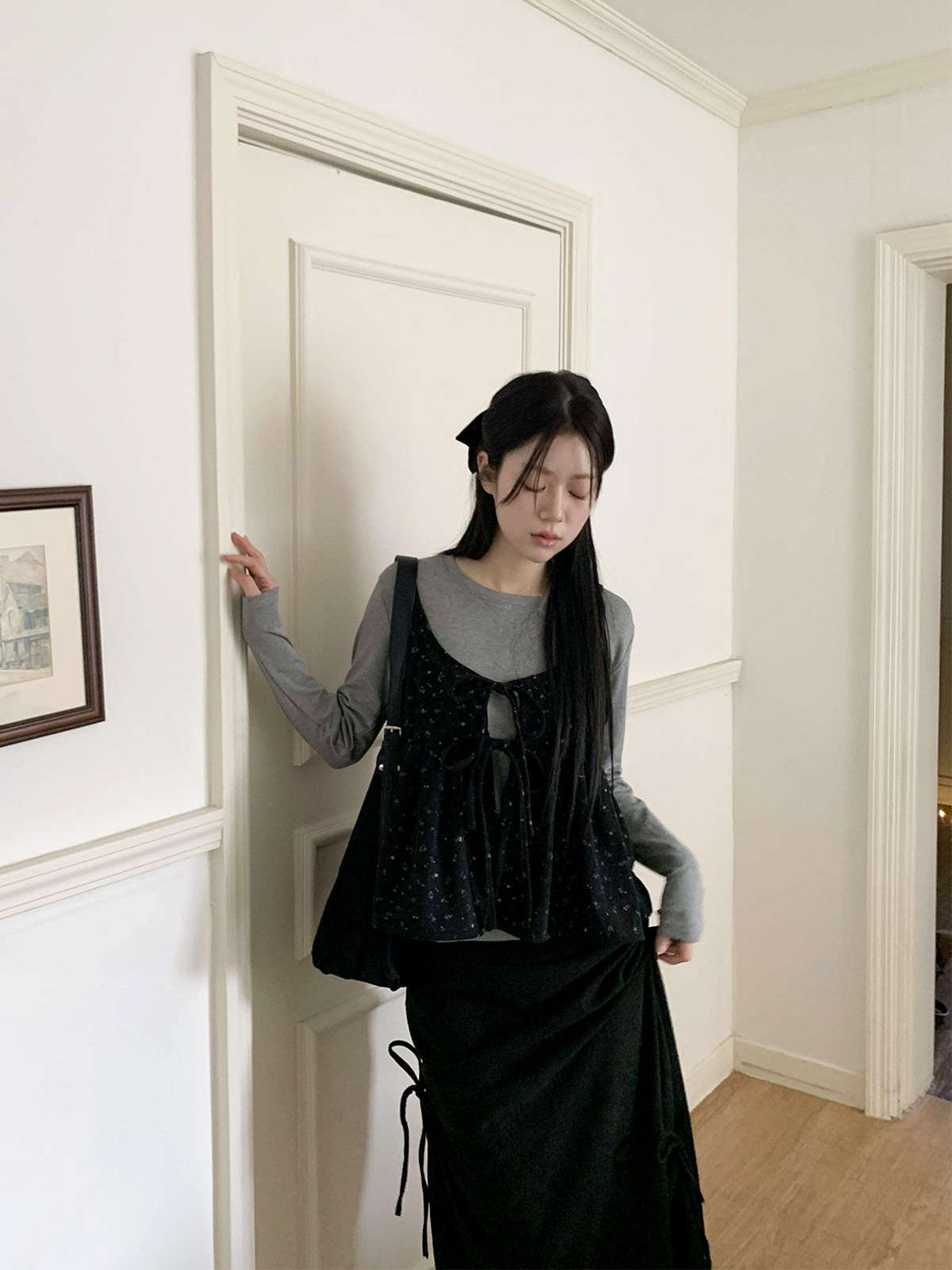 꽃무늬 패턴의 뷔스티에와 기본 긴팔 티셔츠 세트