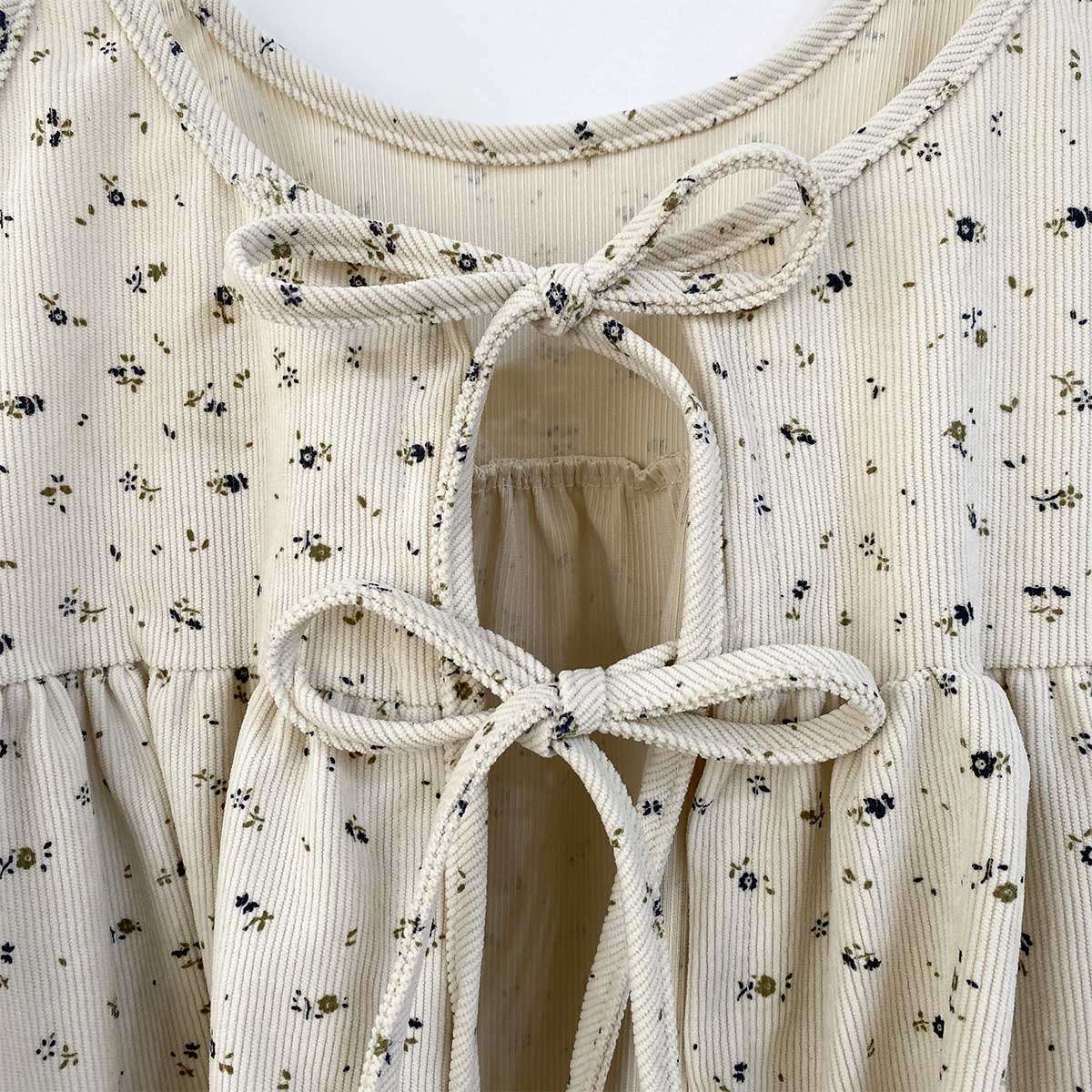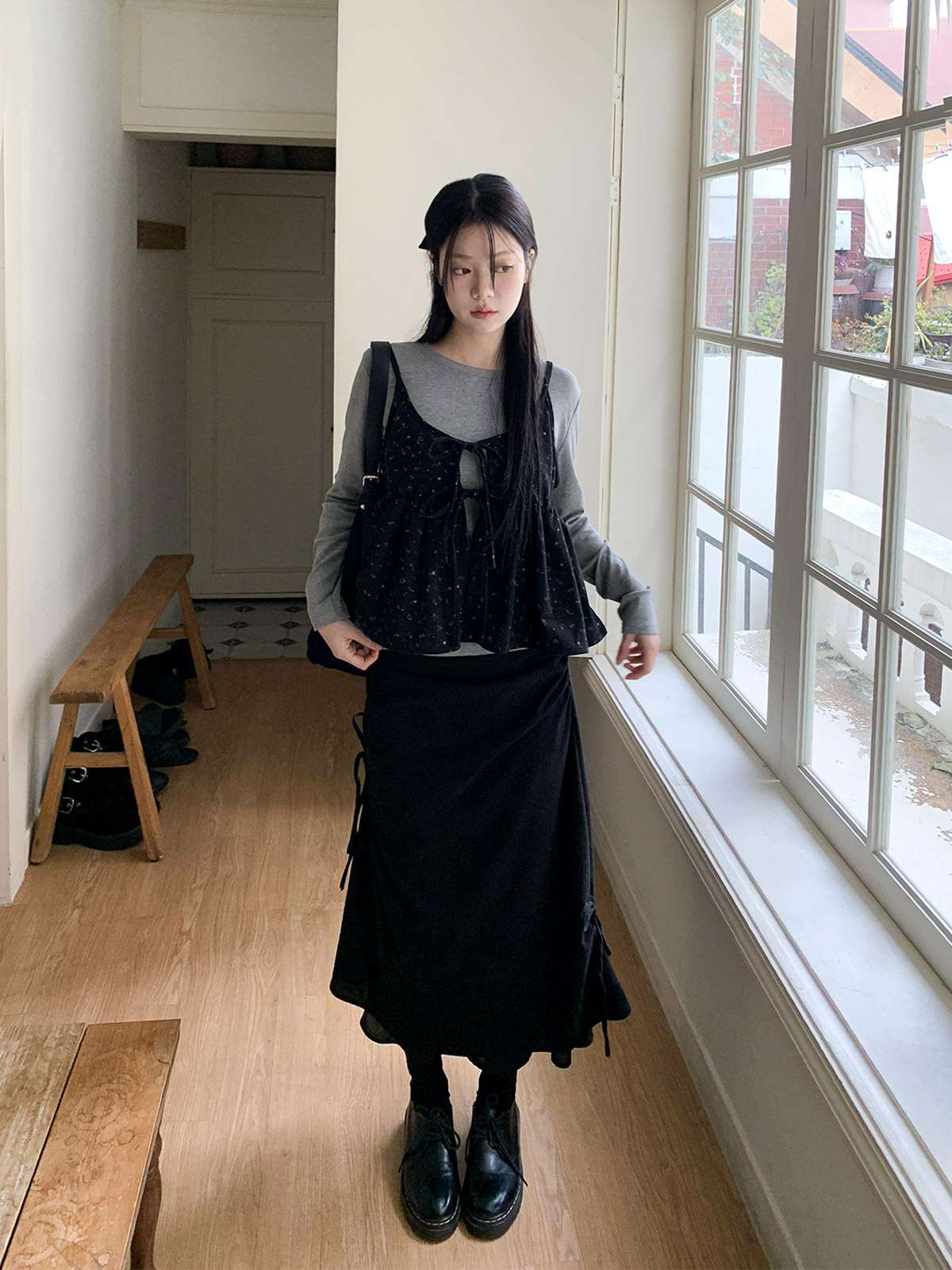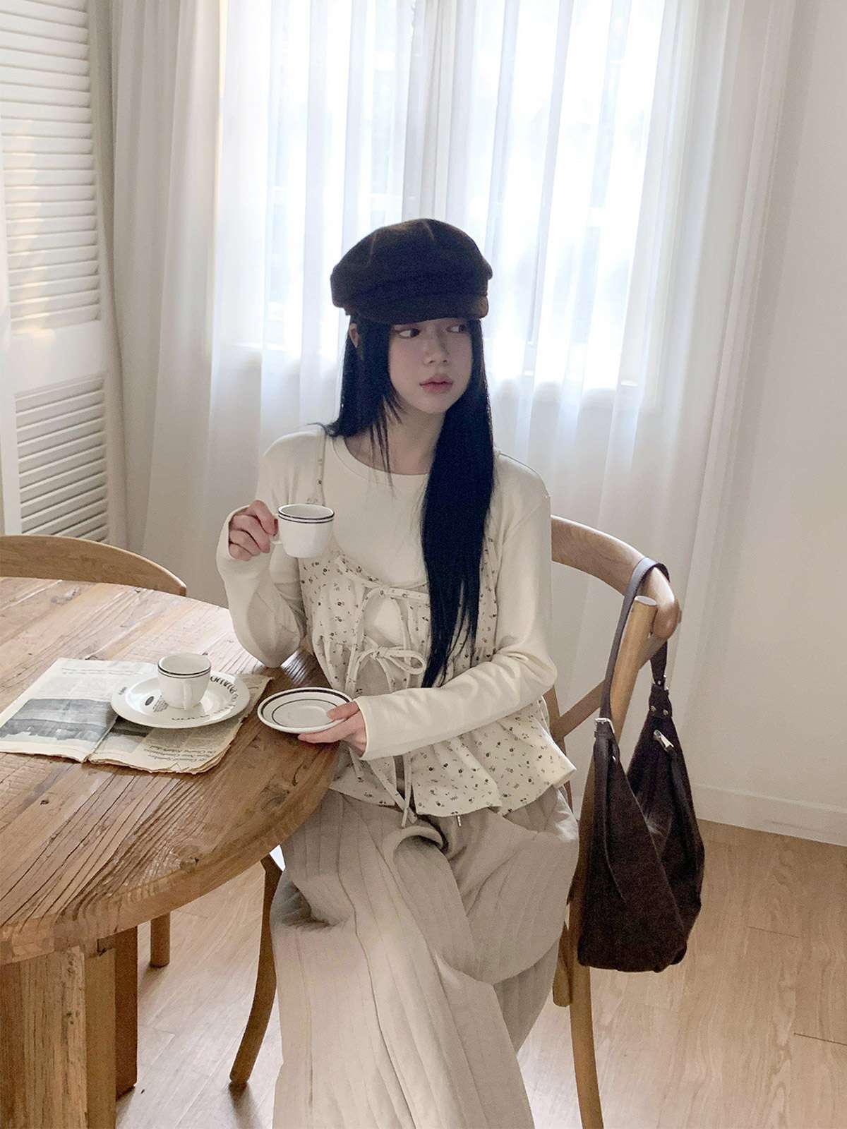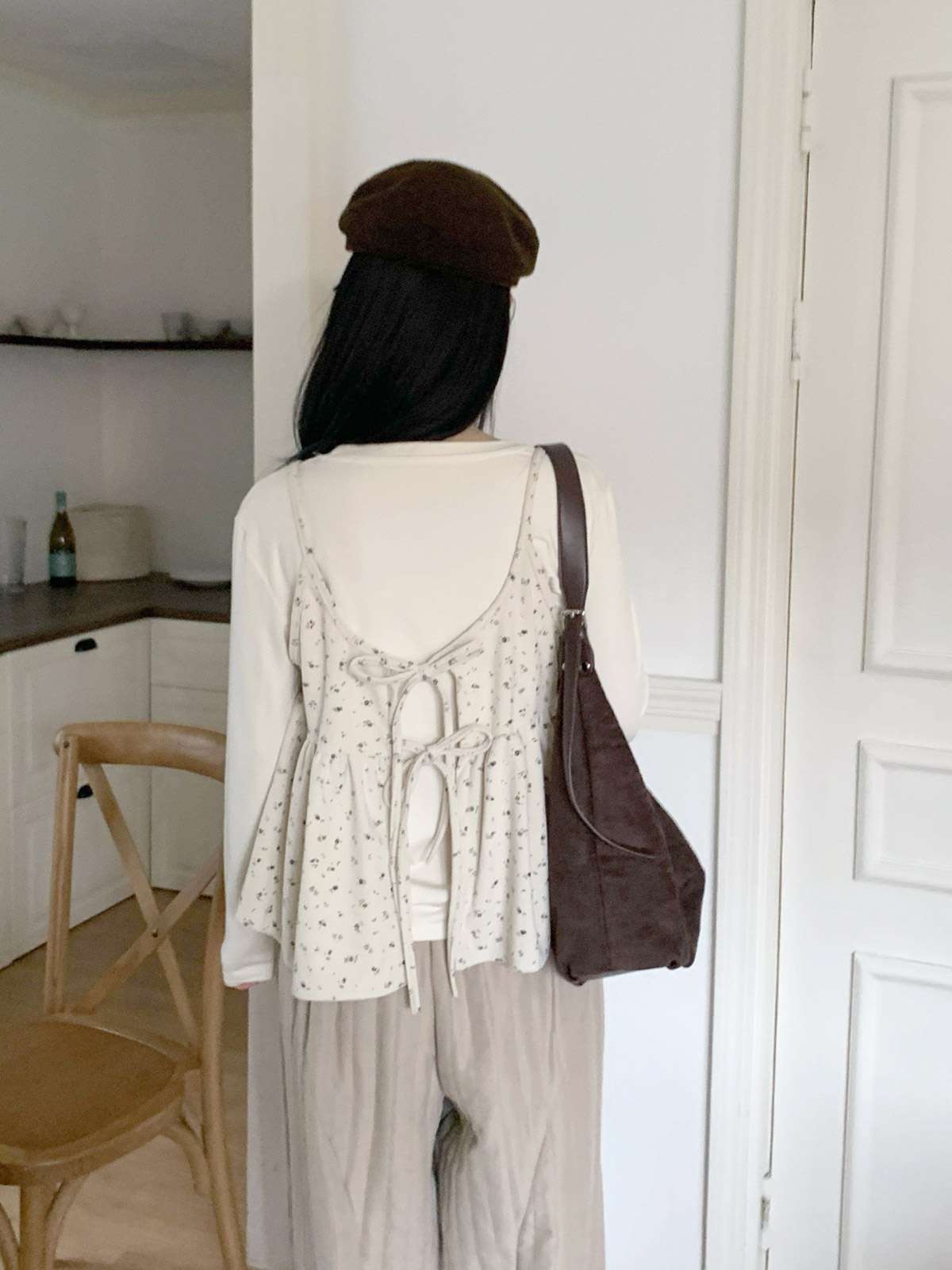 꽃무늬 패턴의 뷔스티에와 기본 긴팔 티셔츠 세트