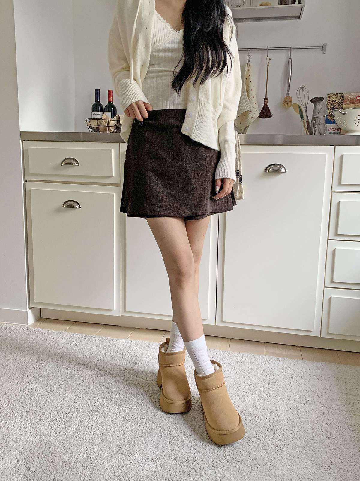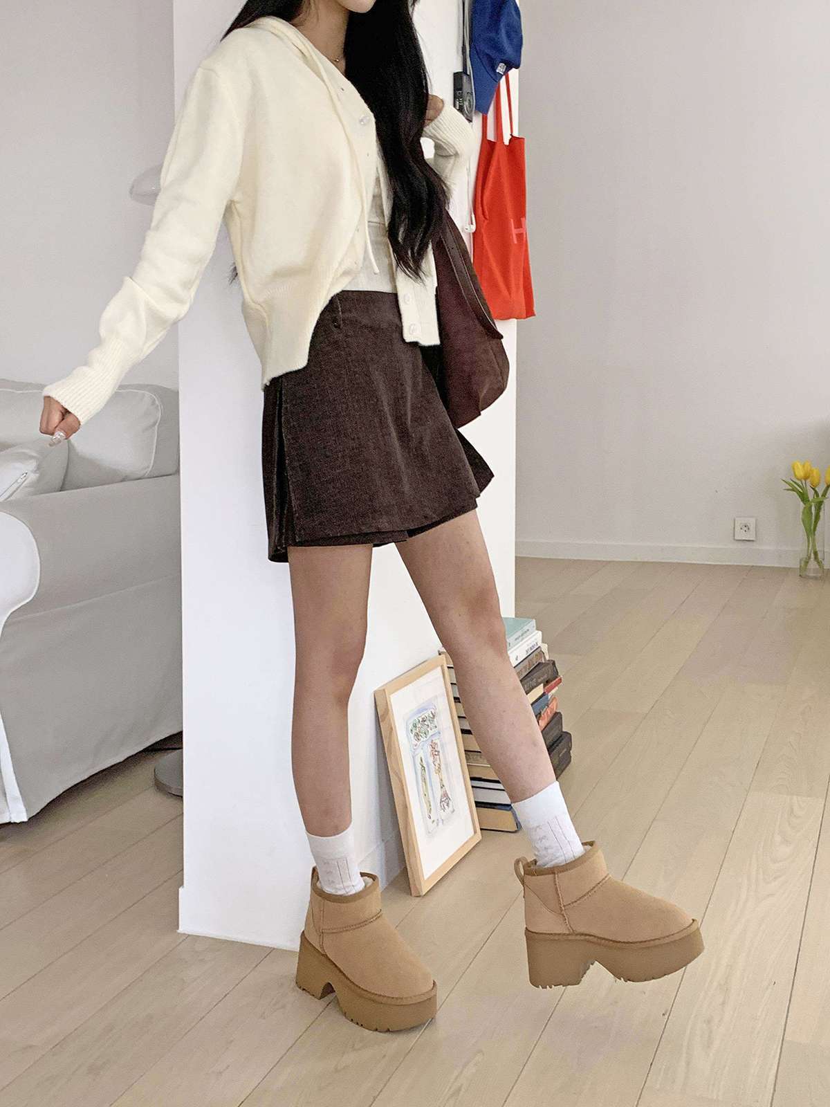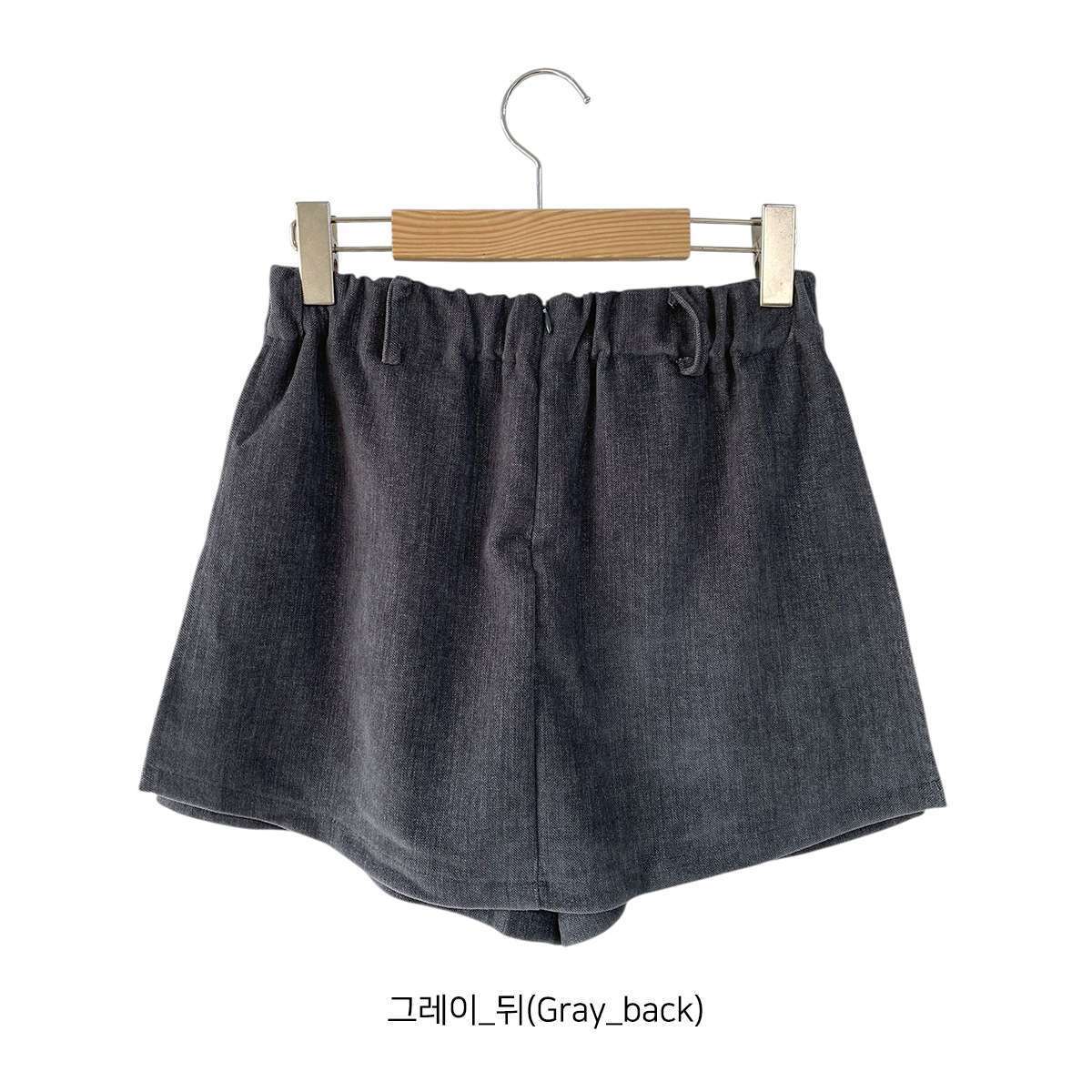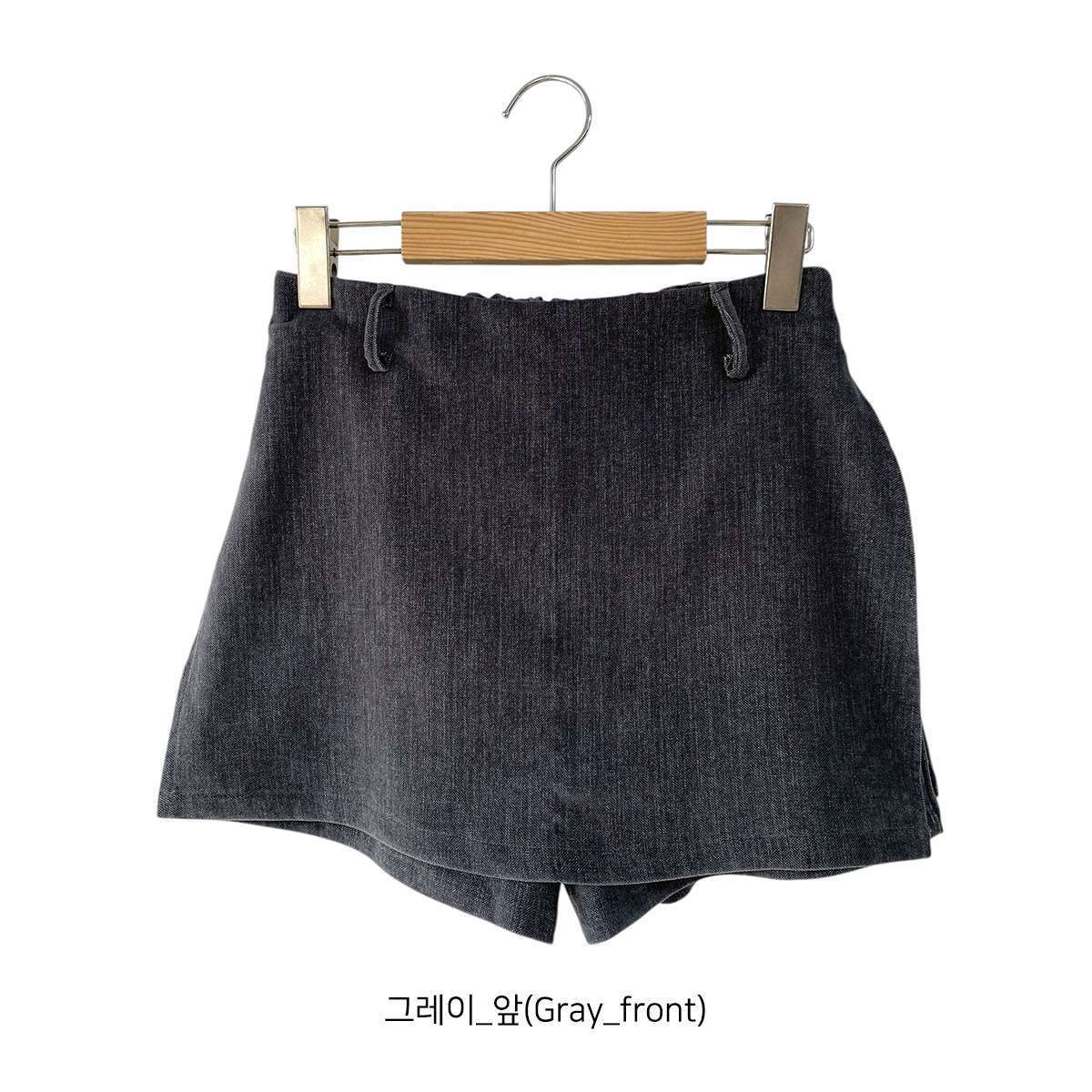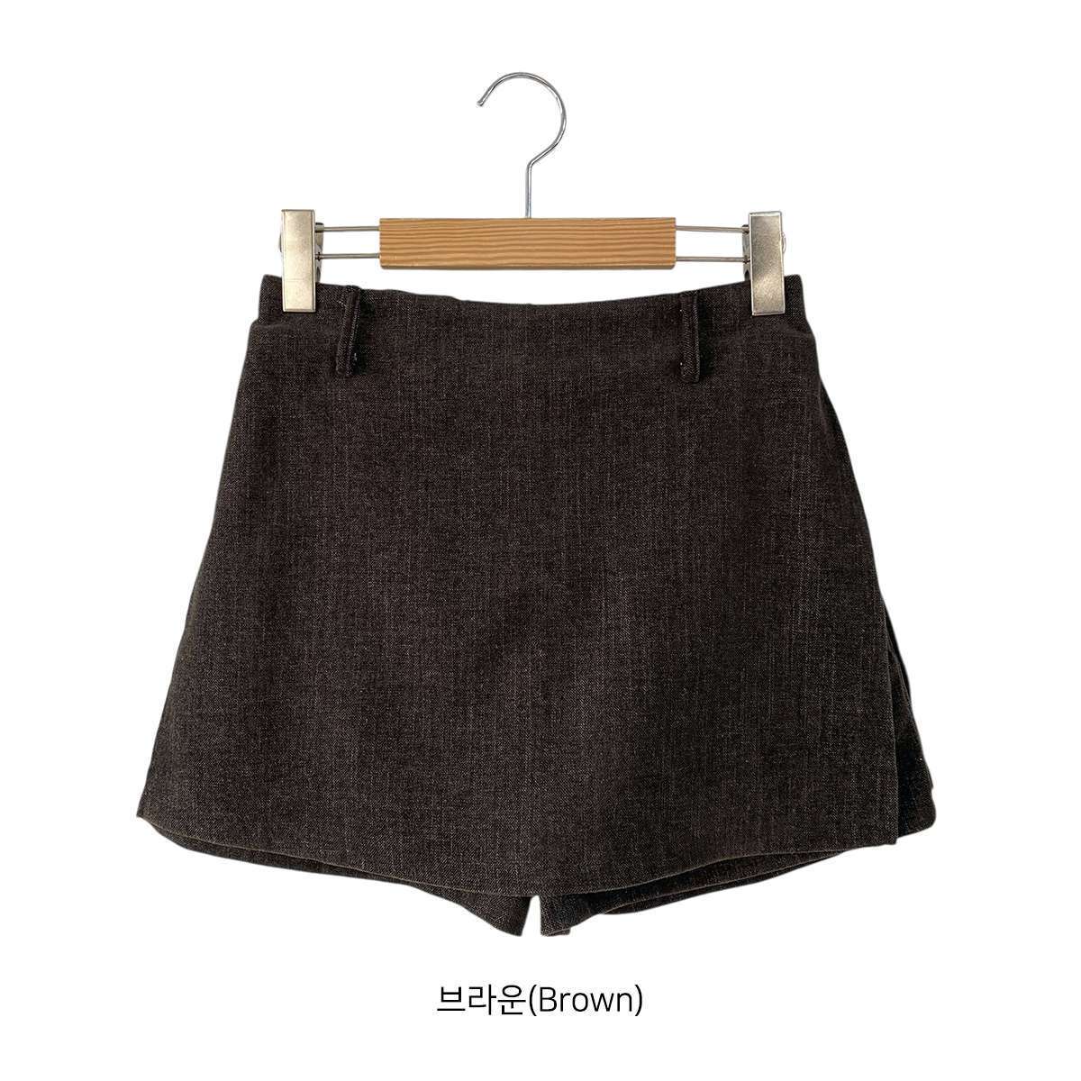 스웨이드 벨벳 느낌의 소재로 제작되어 따뜻하고 포근한 미니 랩 치마바지