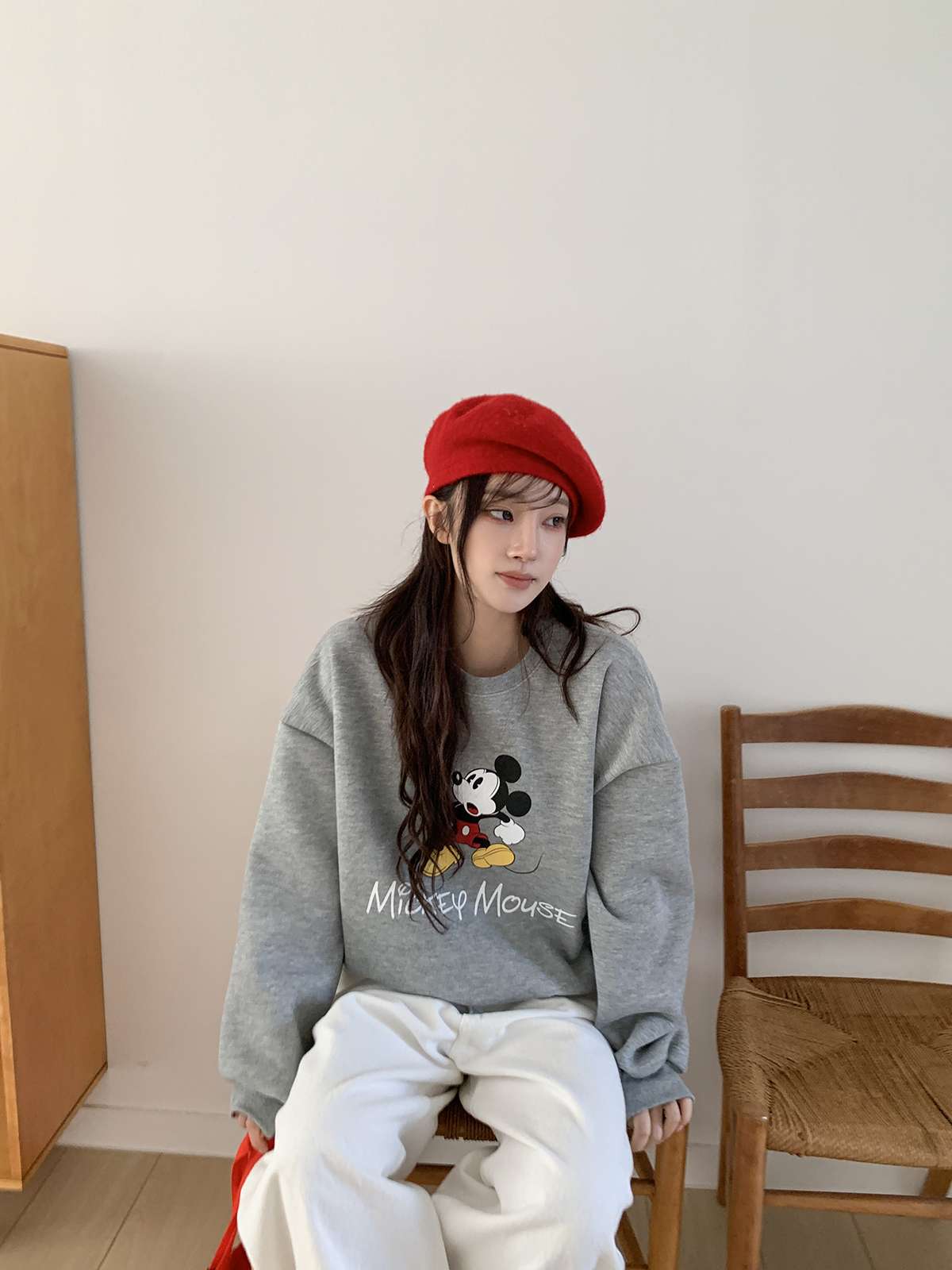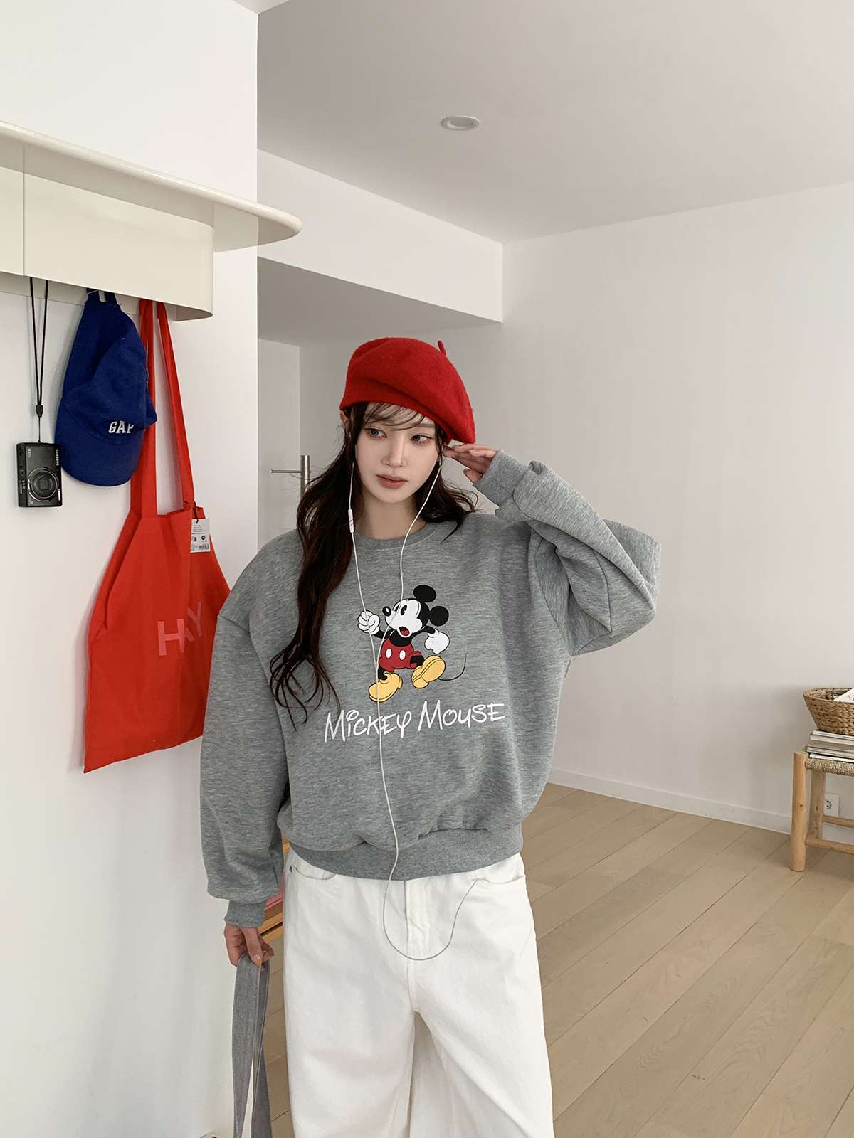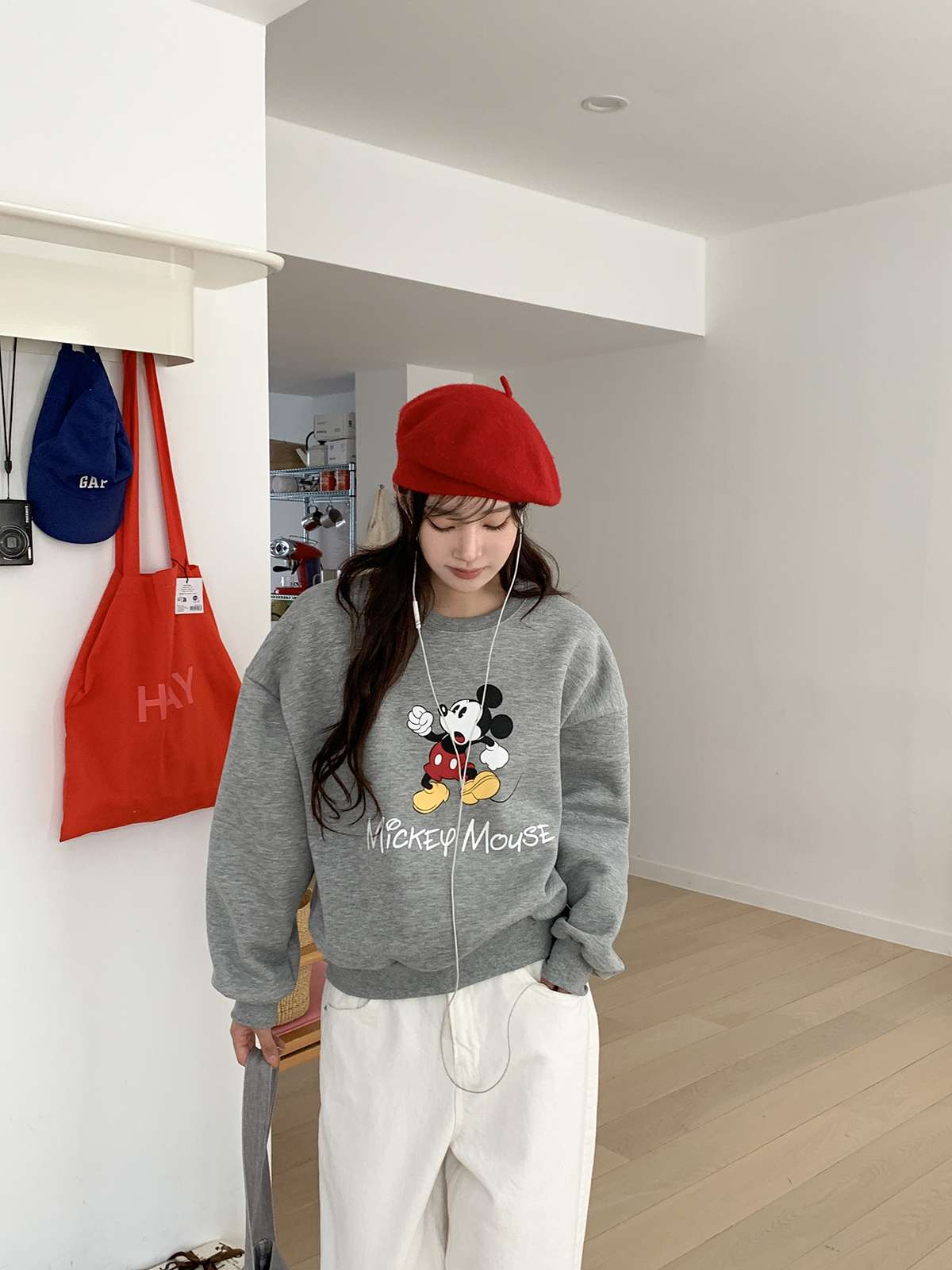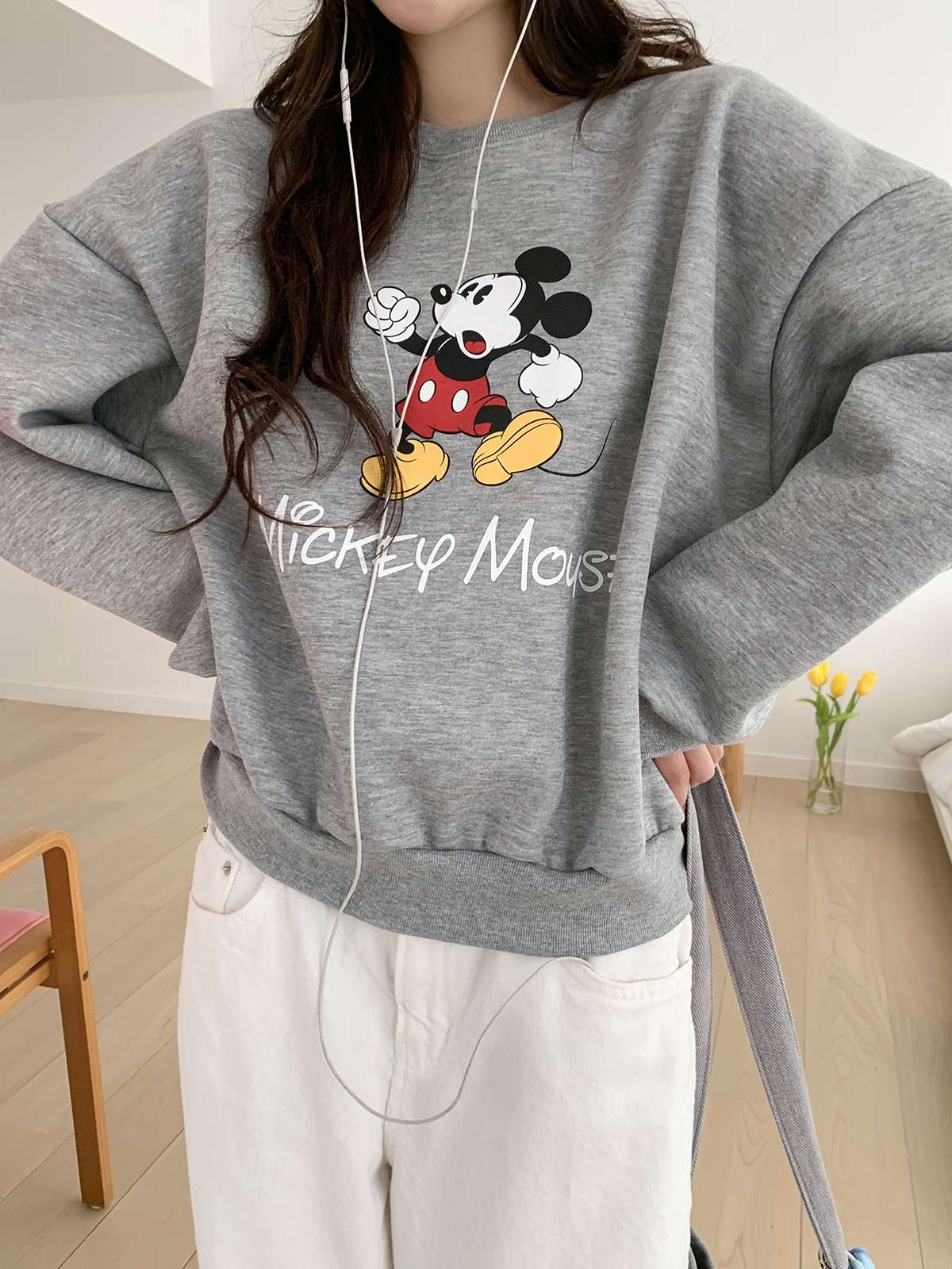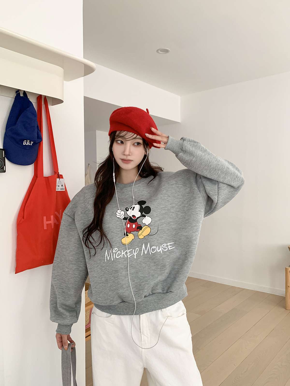 귀여운 미키마우스 프린팅이 더해져 캐주얼한 무드를 연출하는 맨투맨