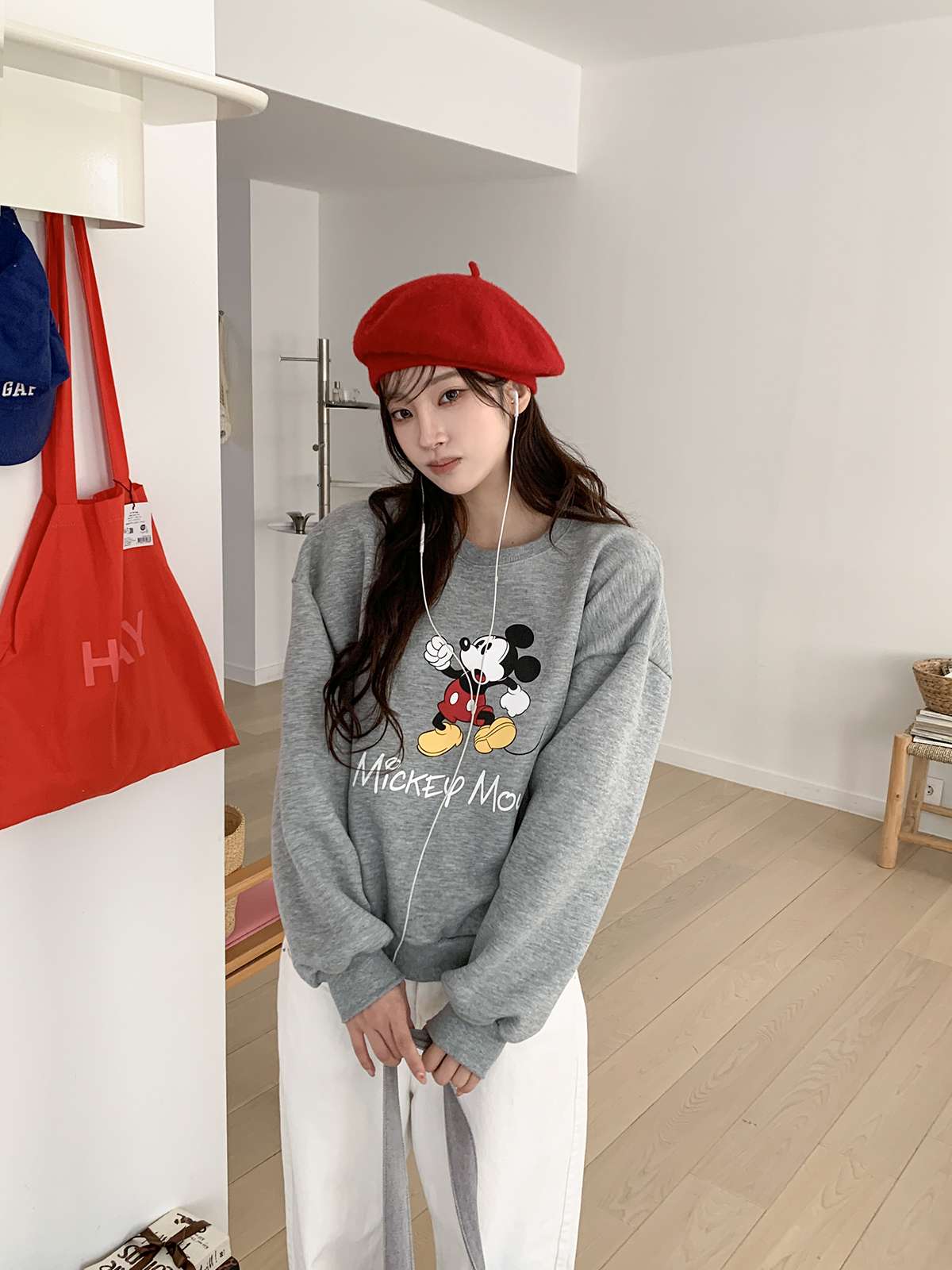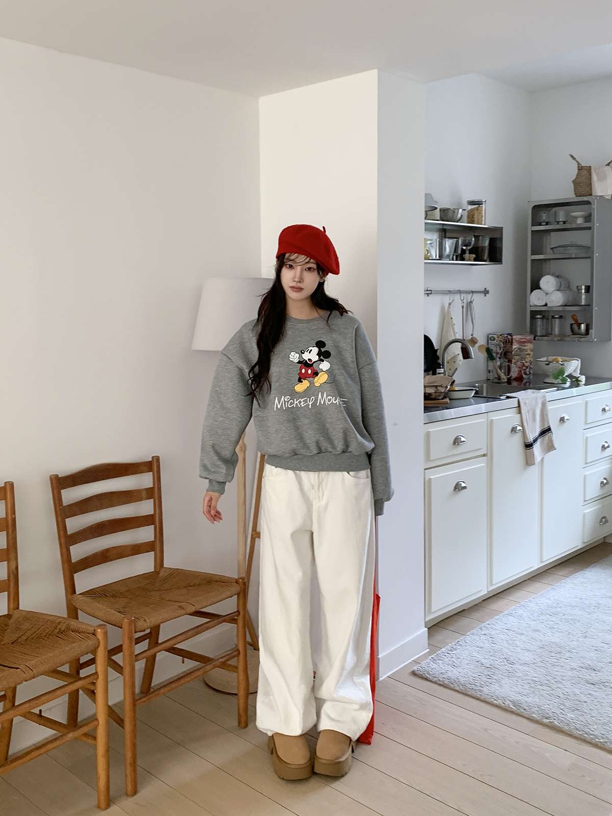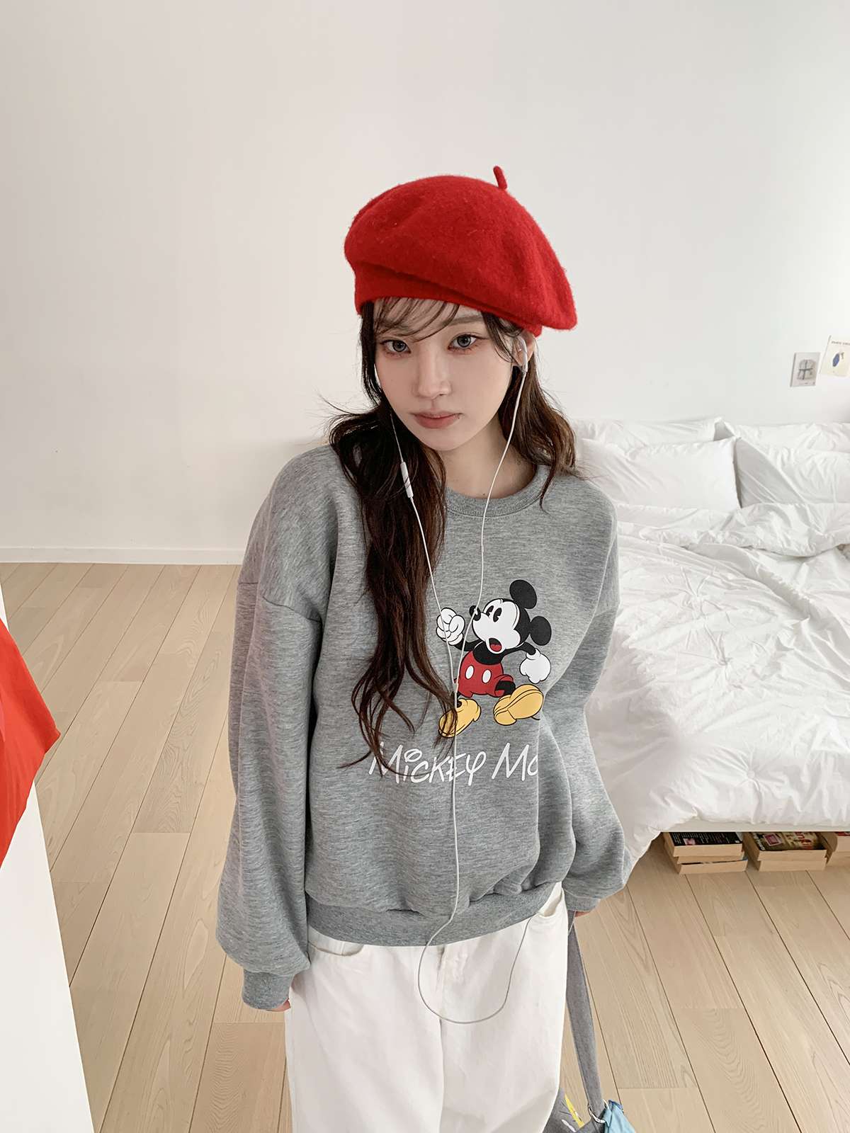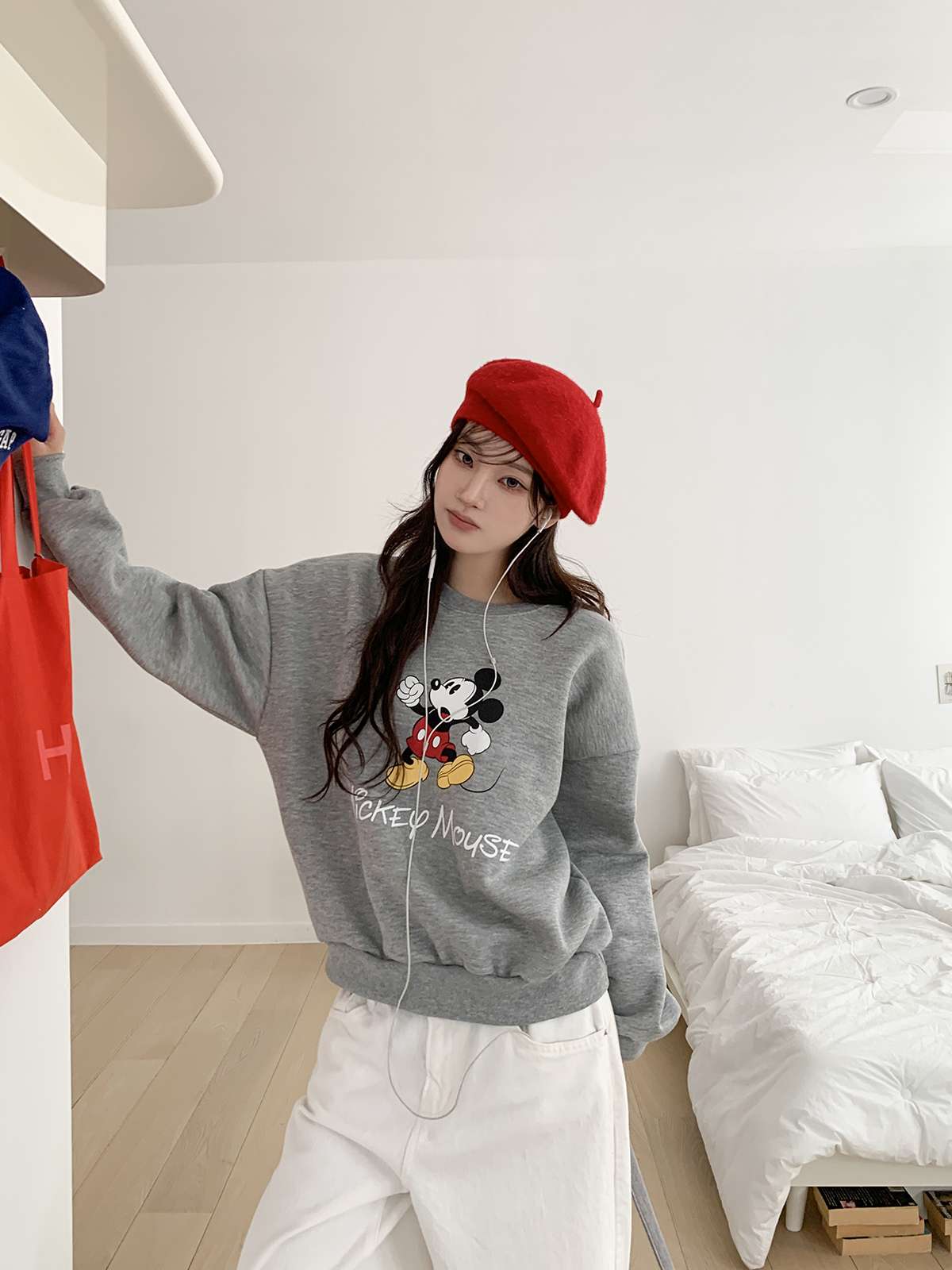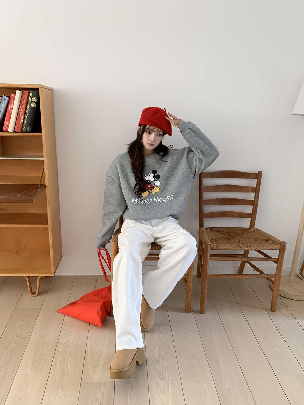 귀여운 미키마우스 프린팅이 더해져 캐주얼한 무드를 연출하는 맨투맨
