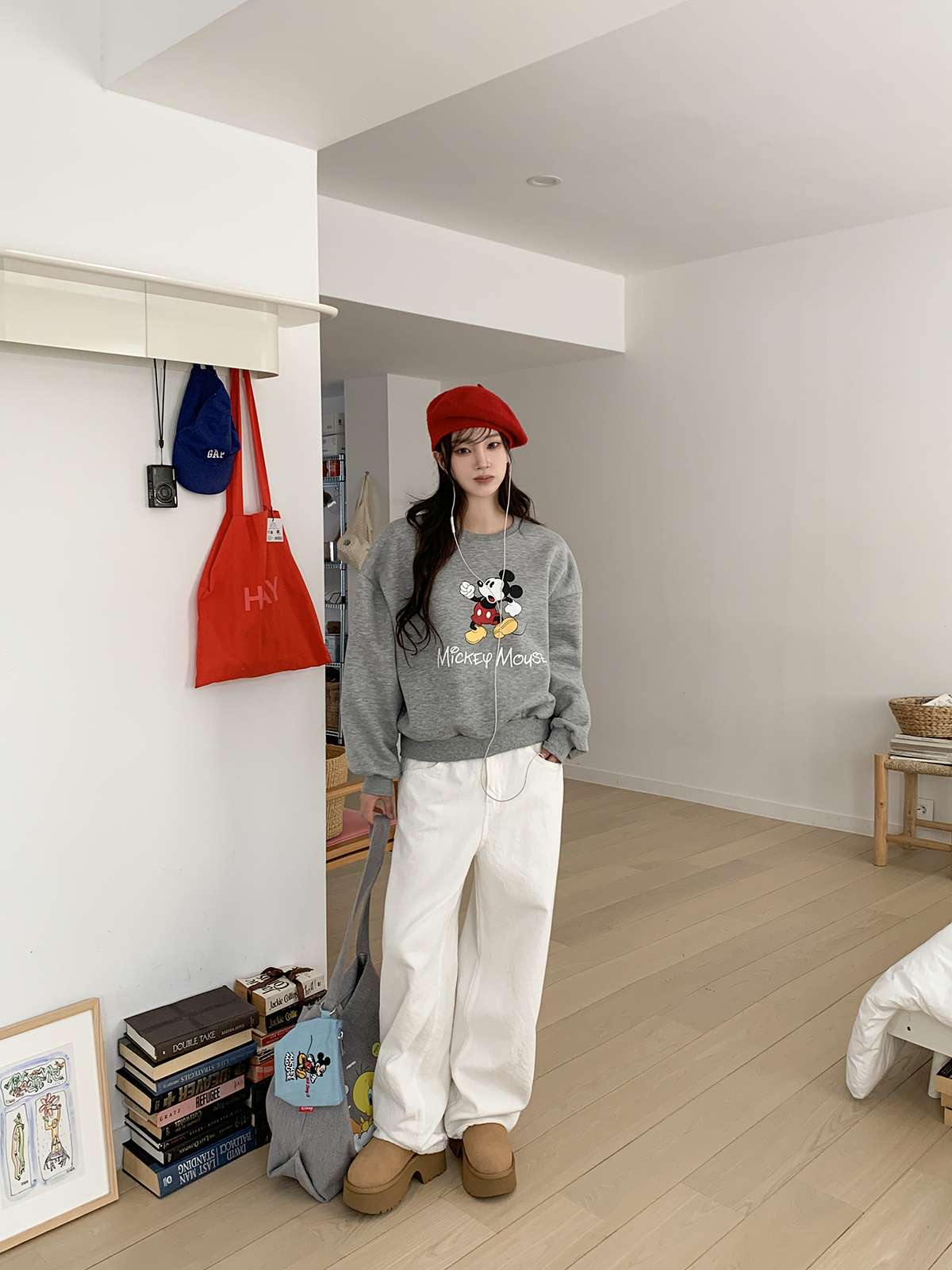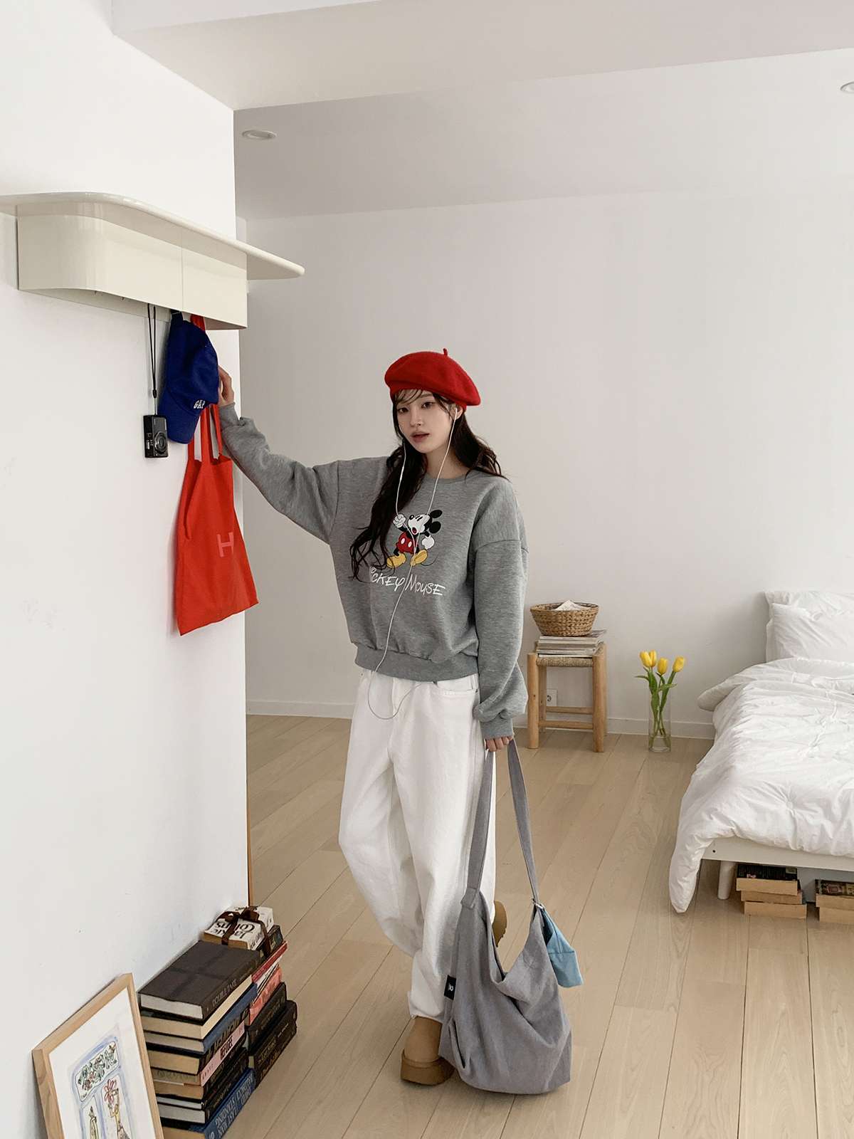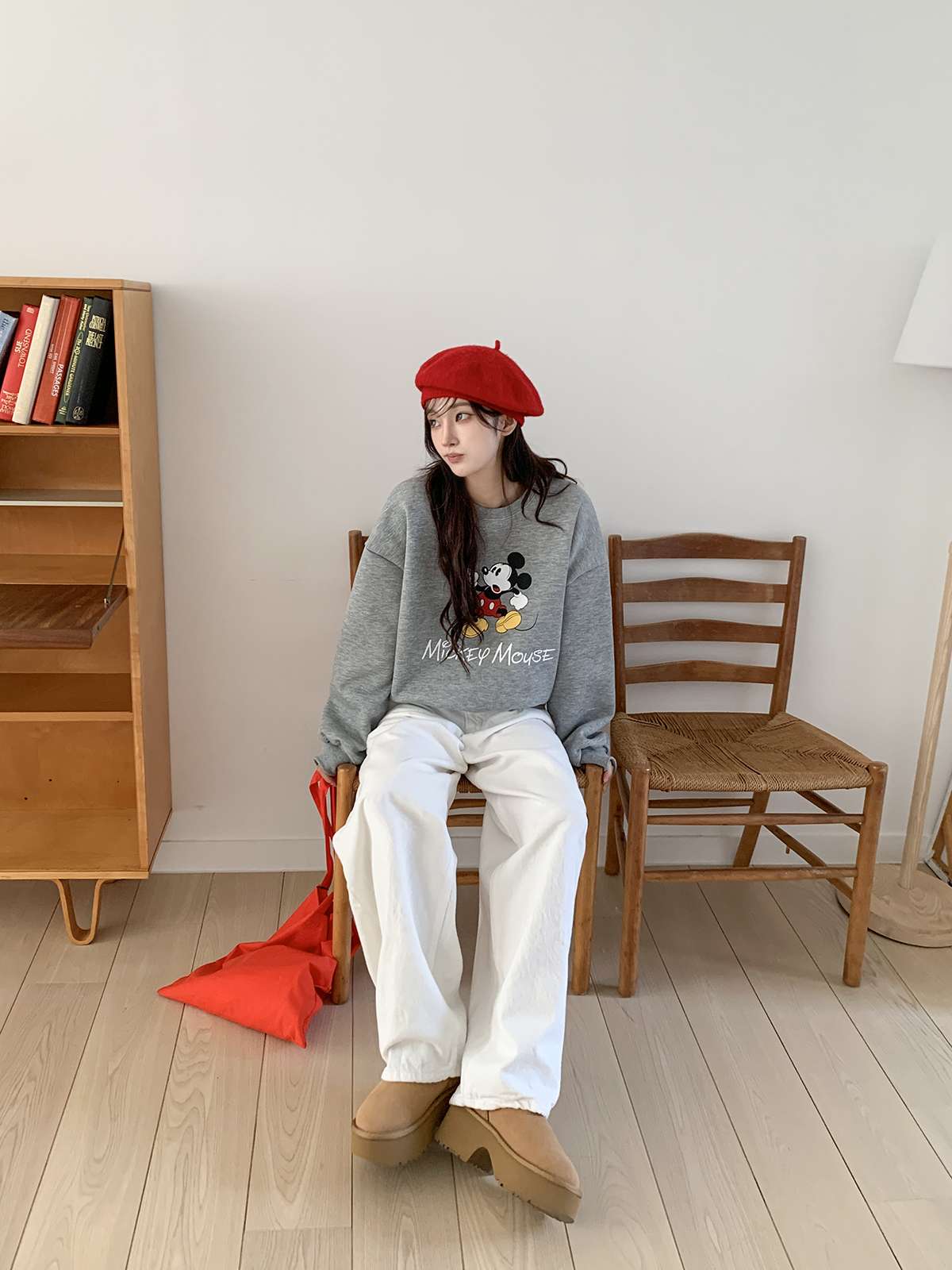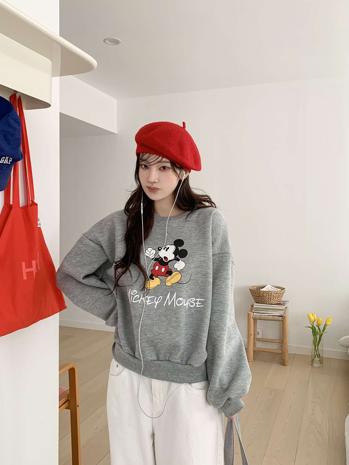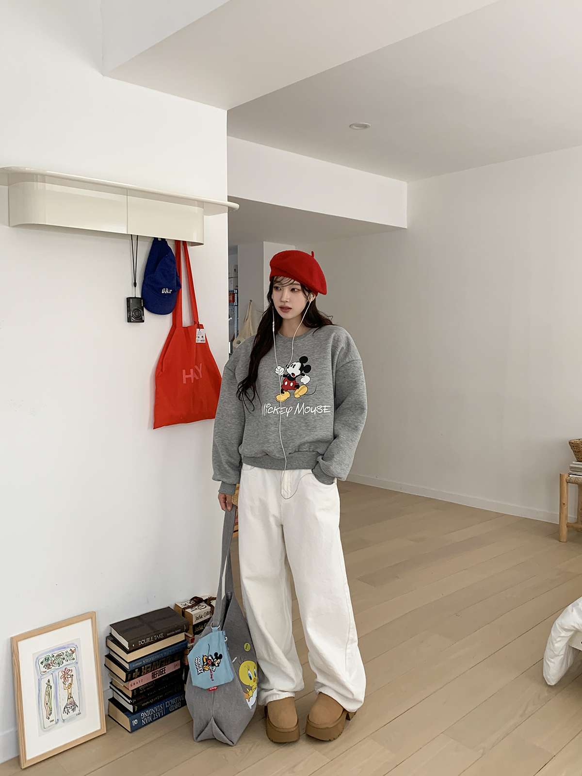 귀여운 미키마우스 프린팅이 더해져 캐주얼한 무드를 연출하는 맨투맨