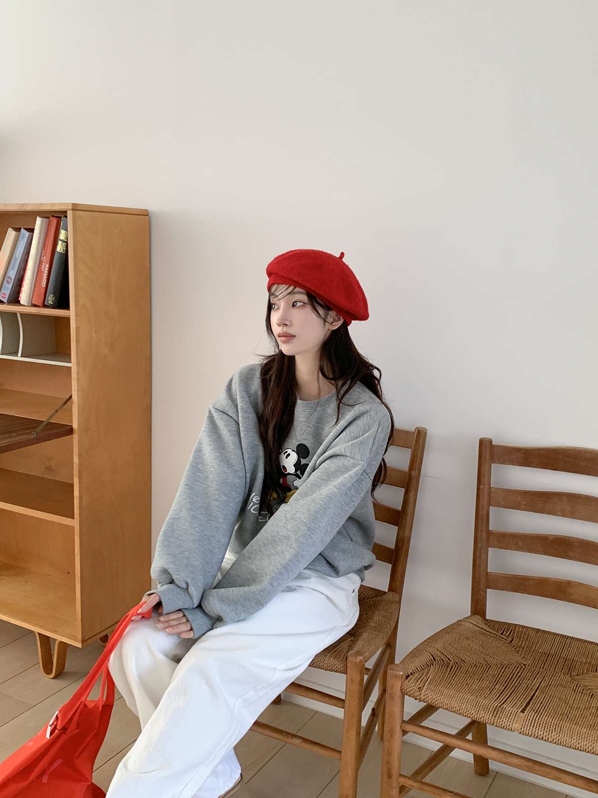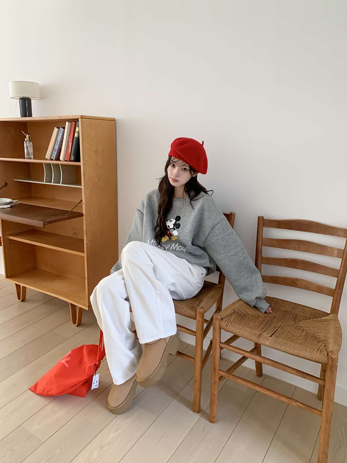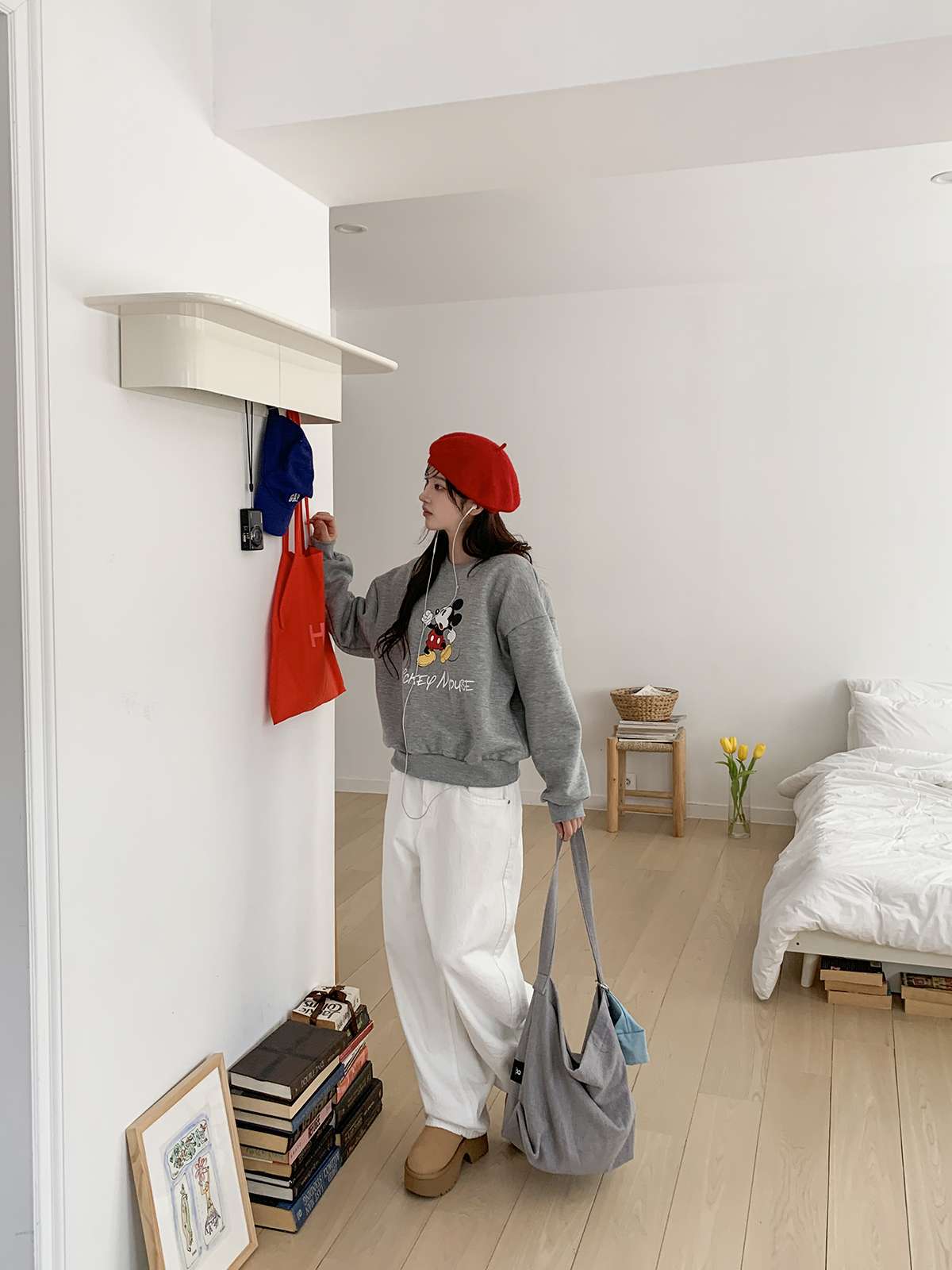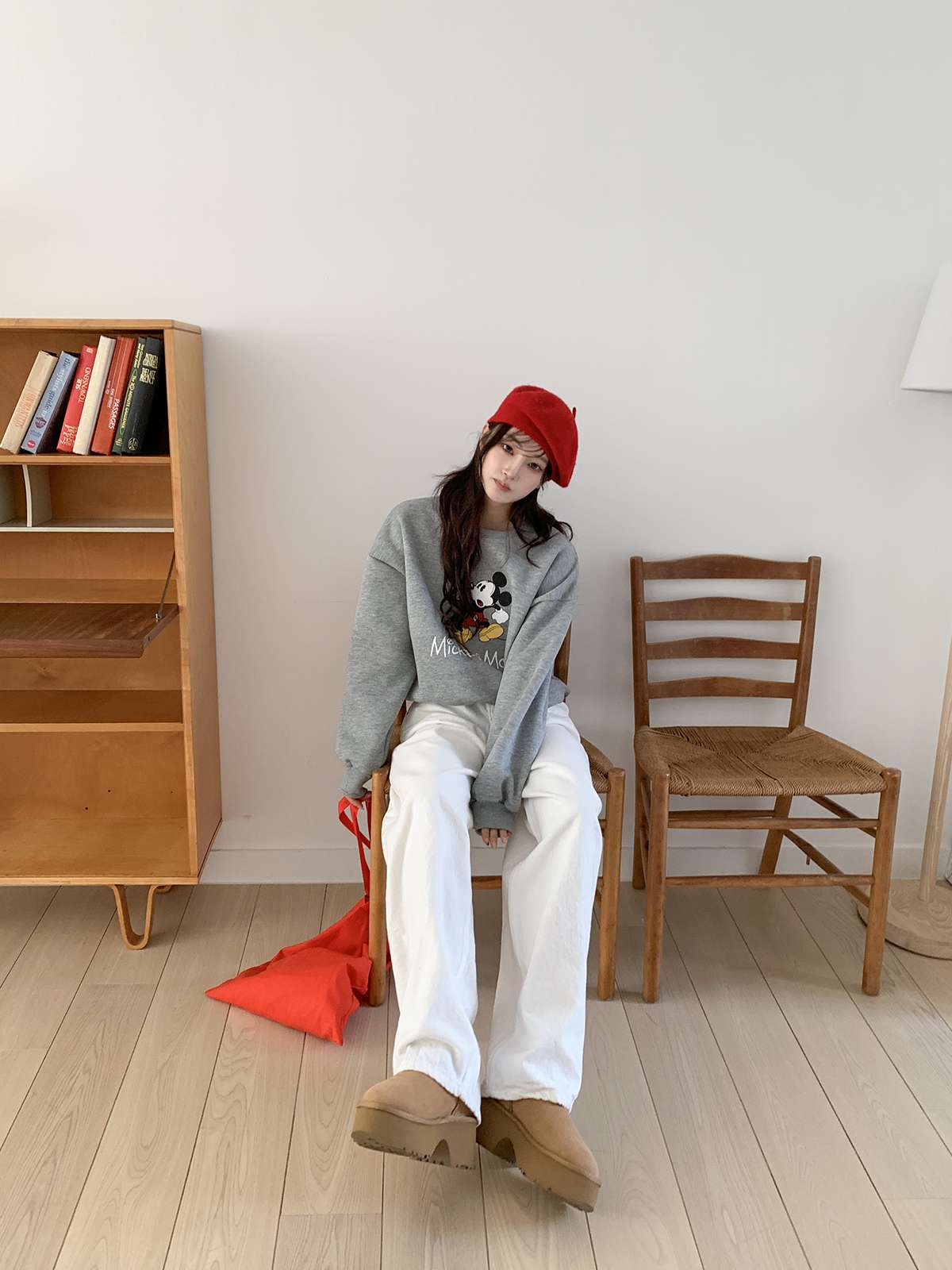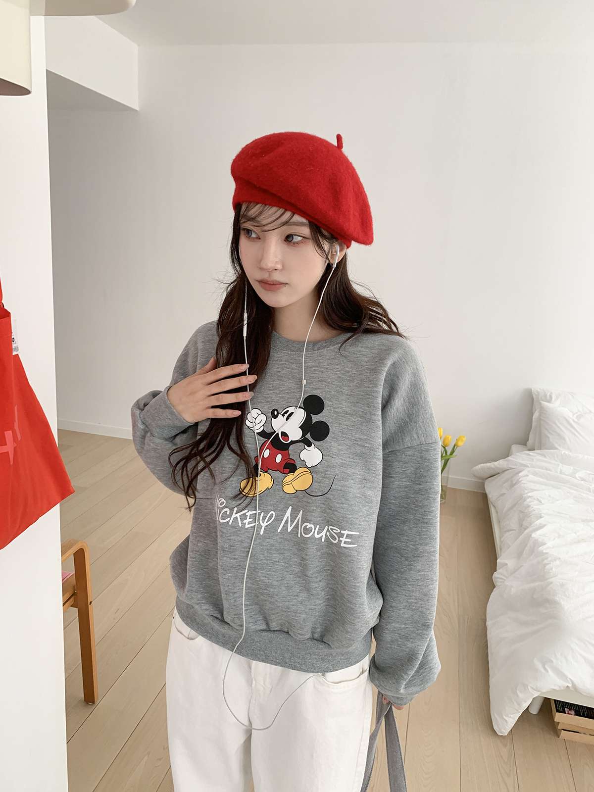 귀여운 미키마우스 프린팅이 더해져 캐주얼한 무드를 연출하는 맨투맨