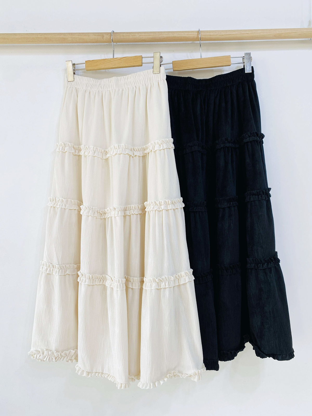 [ SK7535K5B-추유리 캉캉 코듀로이 프릴 롱 스커트 ]