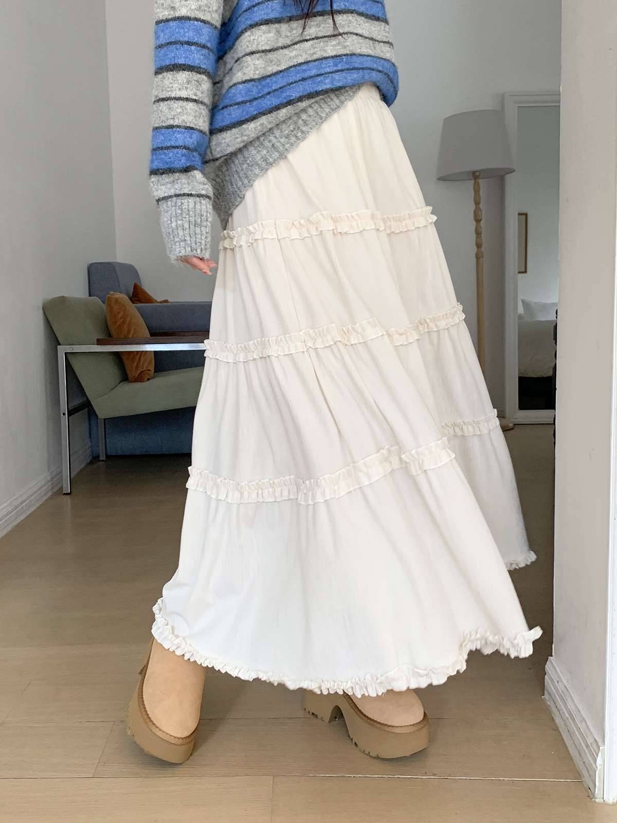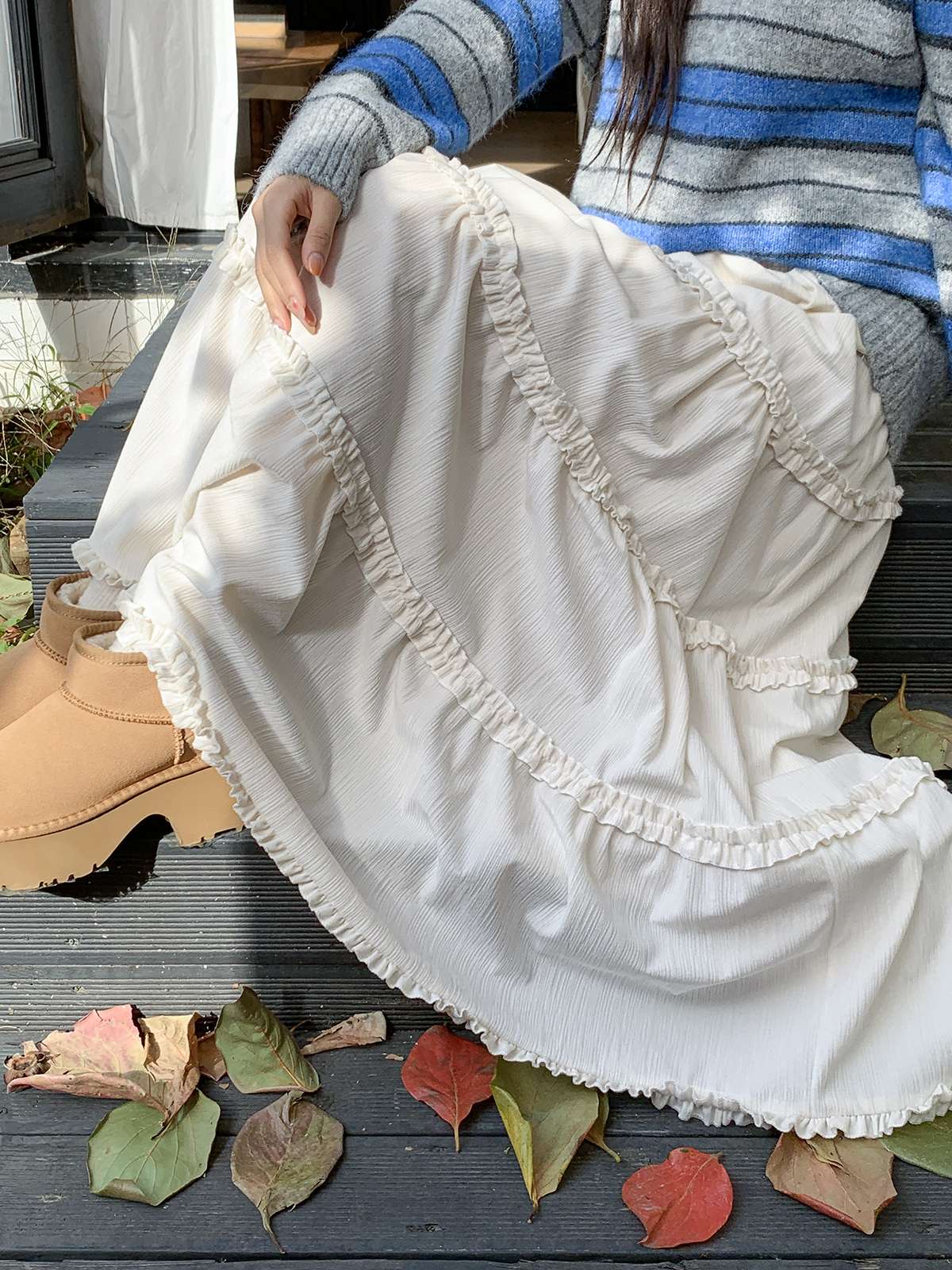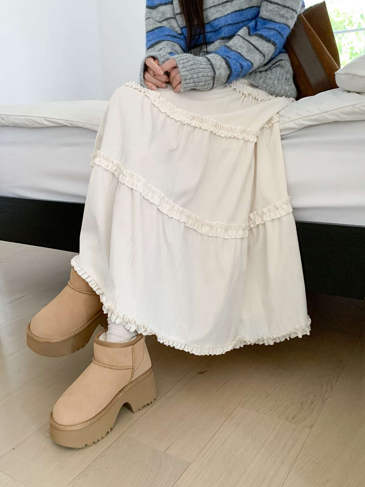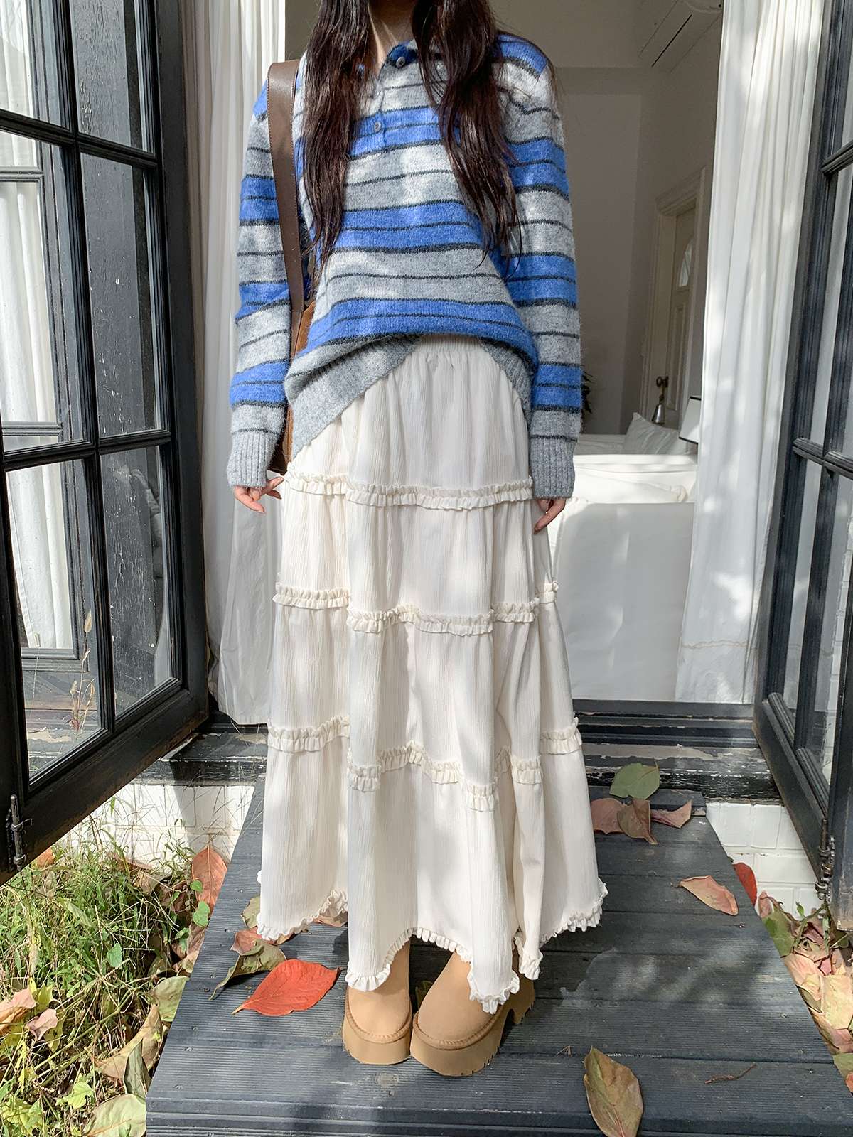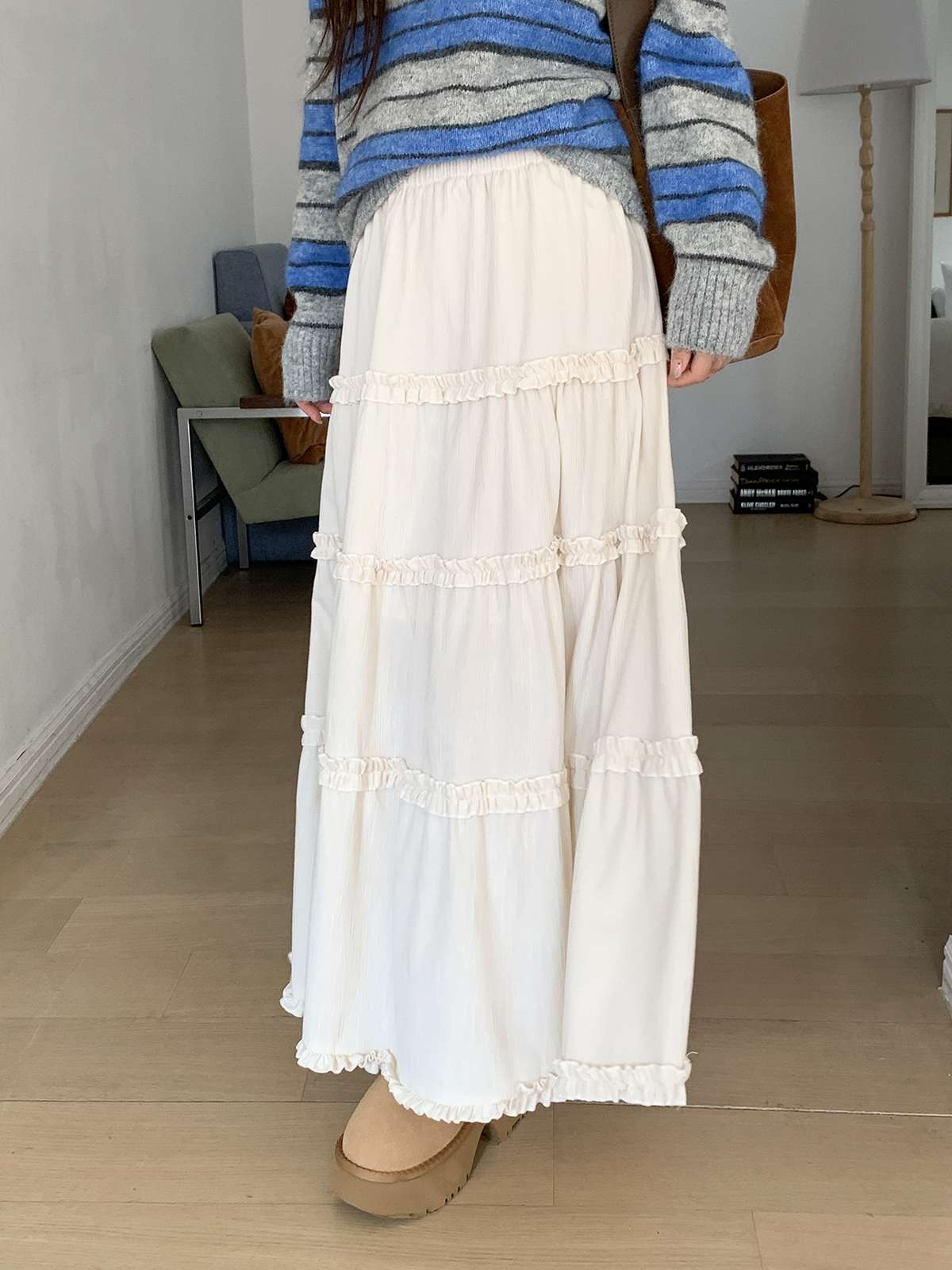 포근한 코듀로이 소재에 캉캉 프릴 디테일이 사랑스러운 롱 스커트