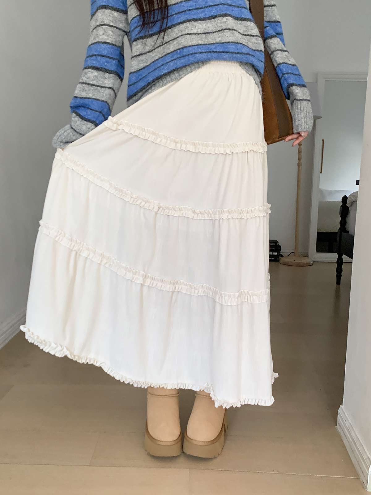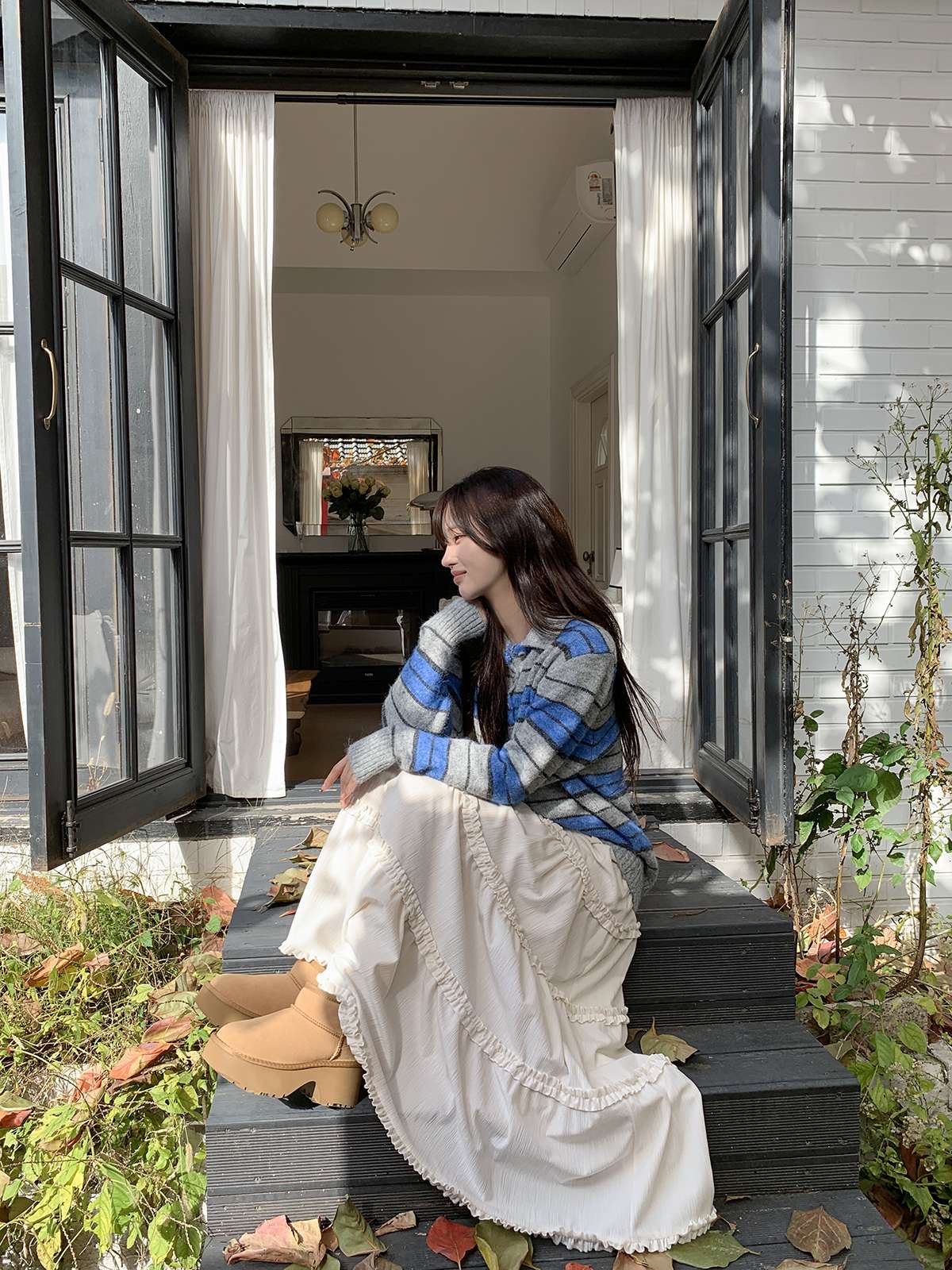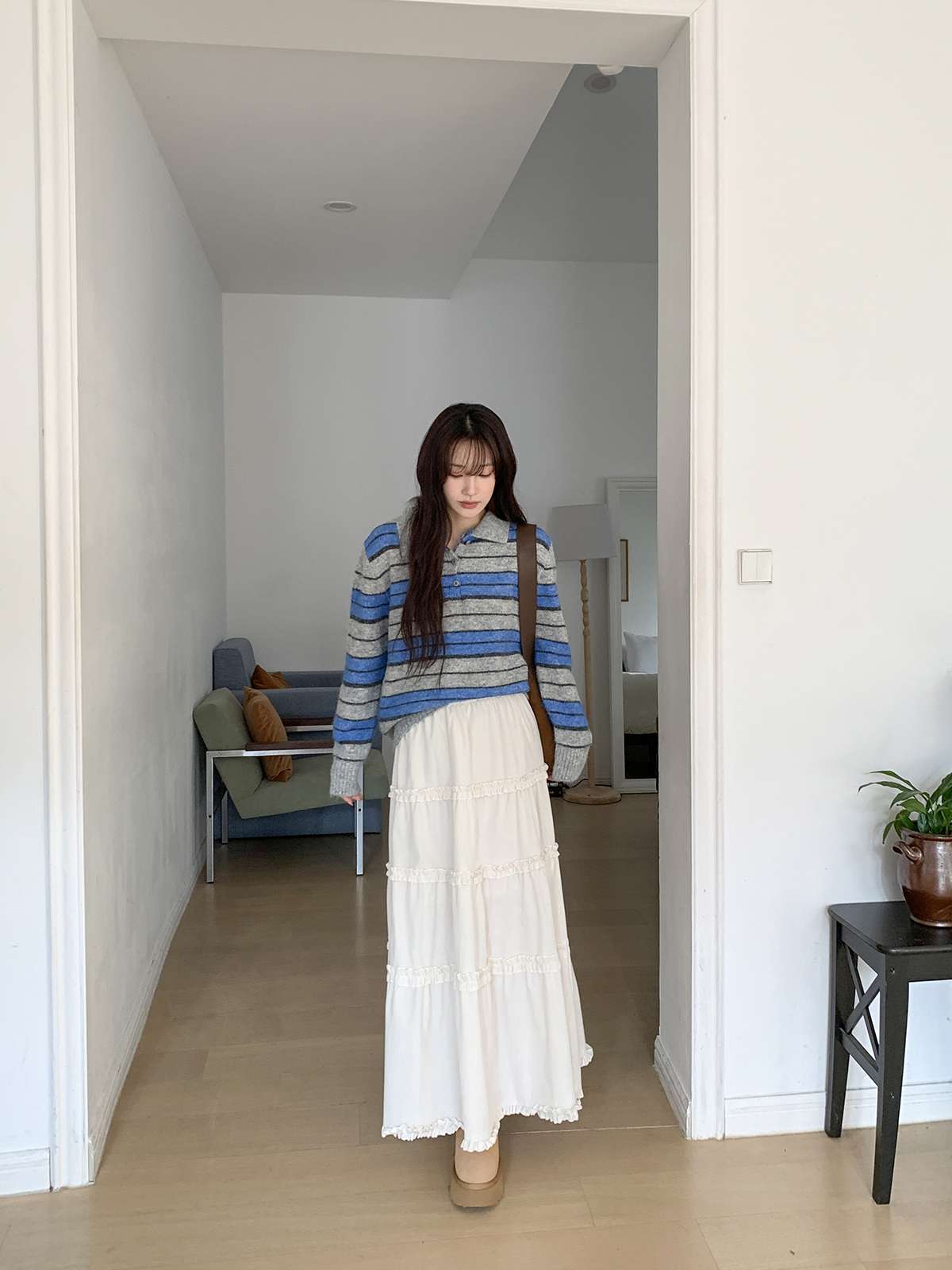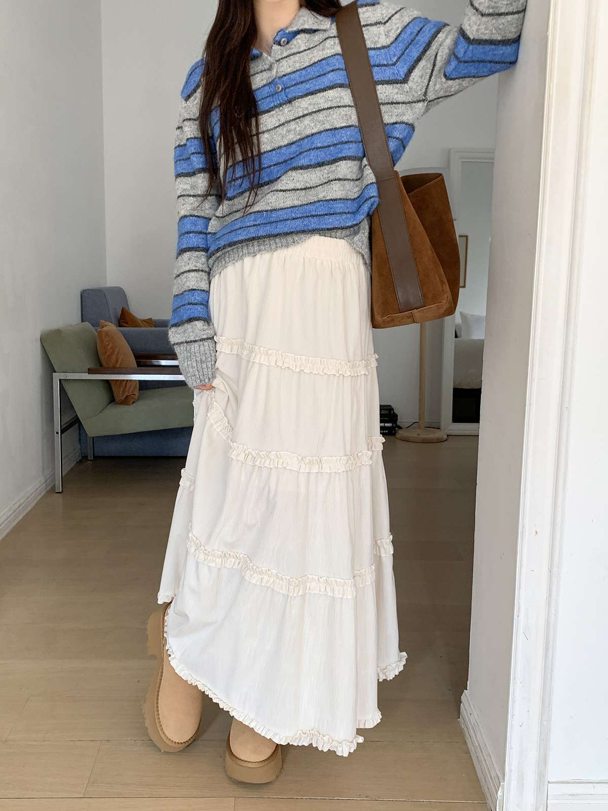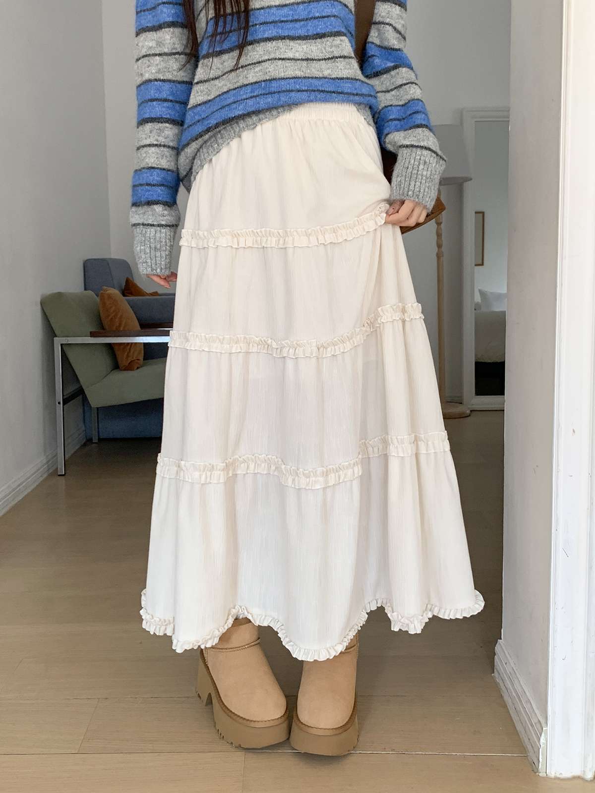 포근한 코듀로이 소재에 캉캉 프릴 디테일이 사랑스러운 롱 스커트