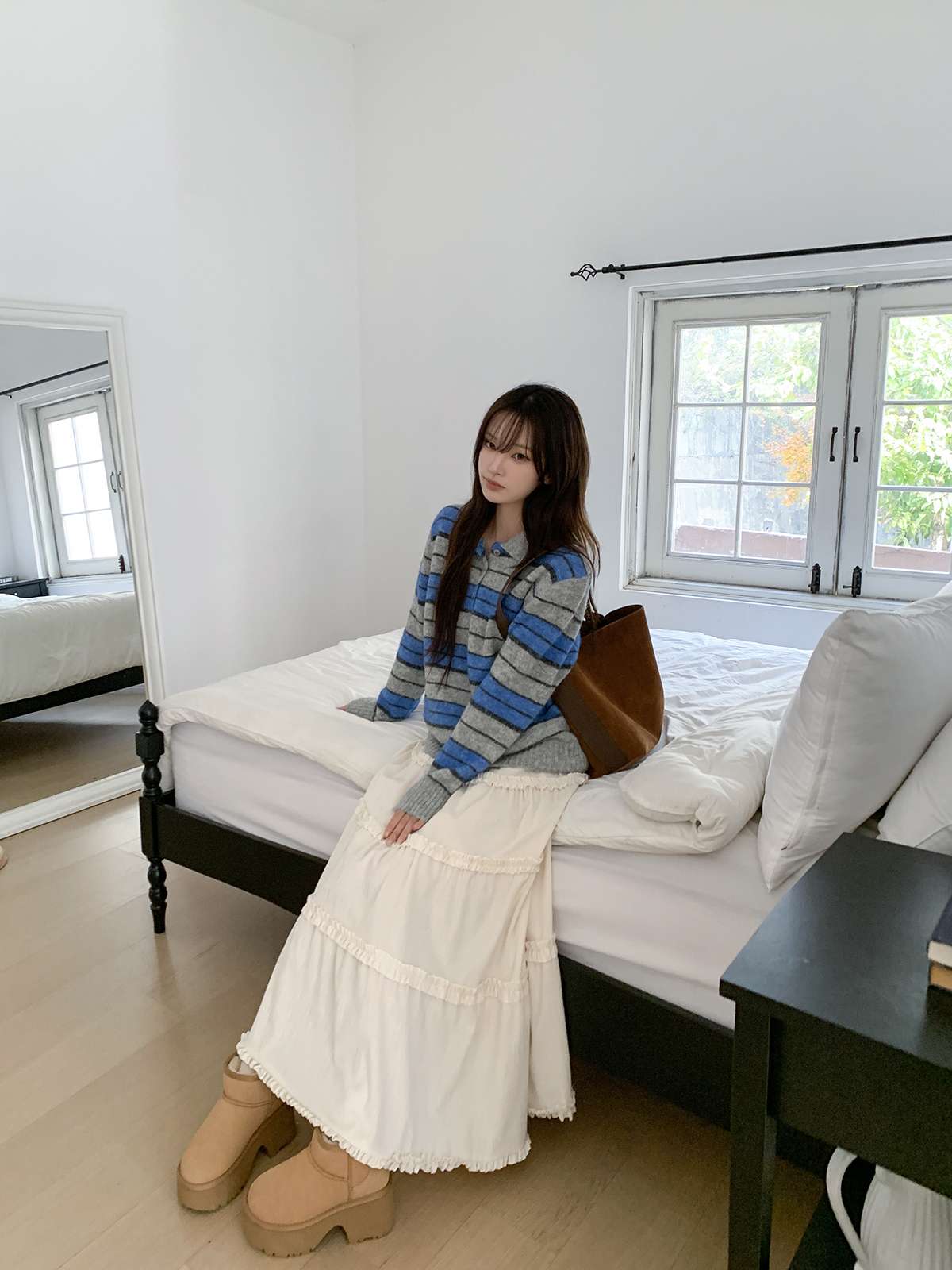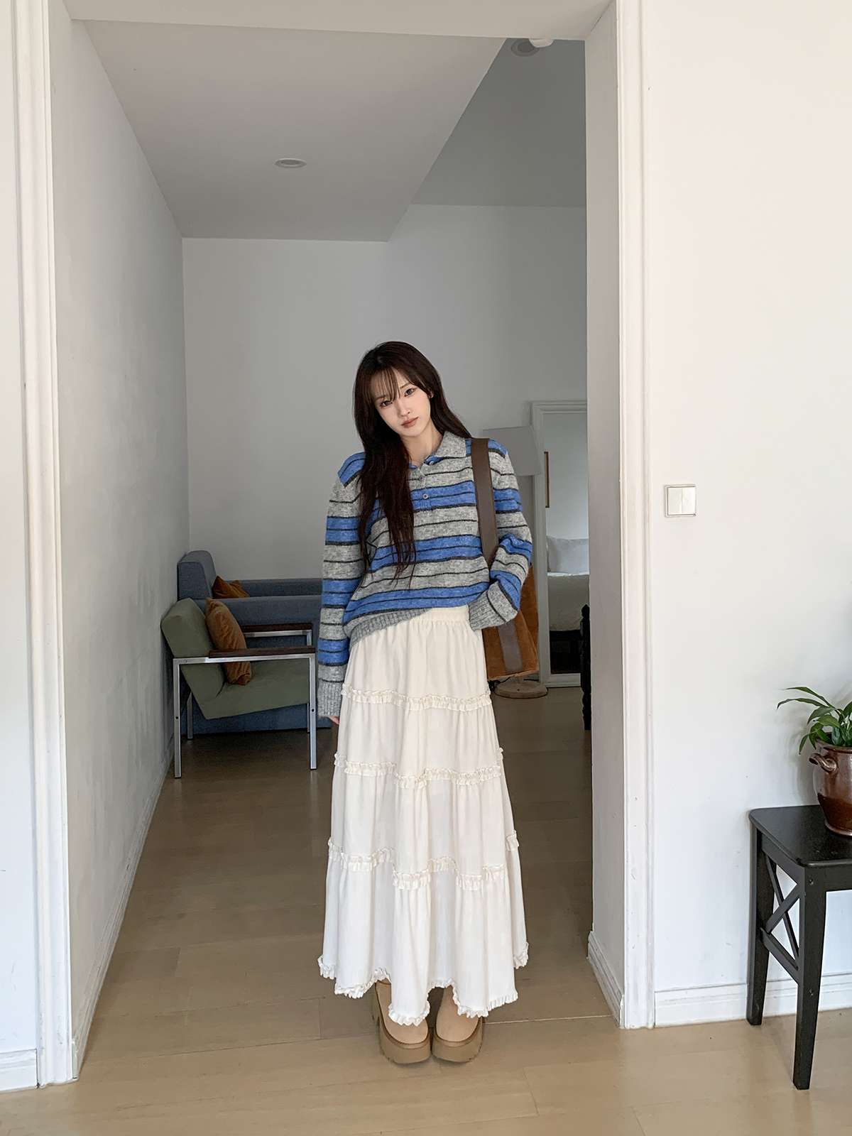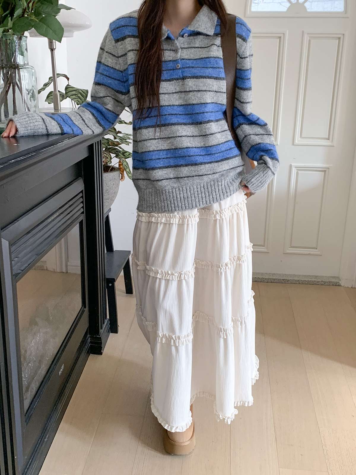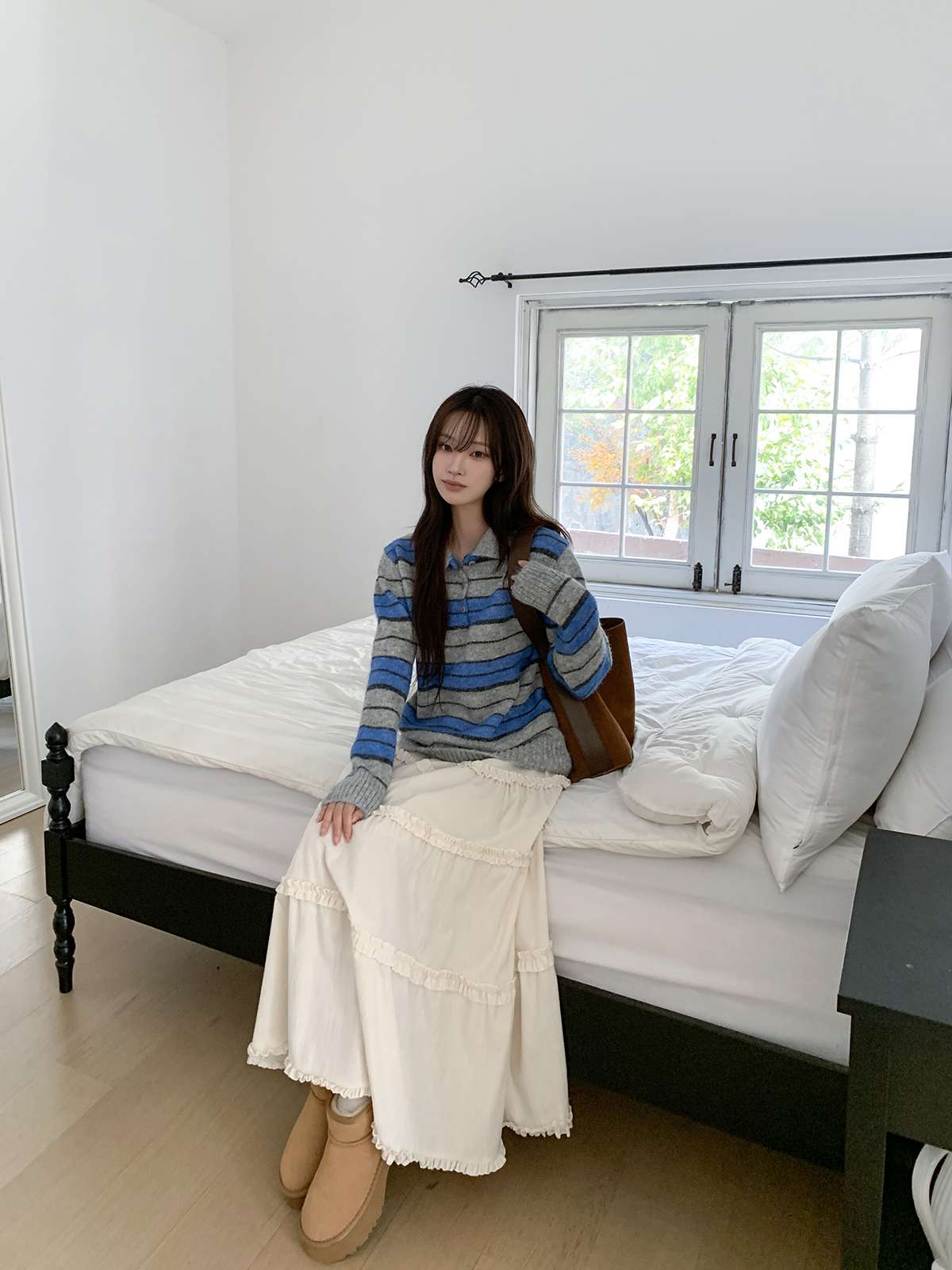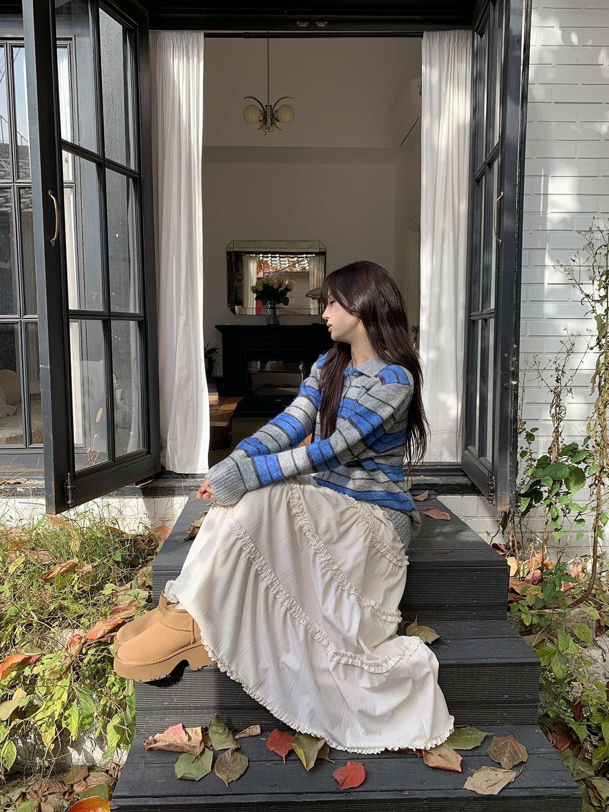 포근한 코듀로이 소재에 캉캉 프릴 디테일이 사랑스러운 롱 스커트