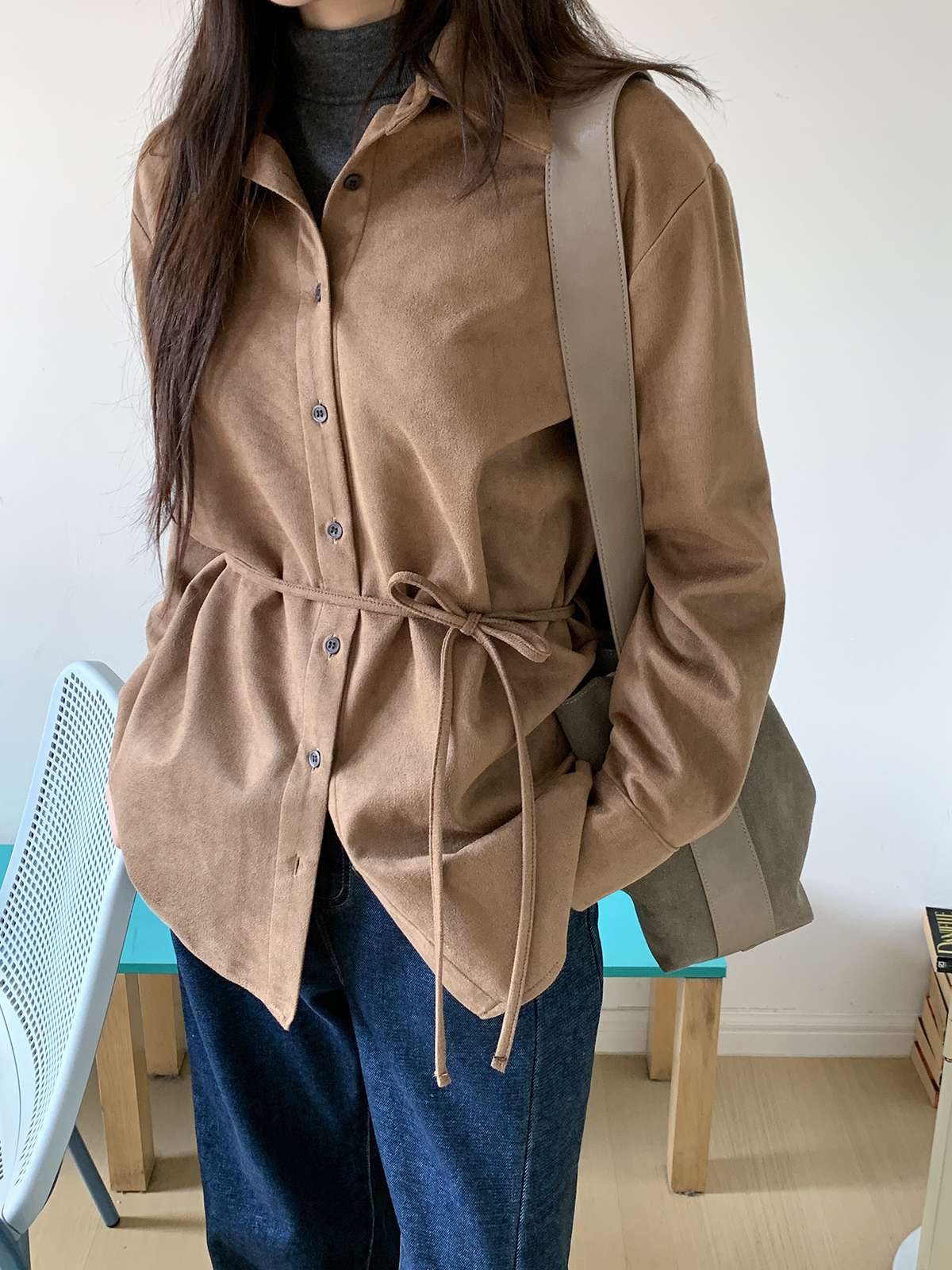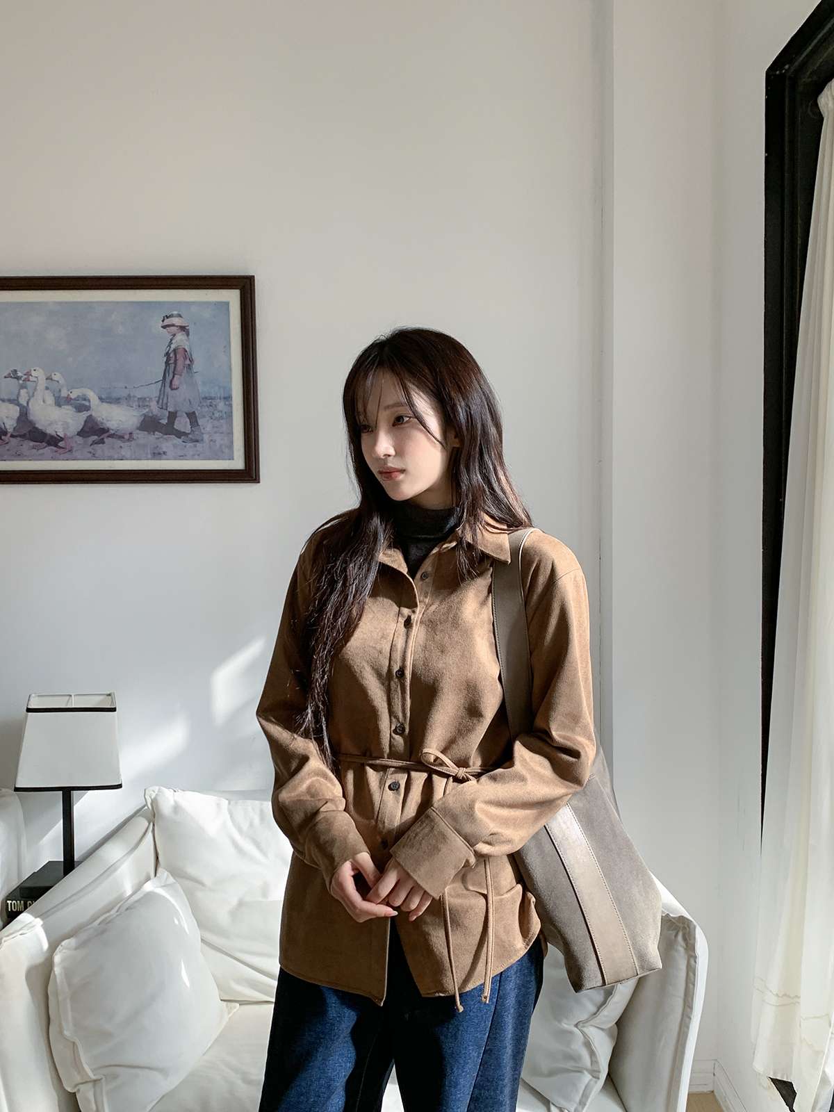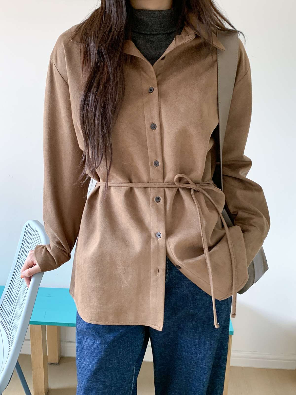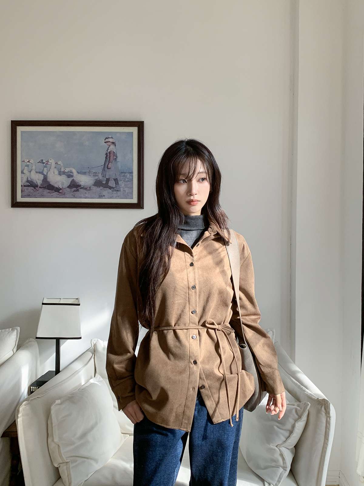 부드러운 스웨이드 소재로 분위기를 물씬 풍기는 셔츠예요!