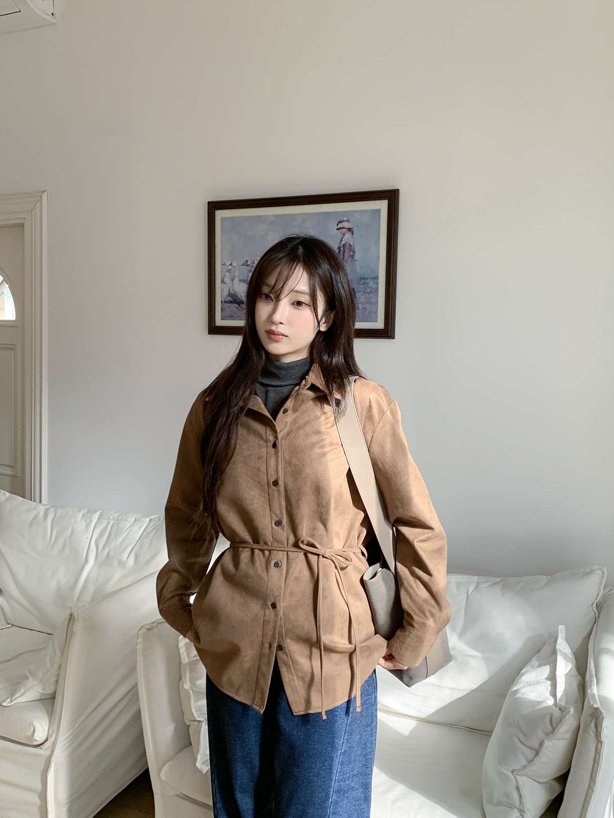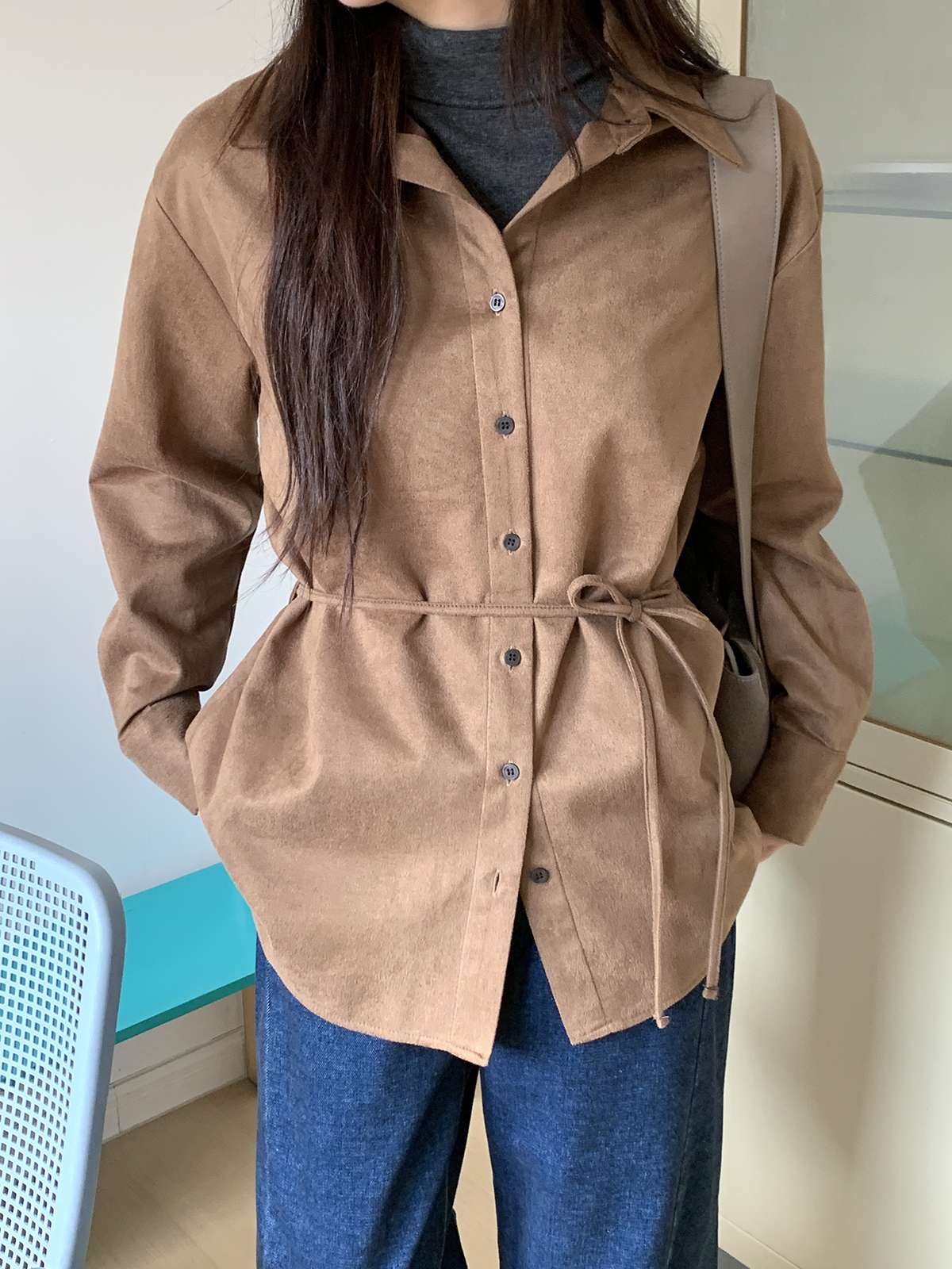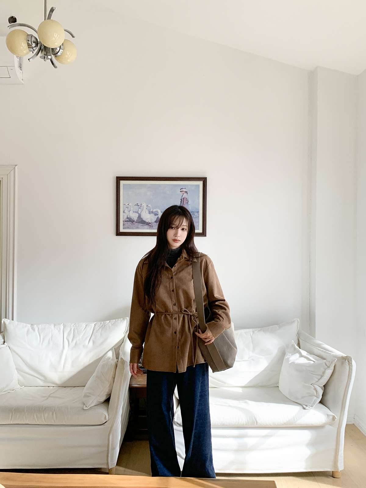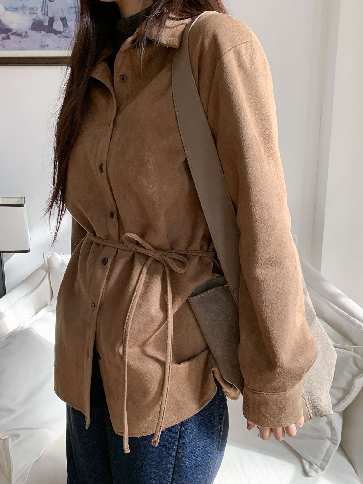 부드러운 스웨이드 소재로 분위기를 물씬 풍기는 셔츠예요!