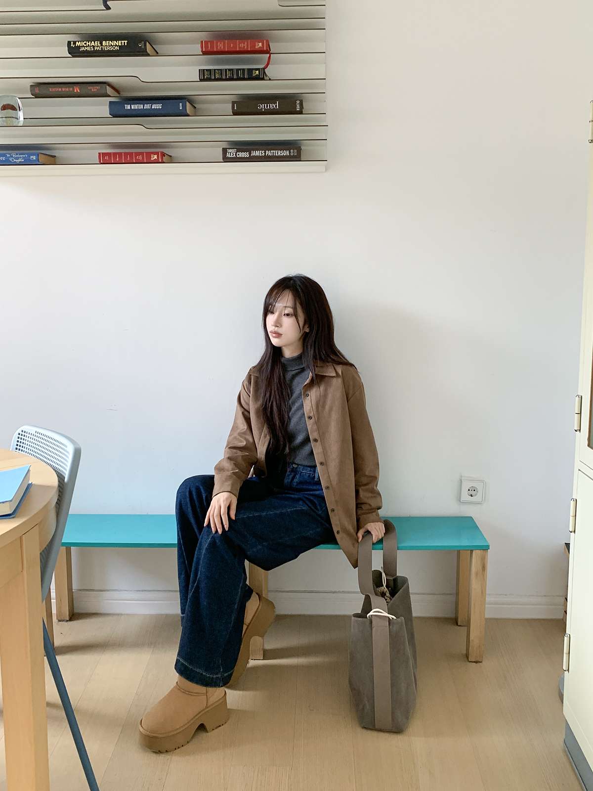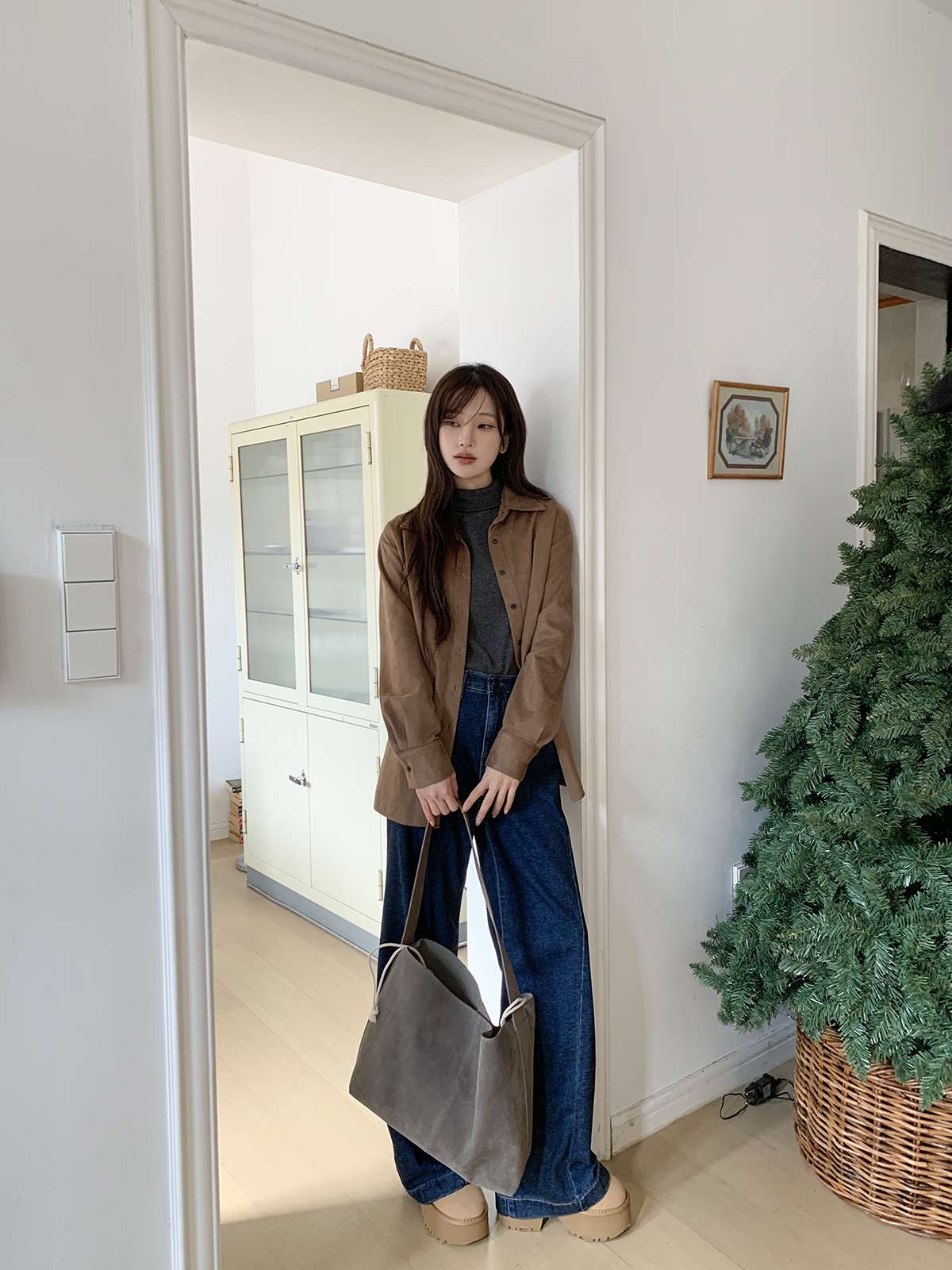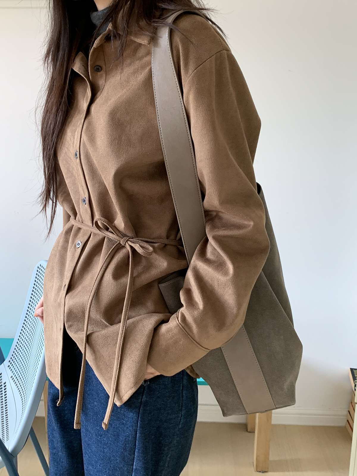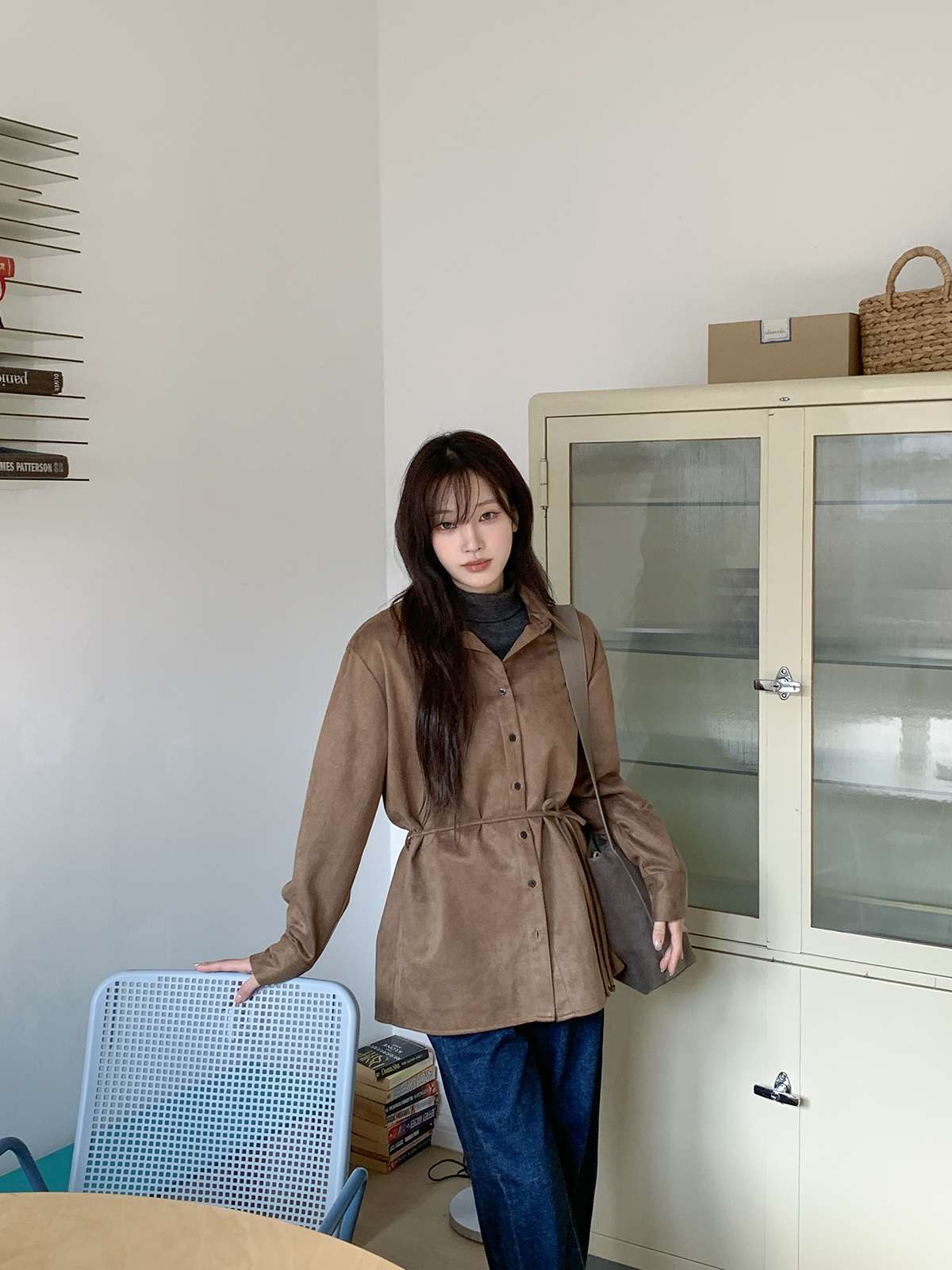 부드러운 스웨이드 소재로 분위기를 물씬 풍기는 셔츠예요!