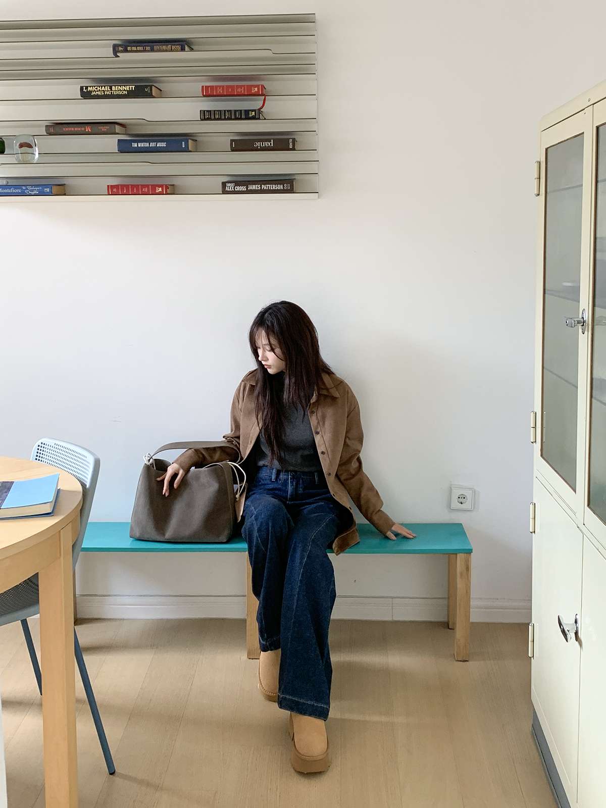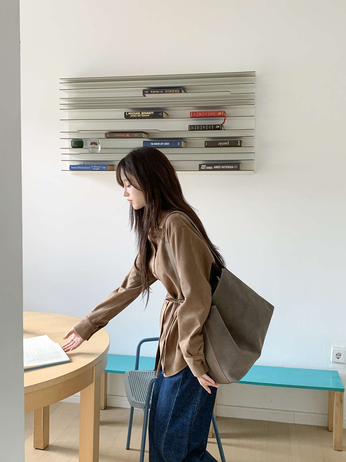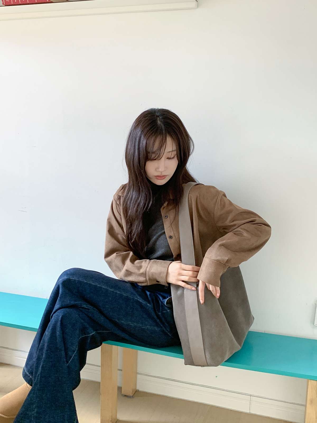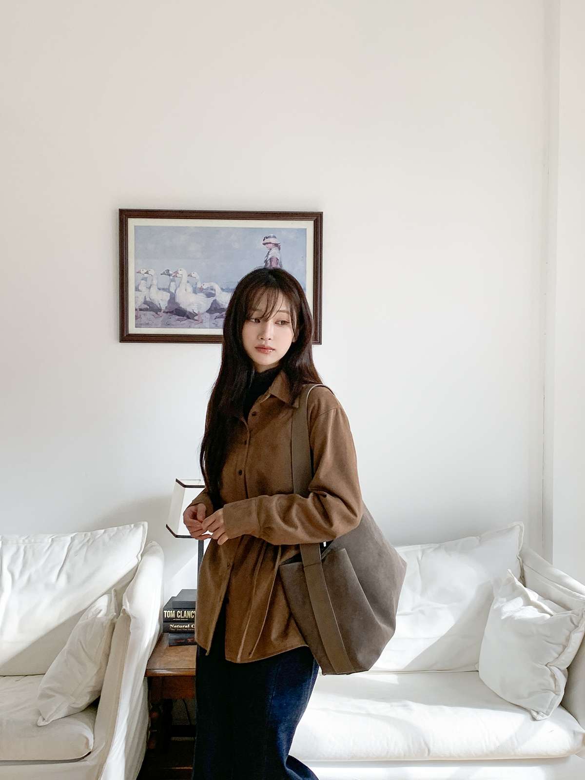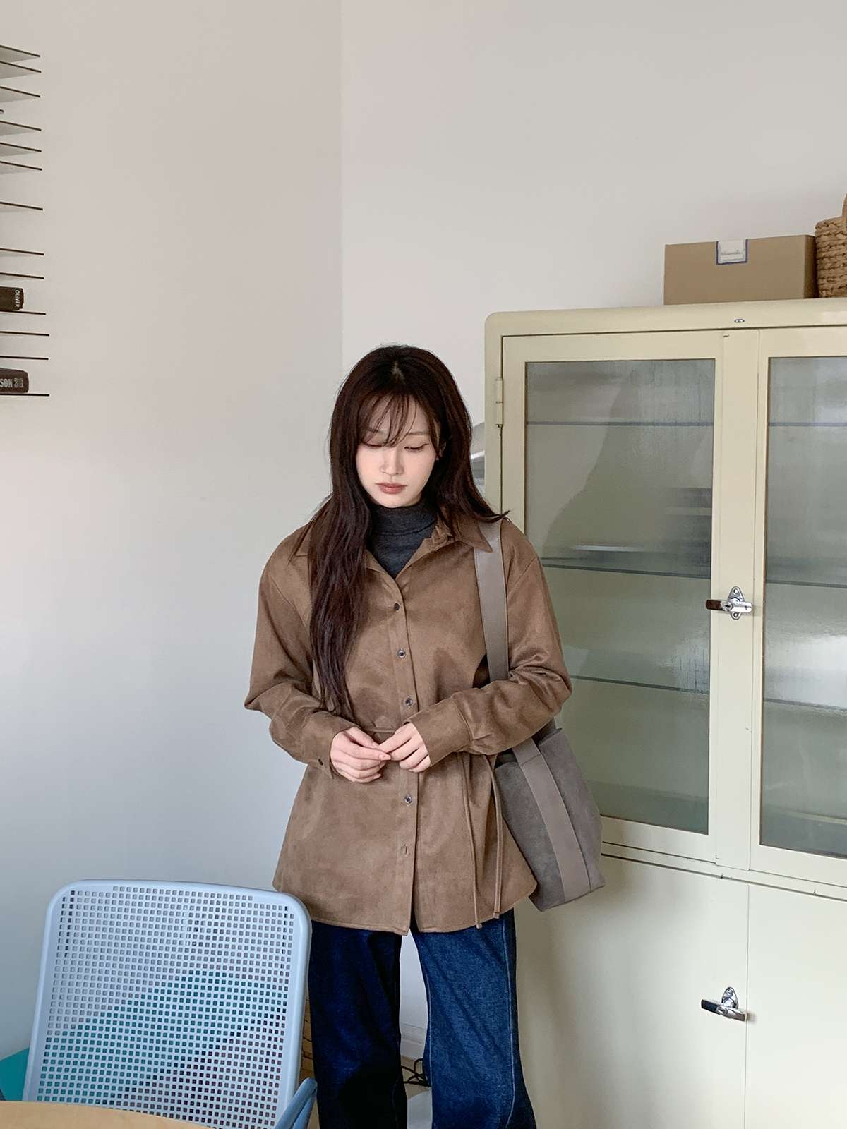 부드러운 스웨이드 소재의 오버핏 셔츠