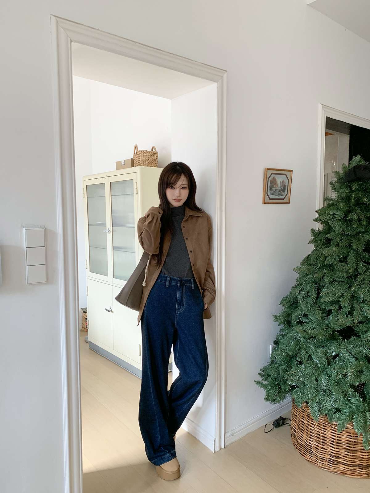 [ NB3329K5B-프유리 오버핏 하이넥 스웨이드 셔츠 ]