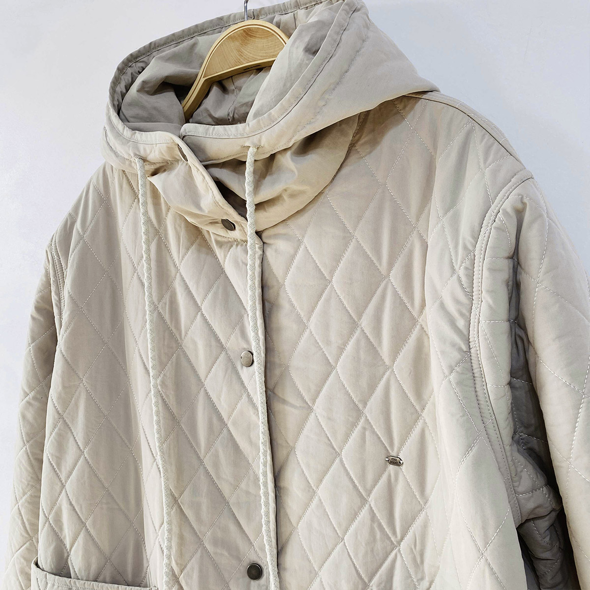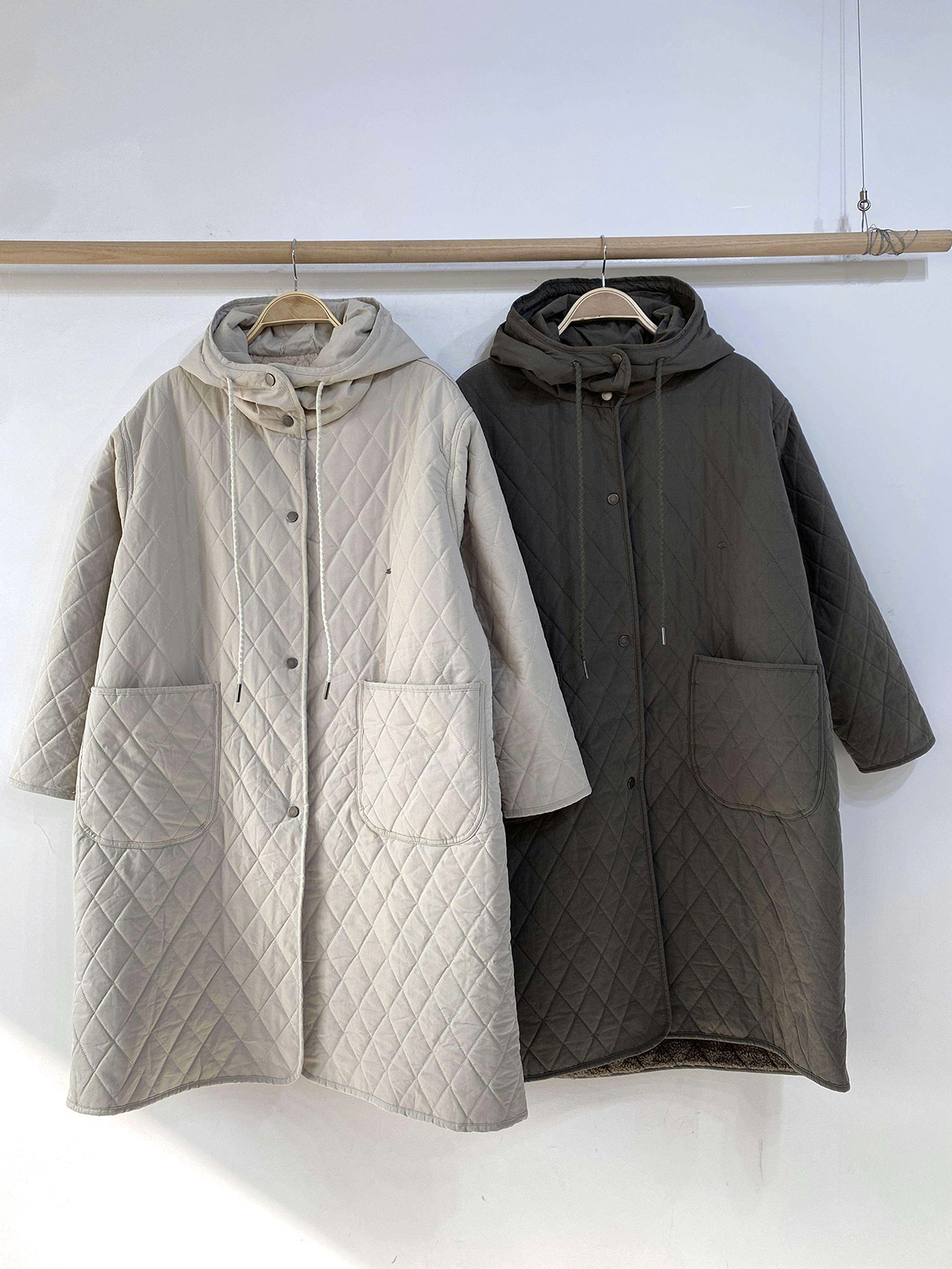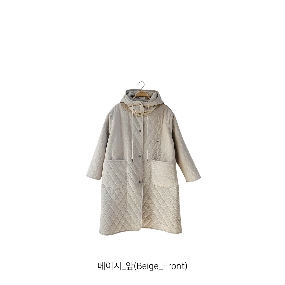 다이아몬드 퀼팅 패턴이 돋보이는 롱 자켓이에요!