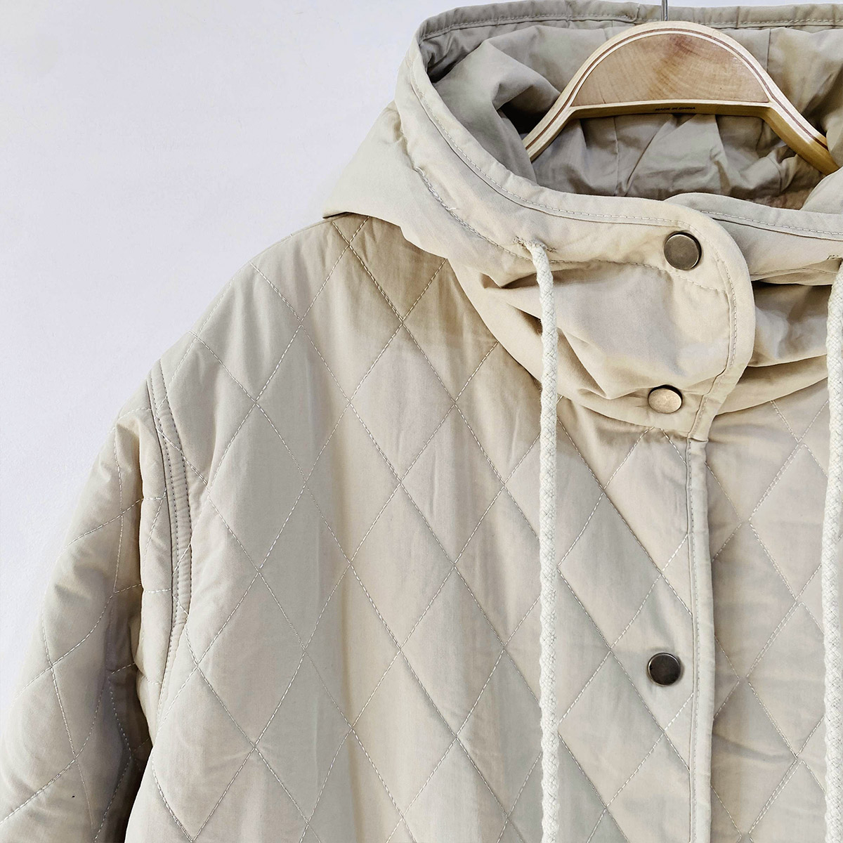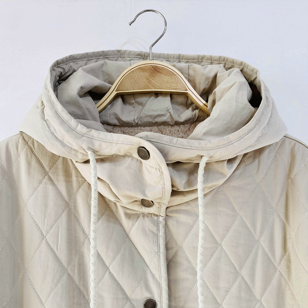[ JK6104K5B-뉴유리 뽀글이 안감 퀄팅 후드 롱 자켓 ]