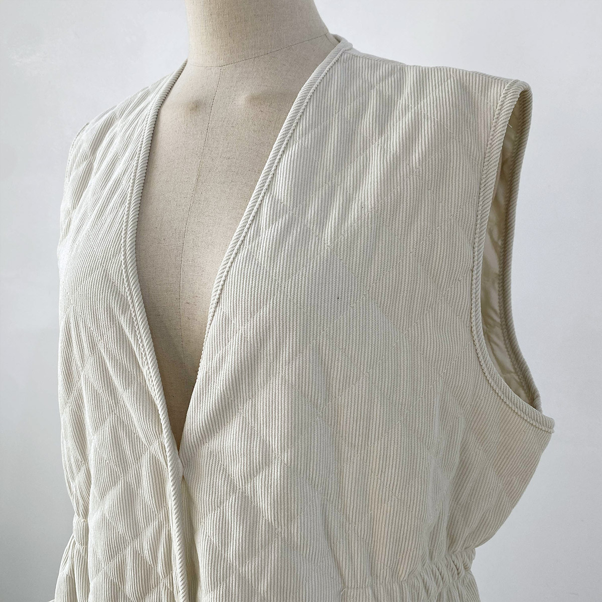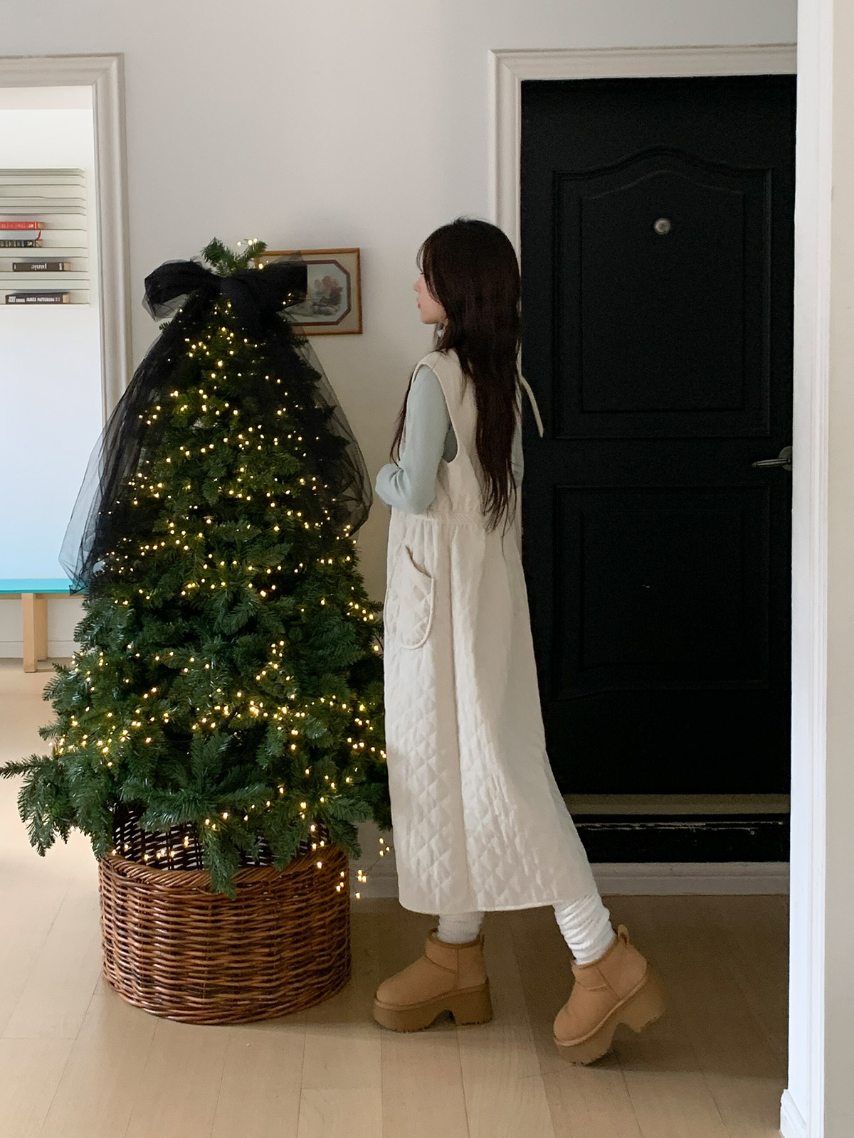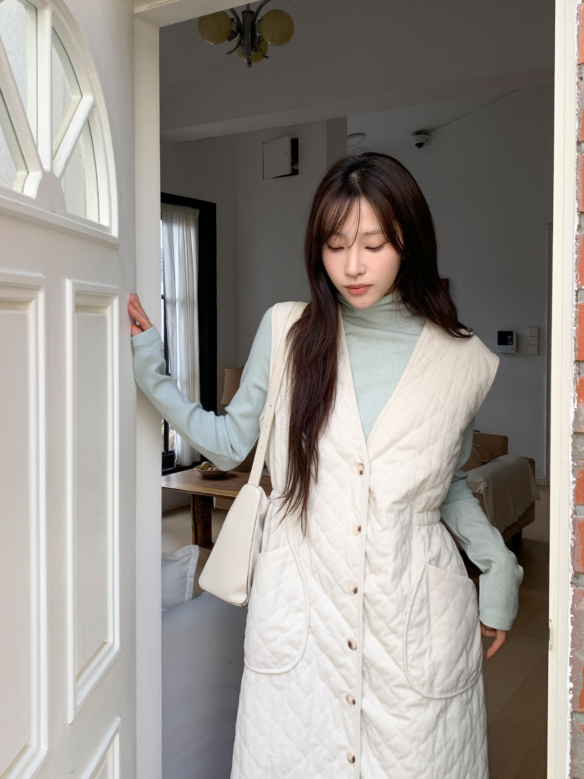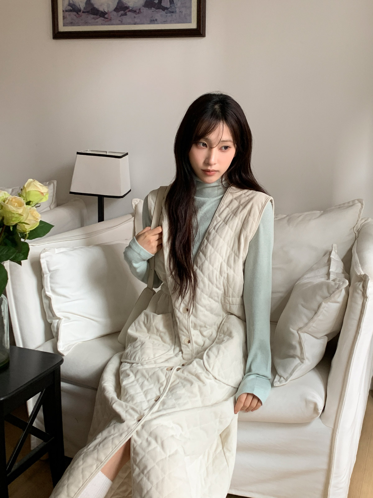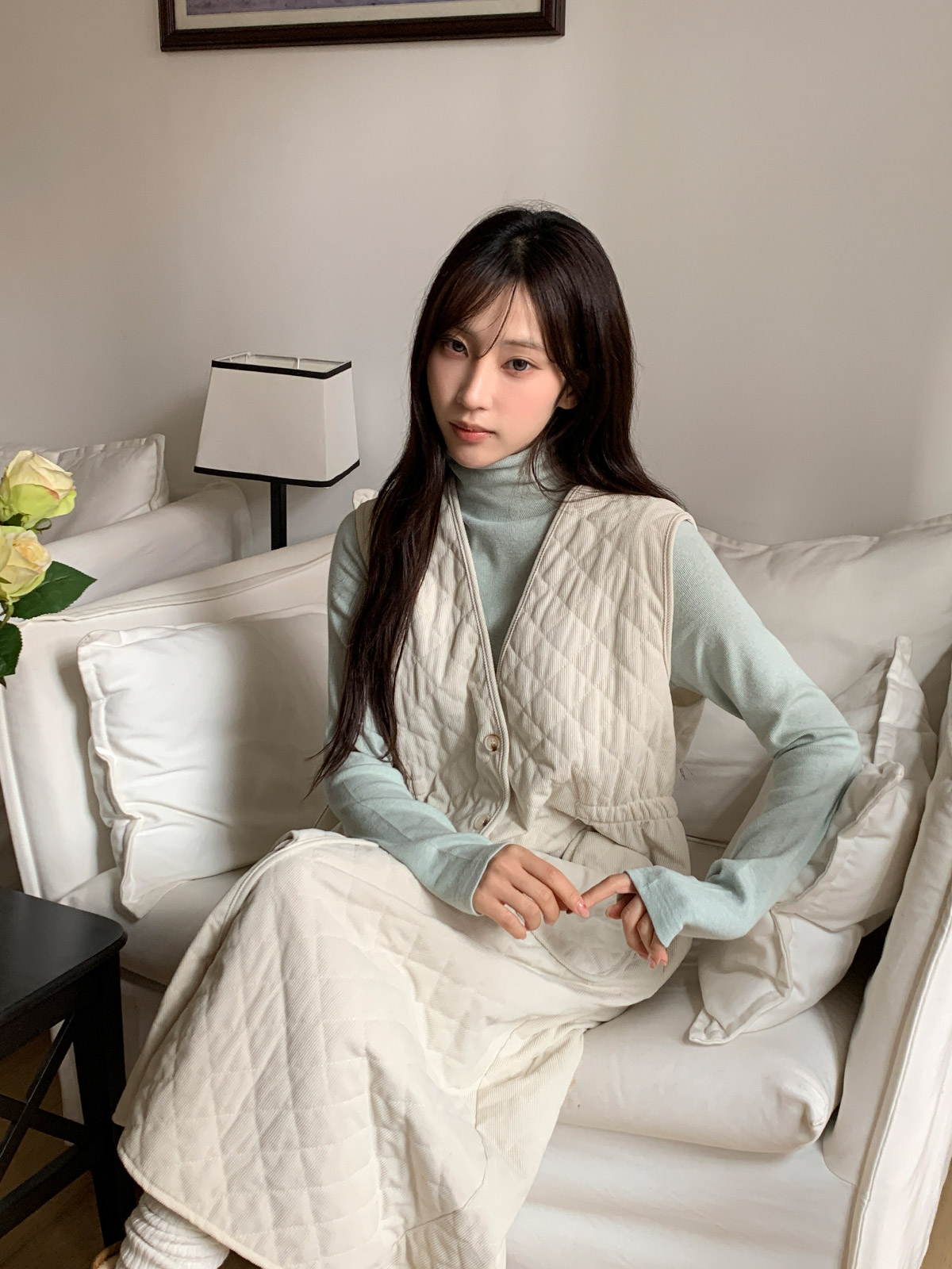 누빔 처리로 따뜻함과 스타일을 모두 잡은 롱 베스트 원피스예요!