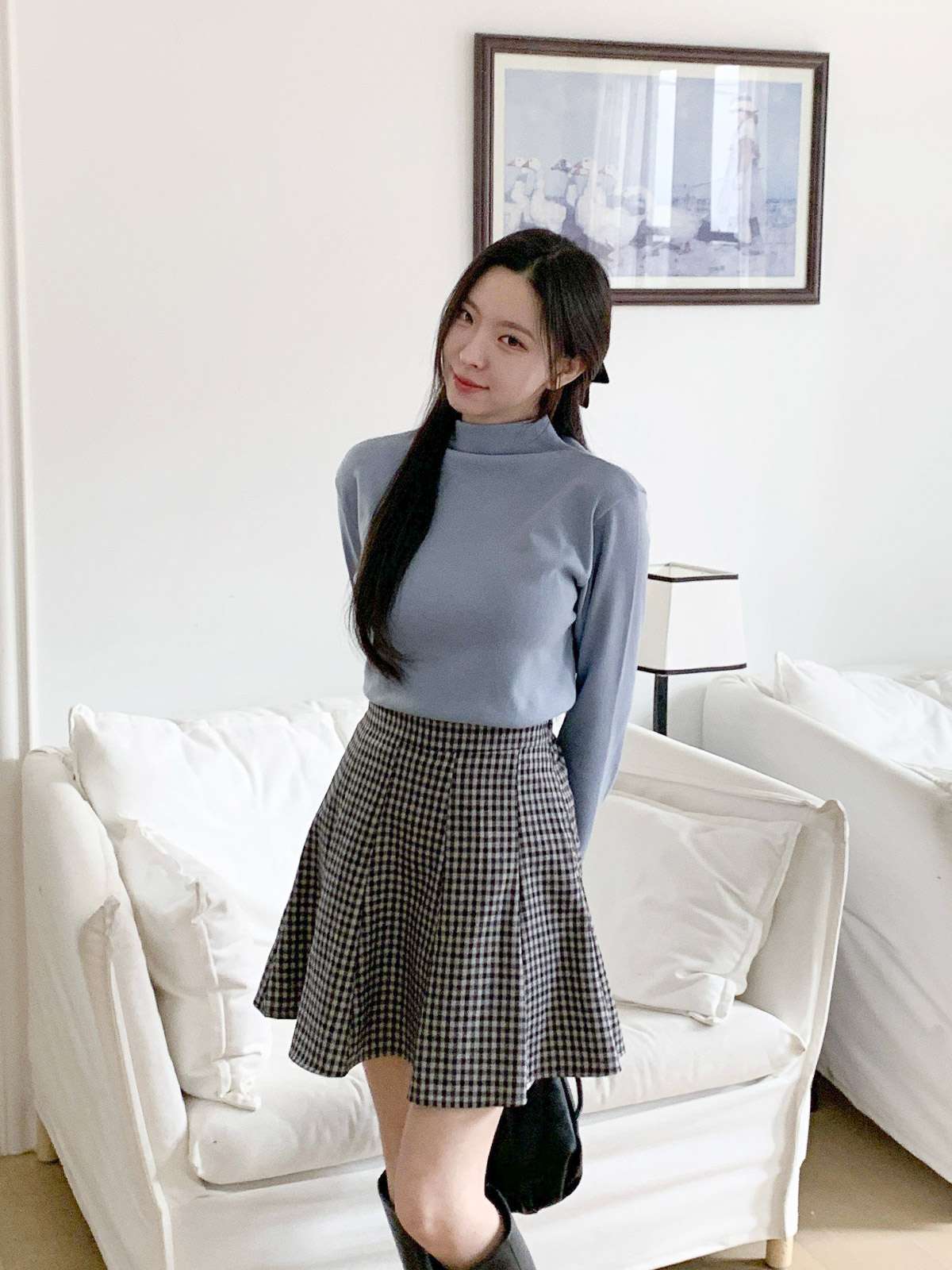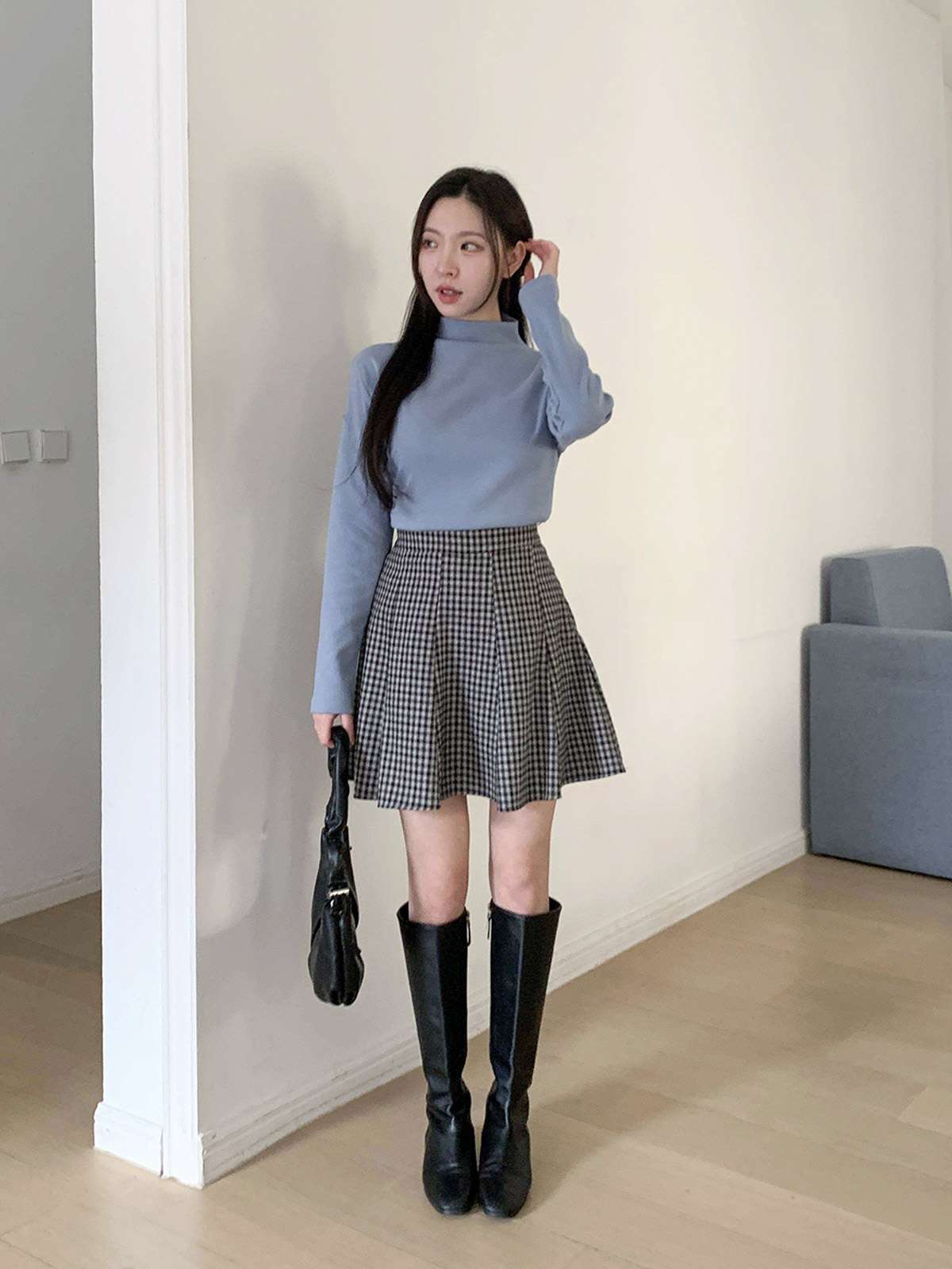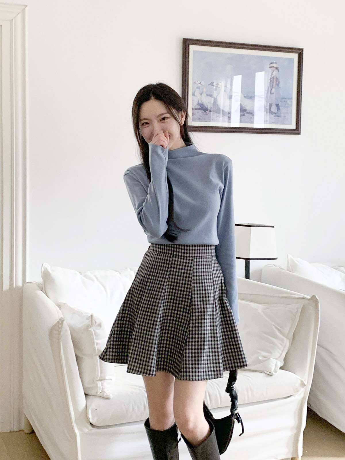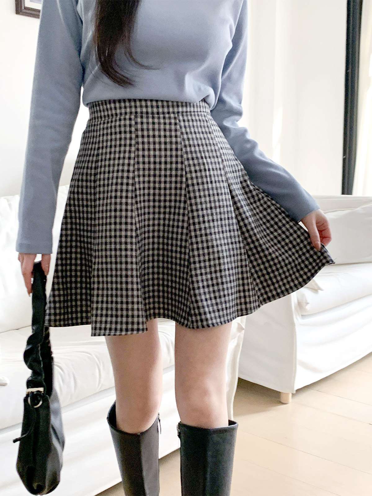 체크 플레어 미니스커트로 활동성과 발랄함을