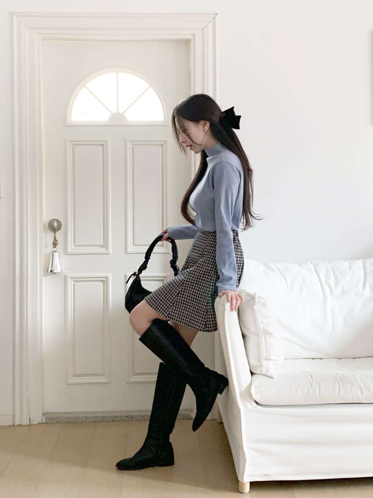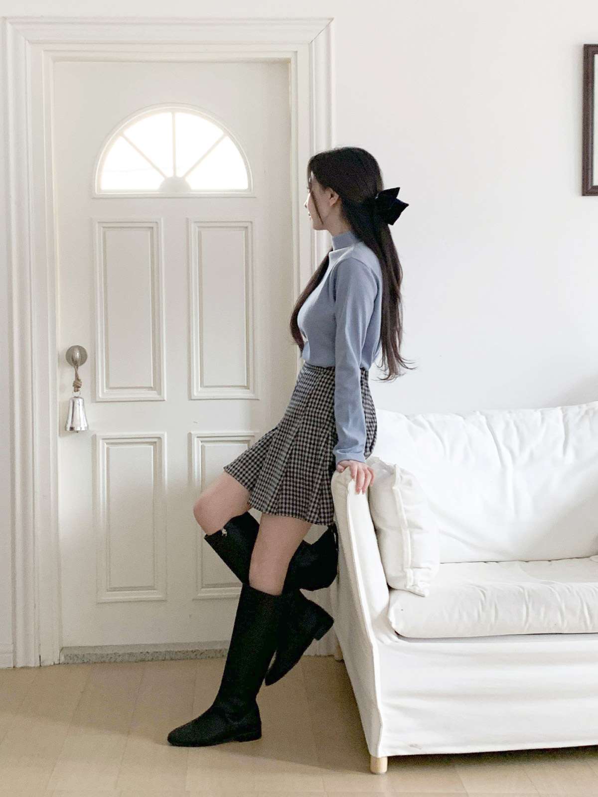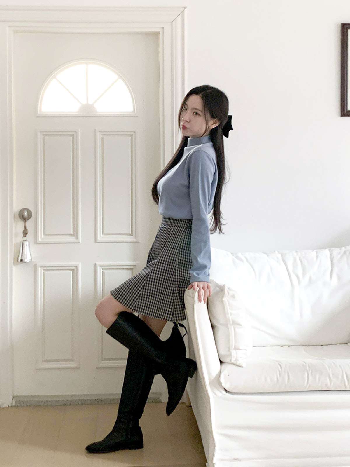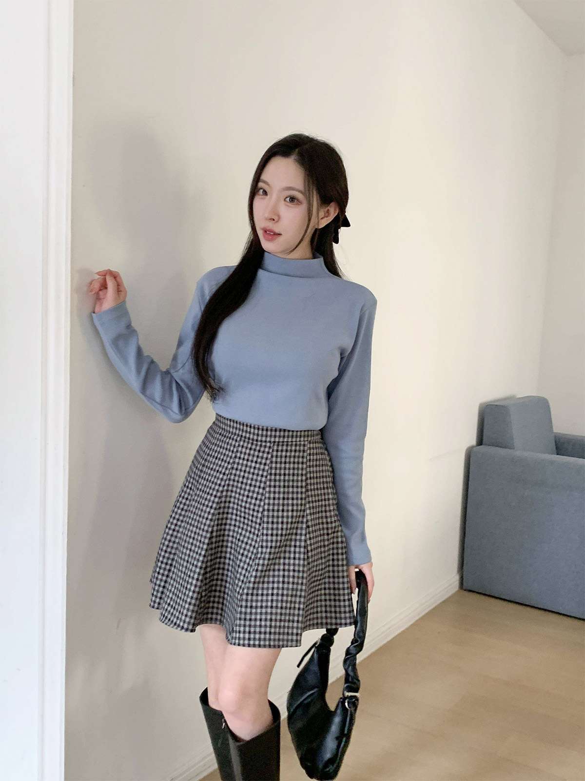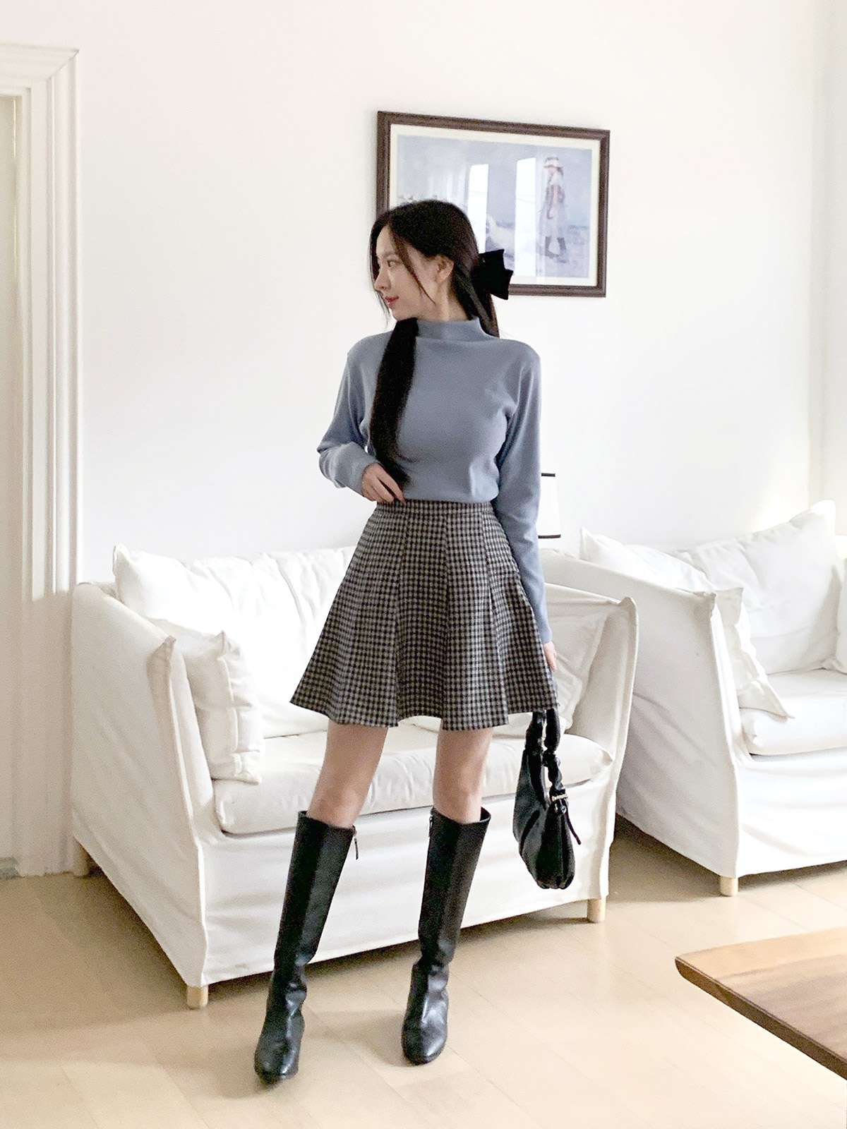 체크 플레어 미니스커트로 활동성과 발랄함을