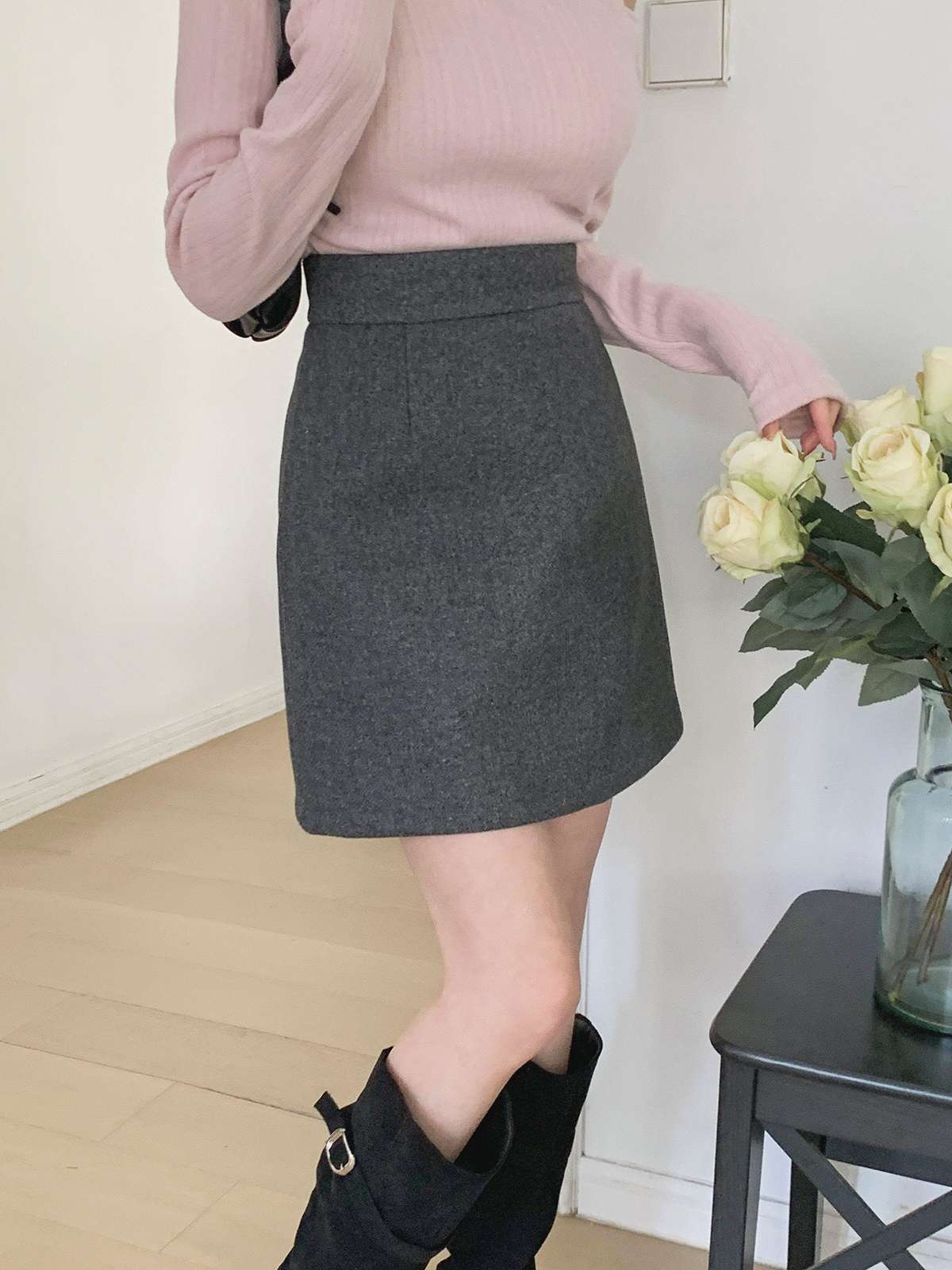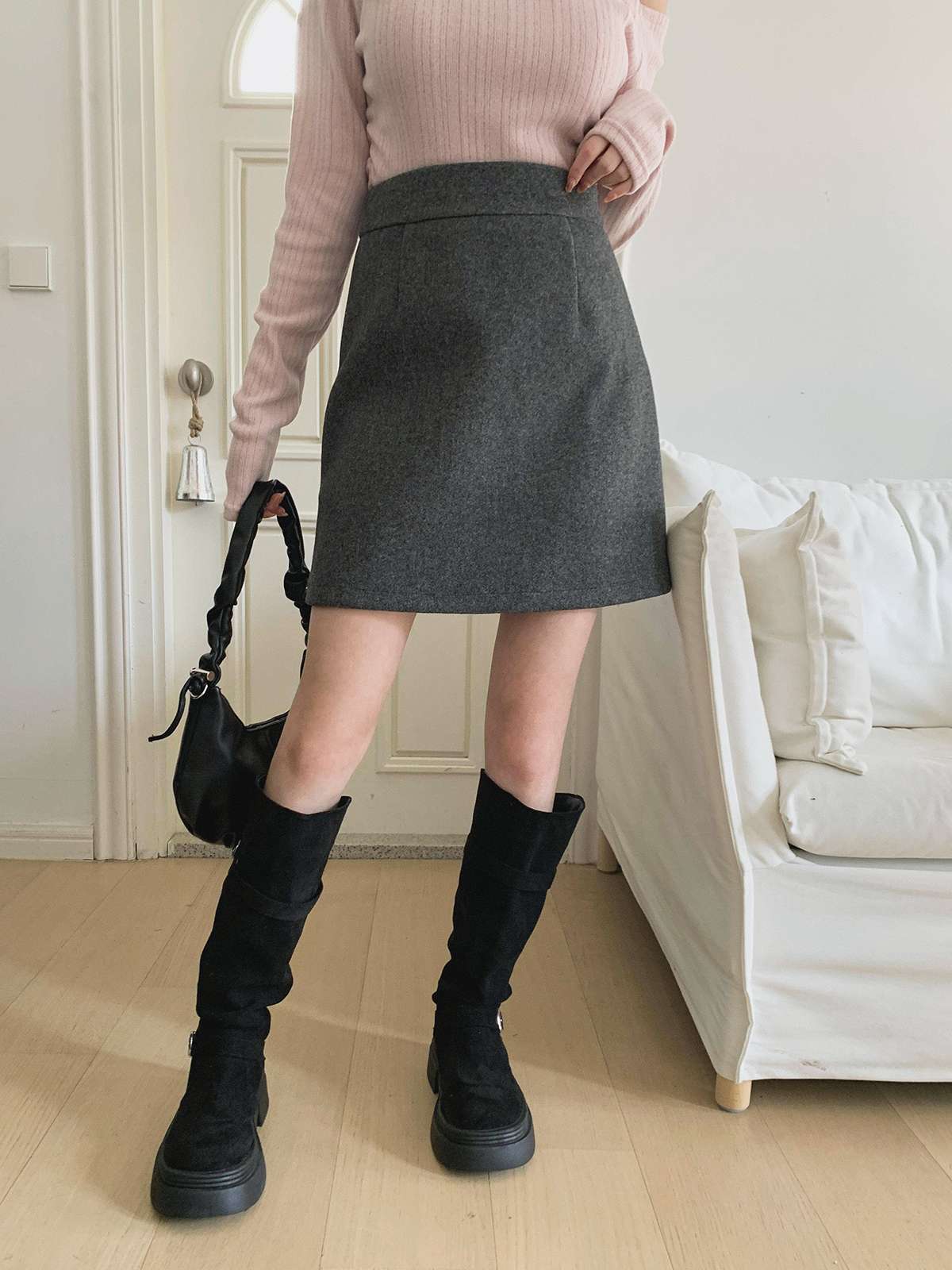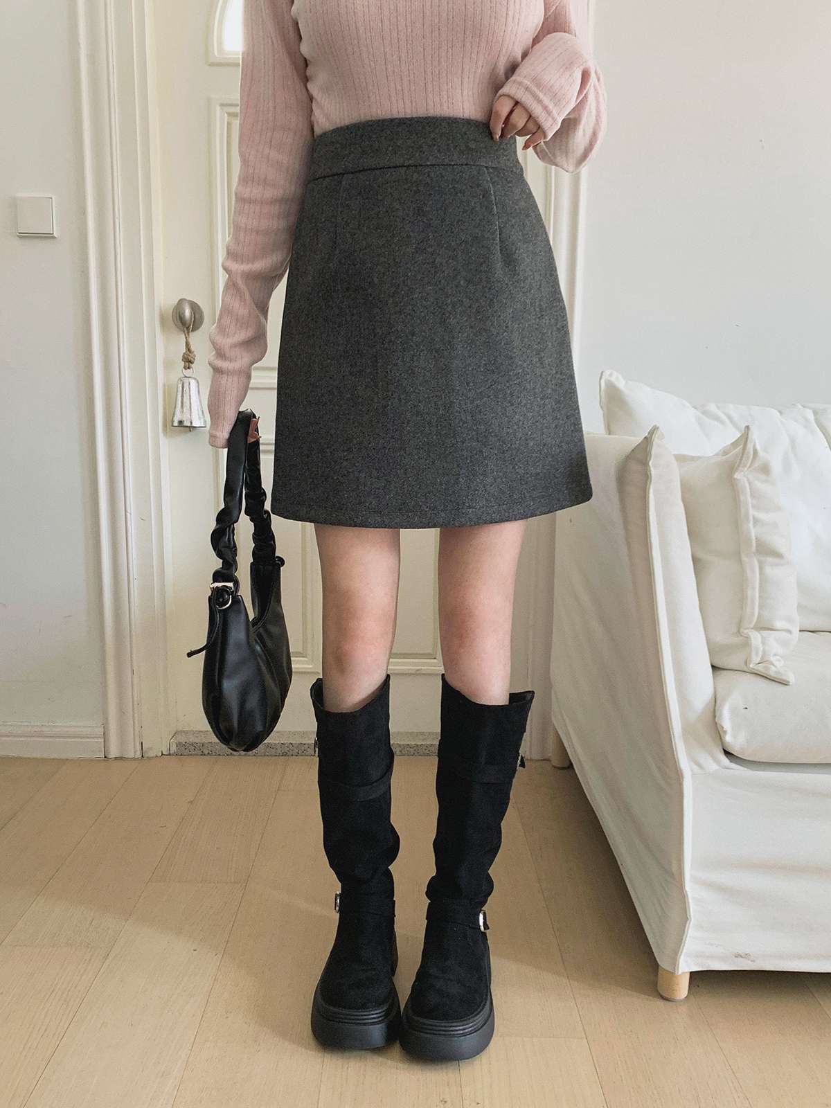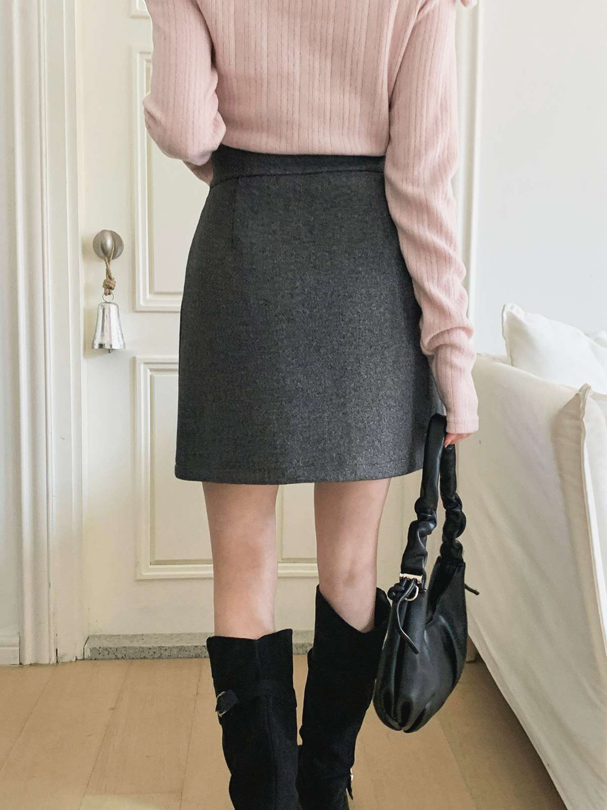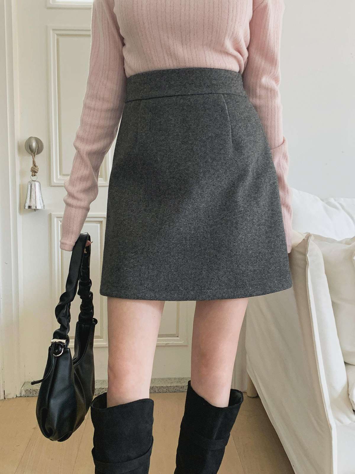 겨울 감성 가득한 따뜻하고 탄탄한 모직 소재의 미니 스커트로