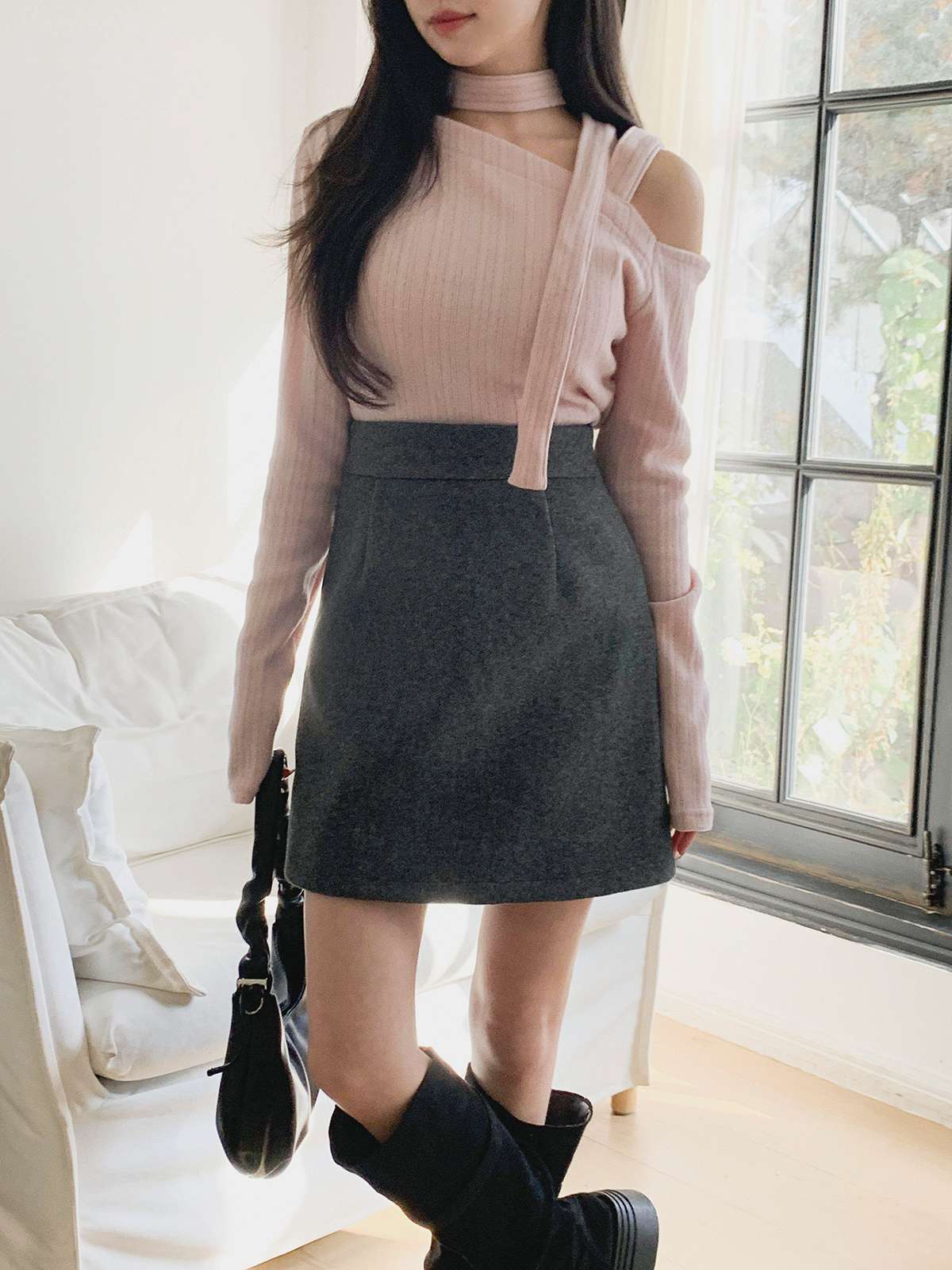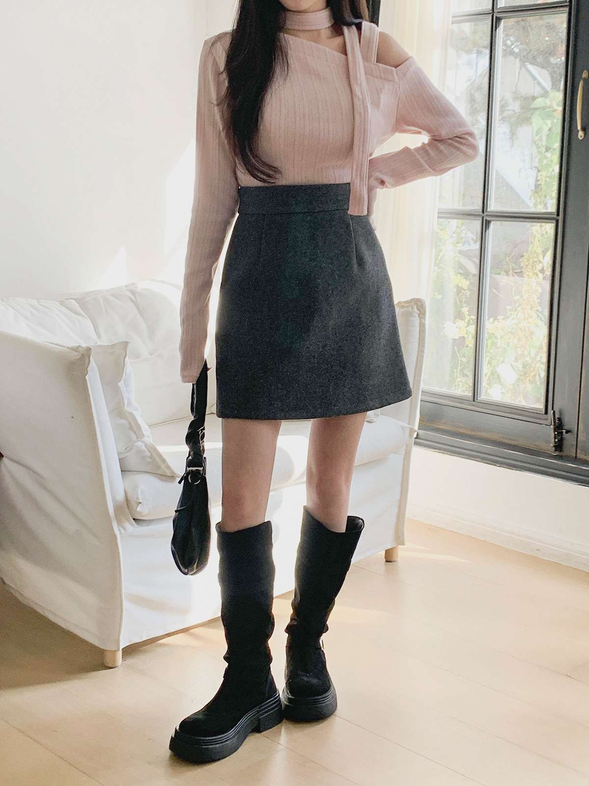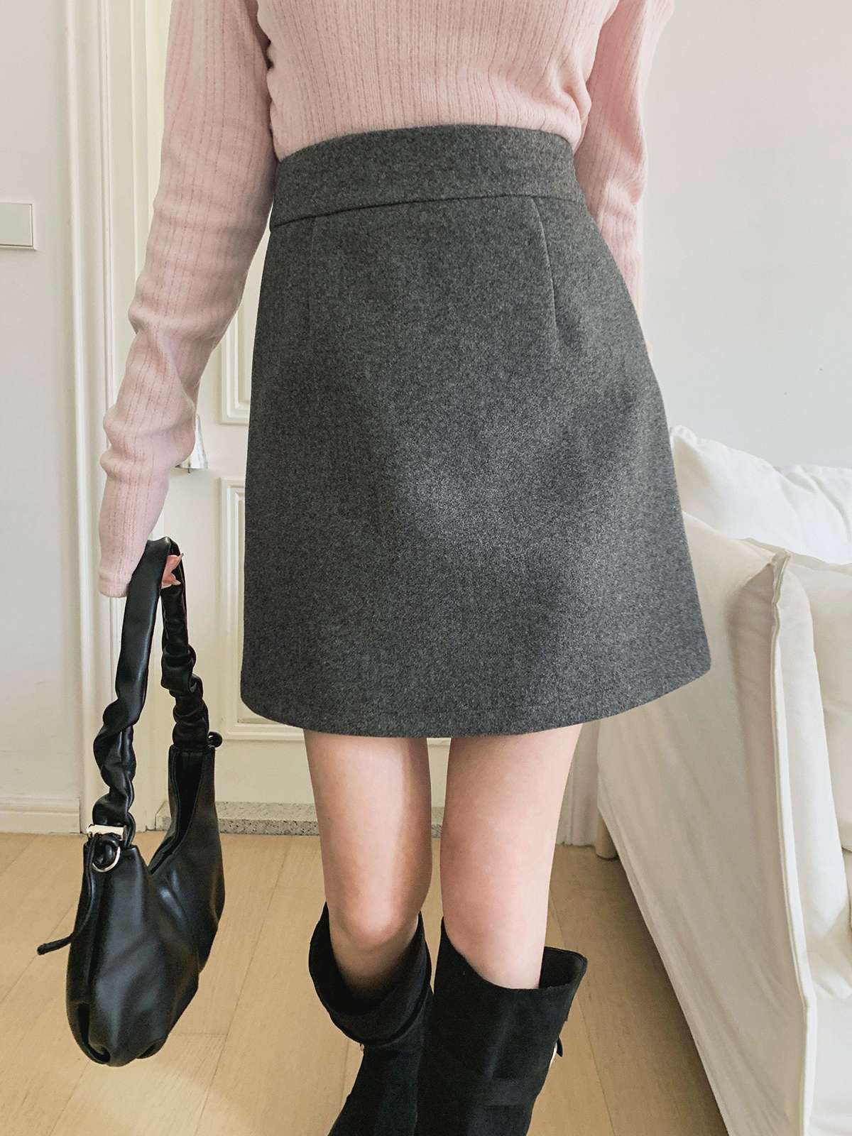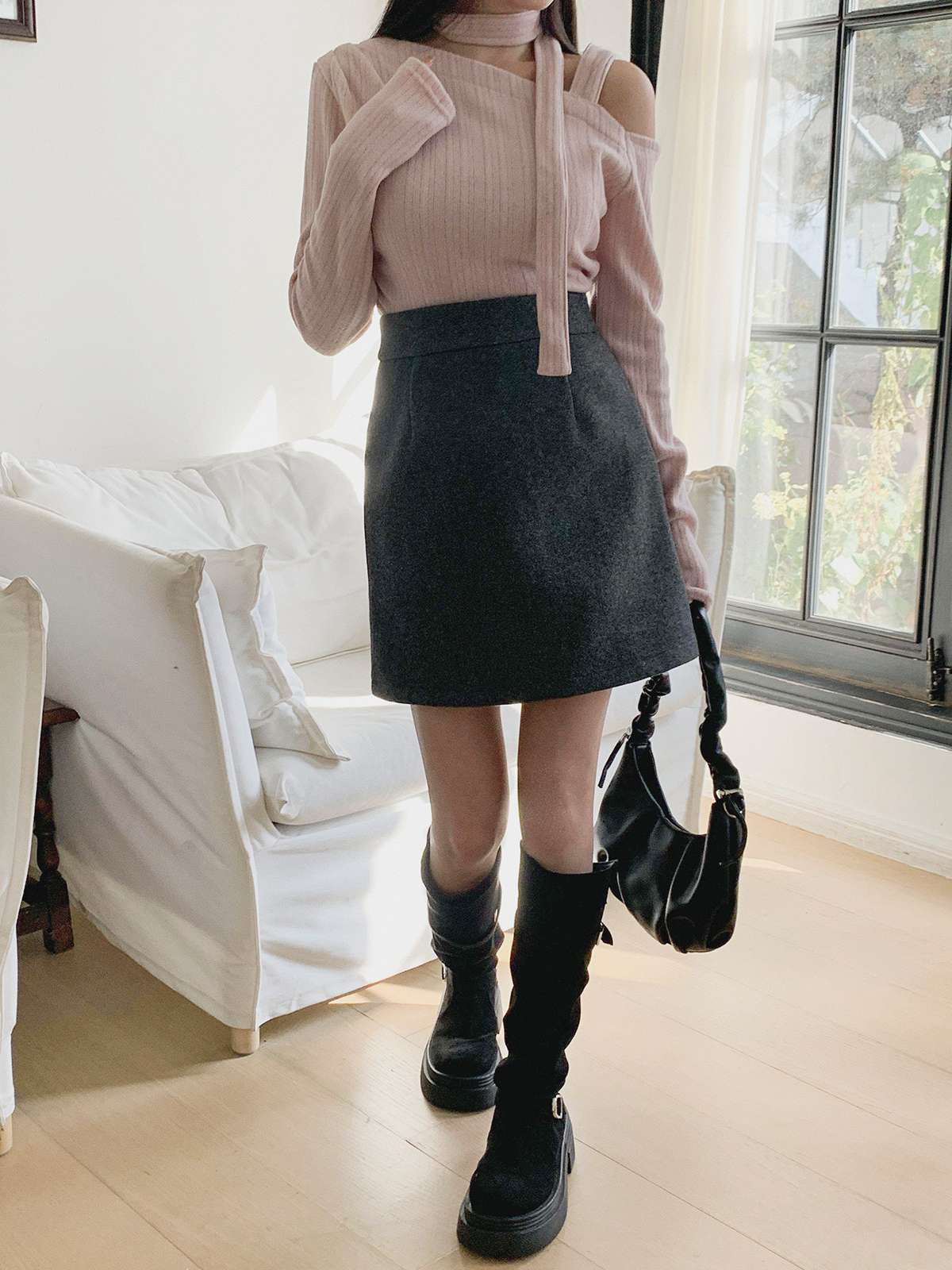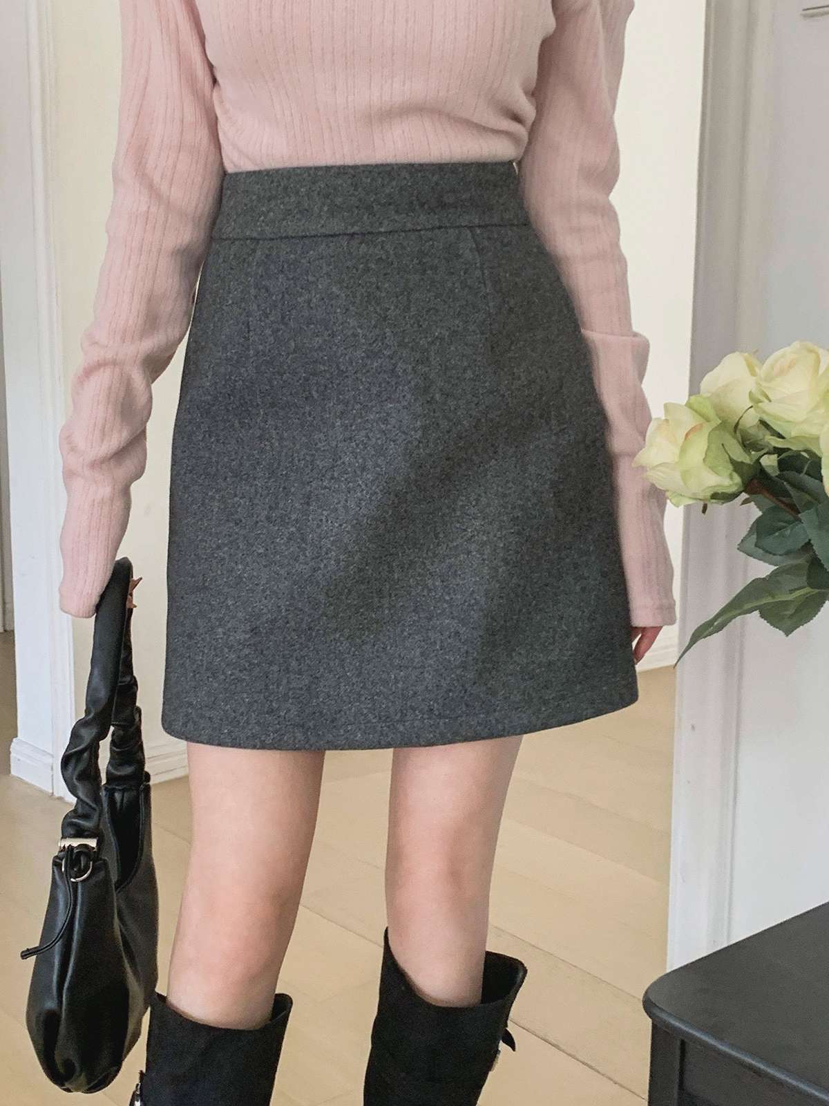 겨울 감성 가득한 따뜻하고 탄탄한 모직 소재의 미니 스커트로