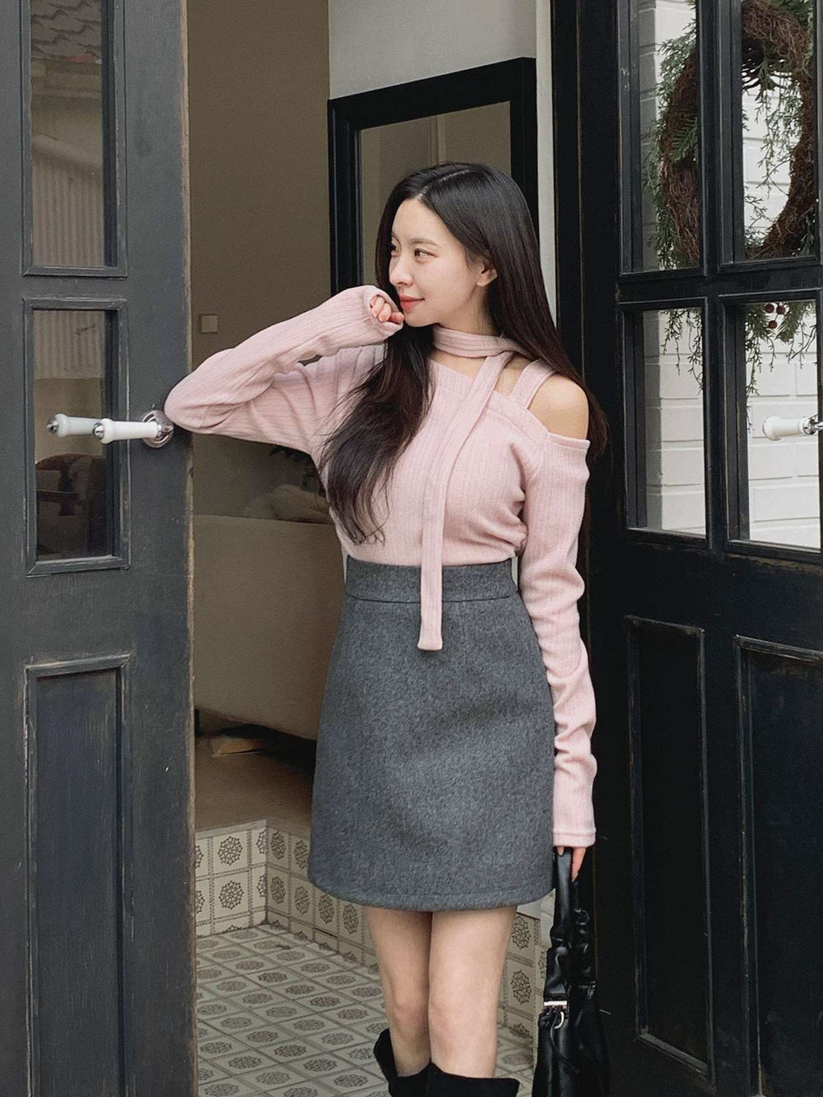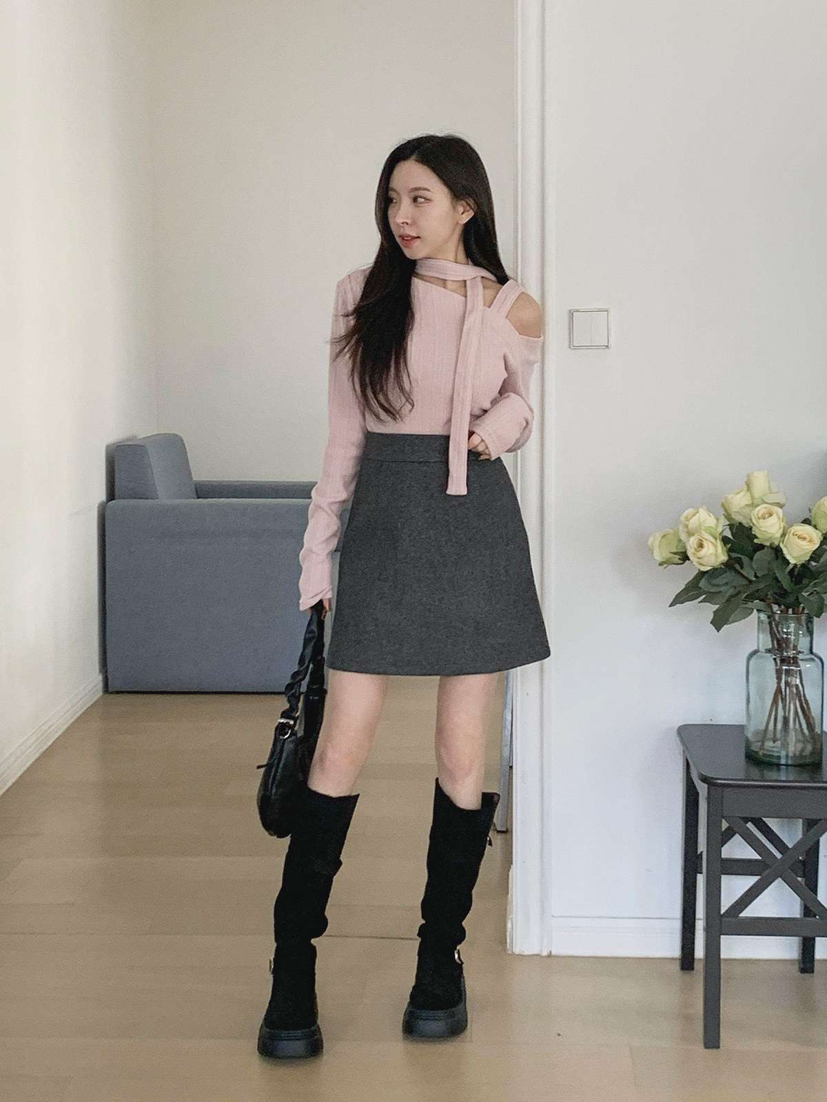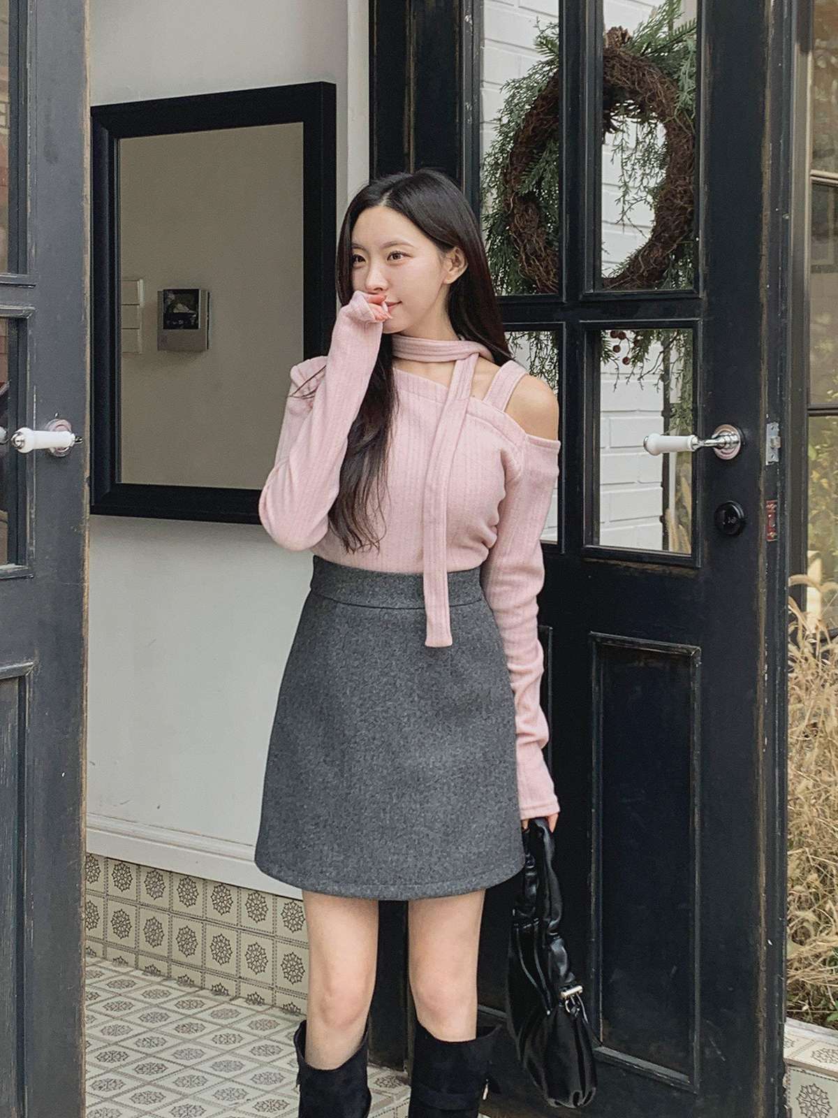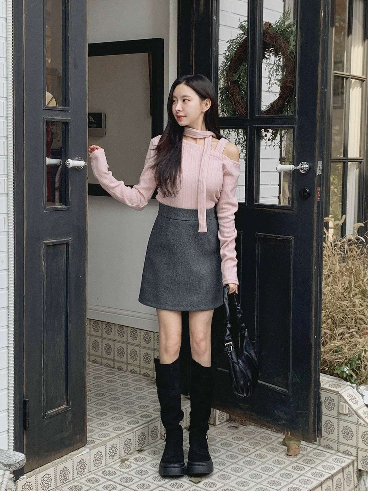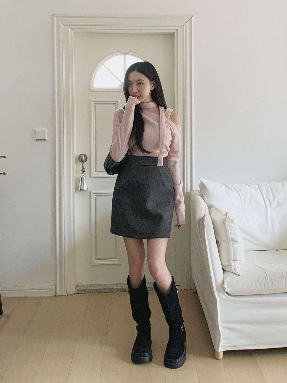 겨울 감성 가득한 따뜻하고 탄탄한 모직 소재의 미니 스커트로