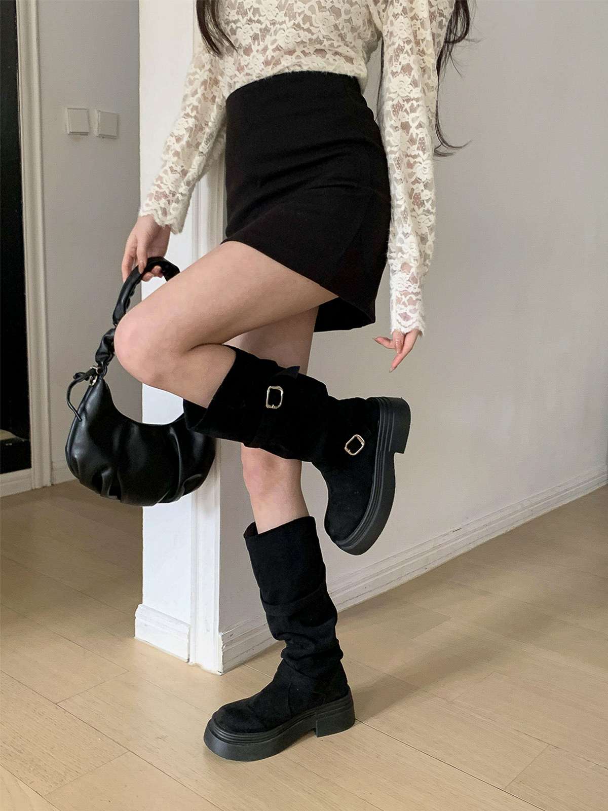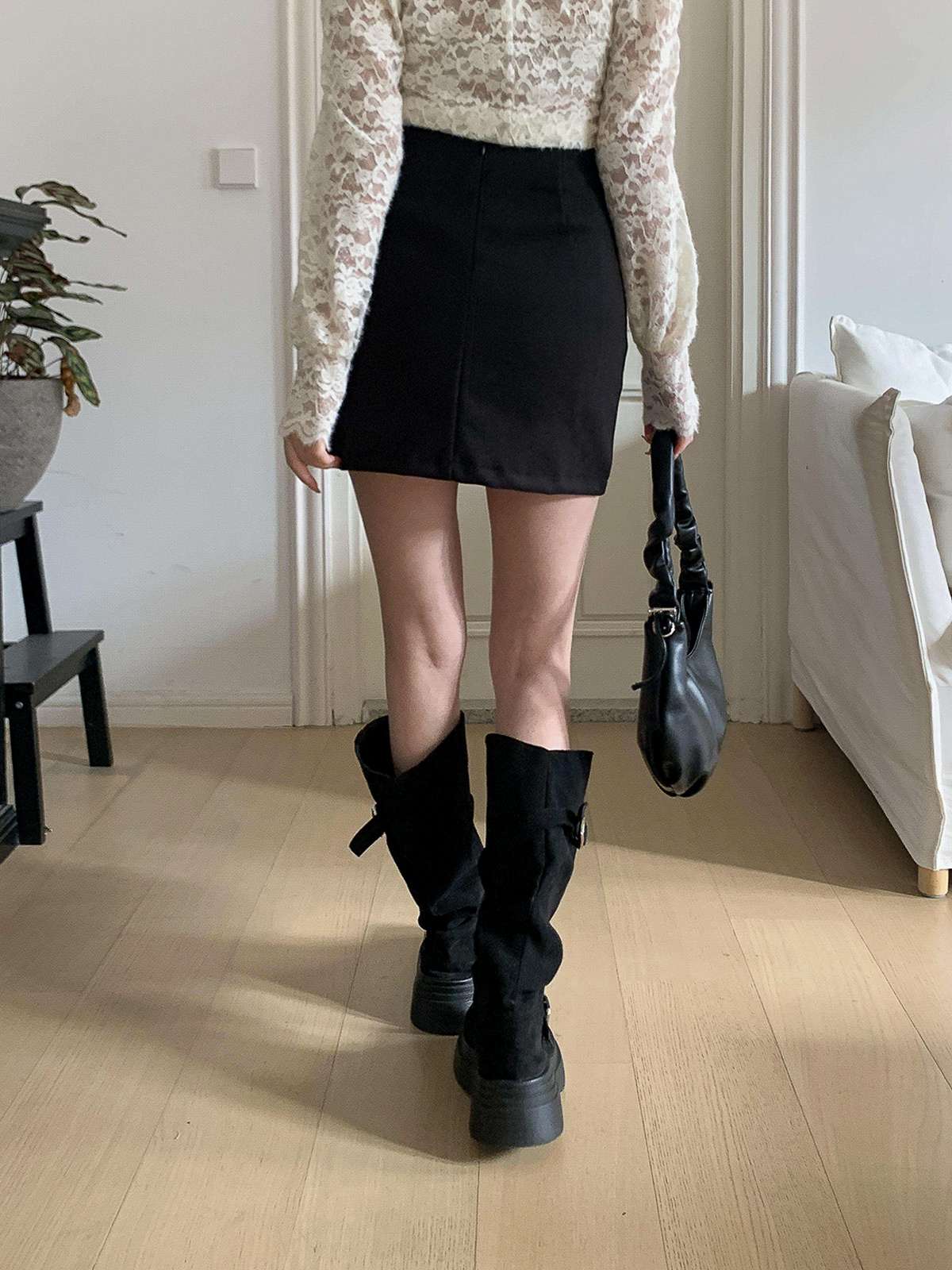 데일리하게 입기 좋은 H라인 스웨이드 미니 스커트