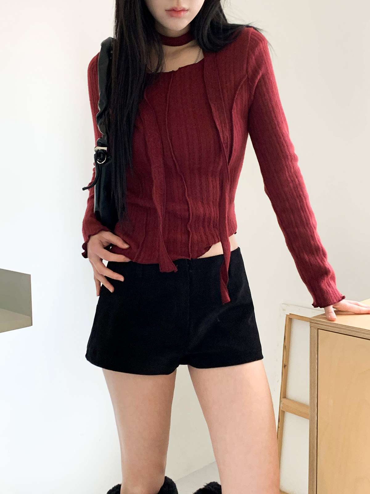 PT15628K5B-푸레잇 로우라이즈 코듀로이 미니멀 숏팬츠